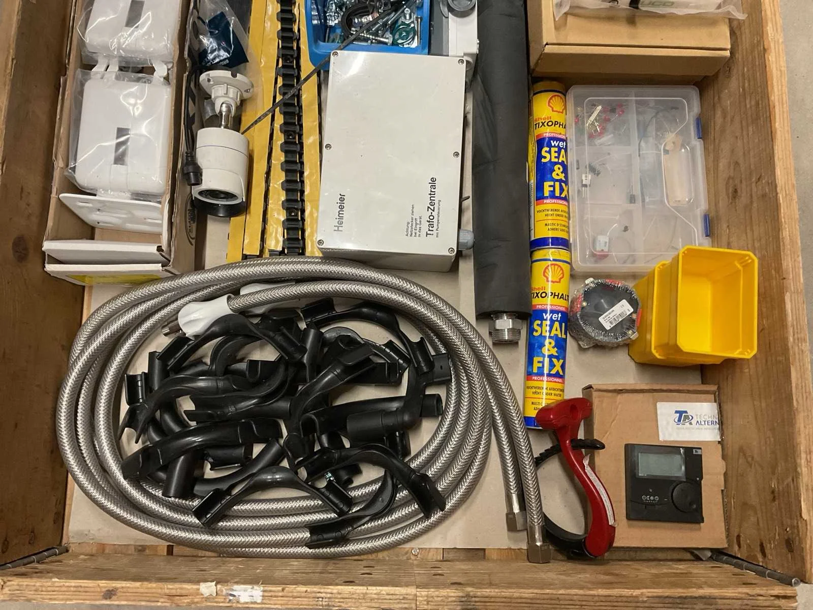 Bestaande uit: o.a. aansluitslangen, zonnepaneel connectoren, tafelstekkerdozen, bevestigingsmaterialen, filters, etc.