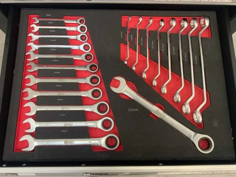 Werkblad; sleutel set; ongebruikt in verpakking; 4447; Merk: SG Aantal laden: 7 Met inhoud: true Totale afmeting L: 780mm Totale afmeting Breedte: 470mm Totale afmeting Hoogte: 965mm