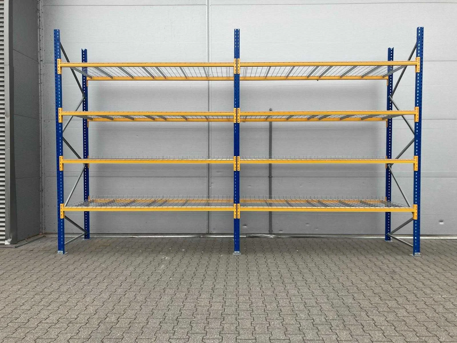 Wordt gedemonteerd en transport klaar uitgeleverd; let op; staanders zijn zonder voetjes; Merk: Jungheinrich Type: MPB Aantal secties: 2 Sectie afm. b: 2700mm Sectie diepte: 1100mm Sectie afm. h: 3750mm Aantal staanders: 3 Aantal liggers: 16 Demontabel: true