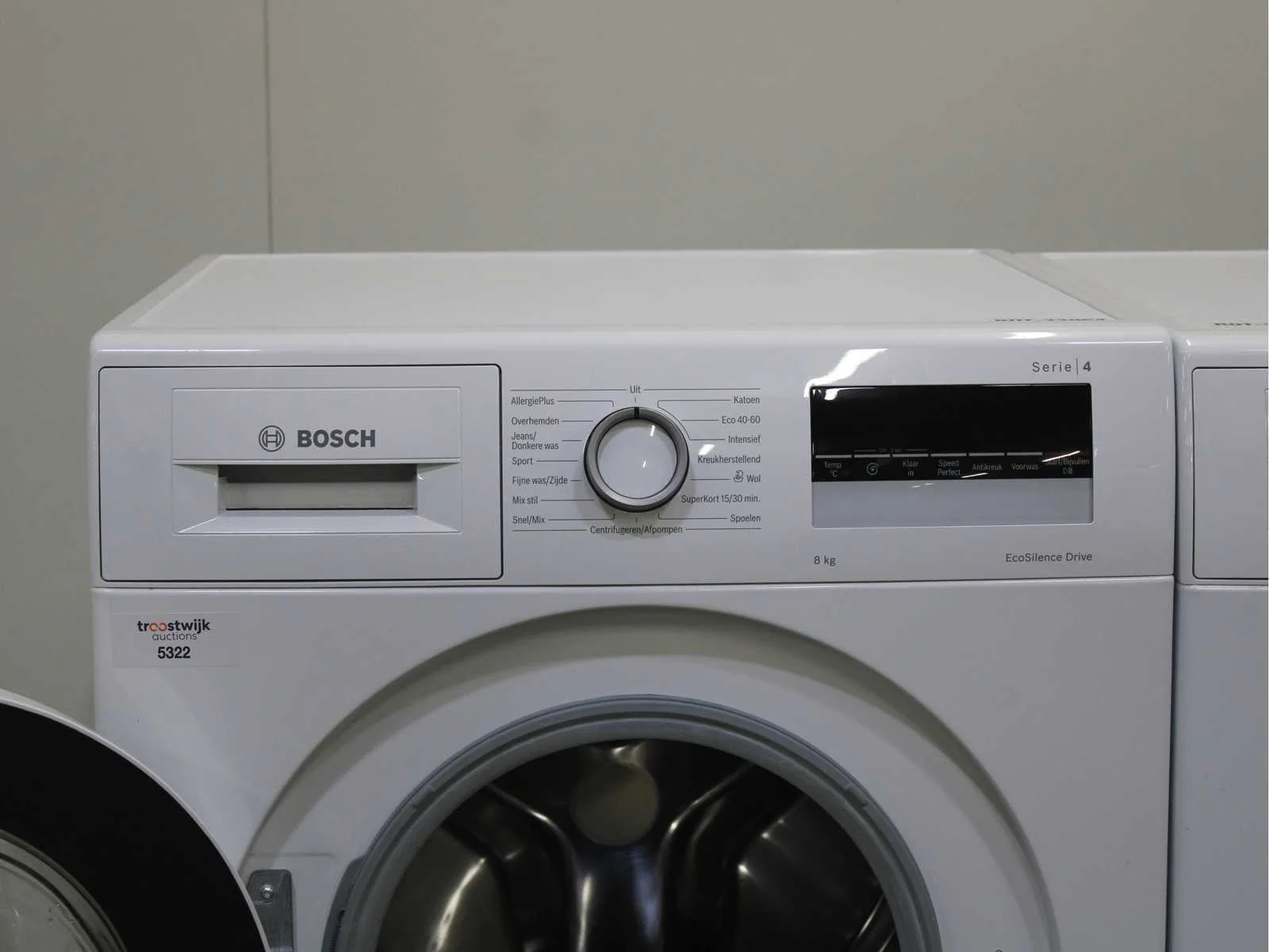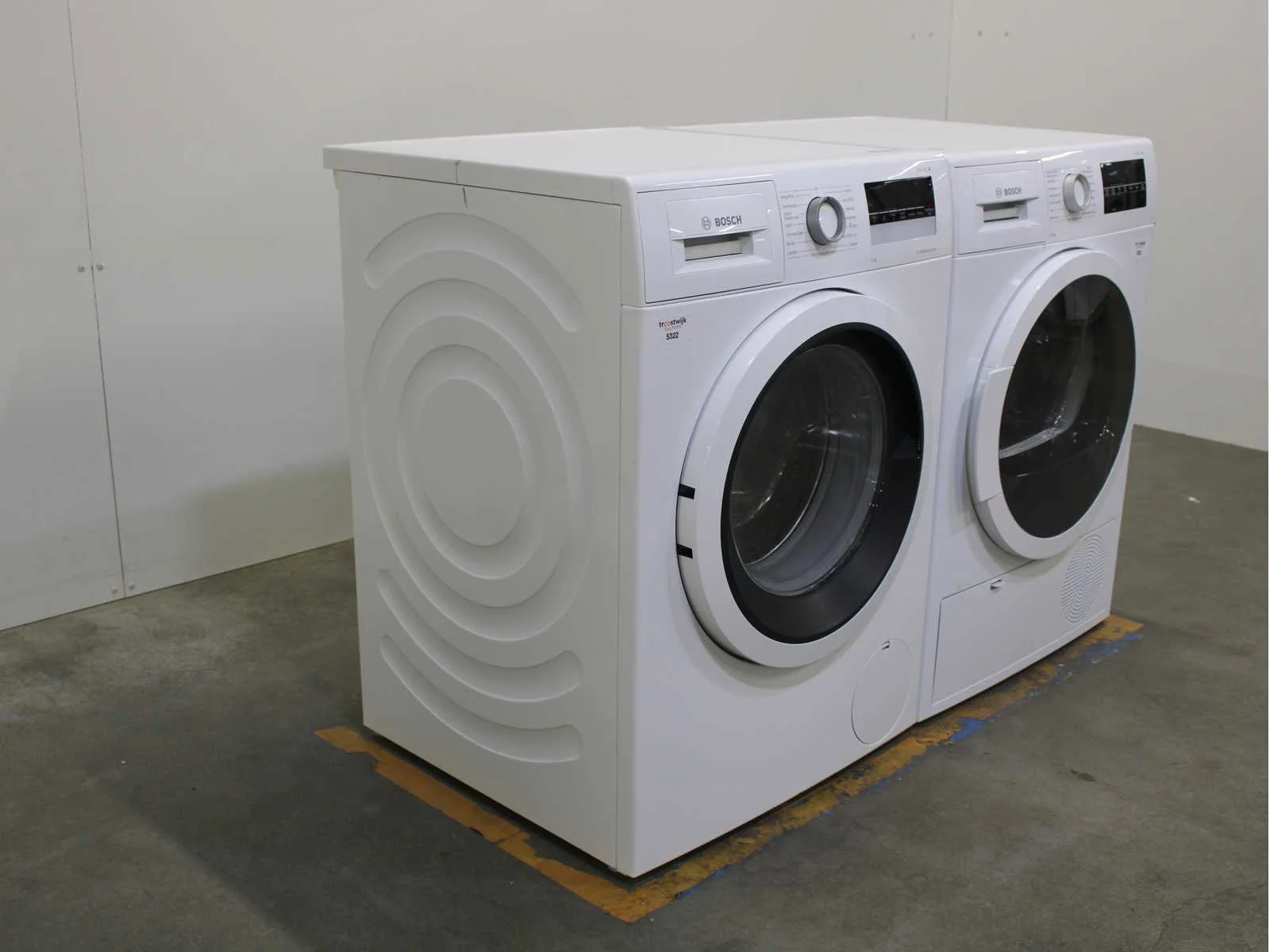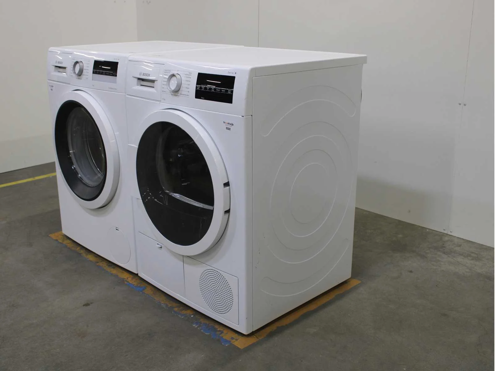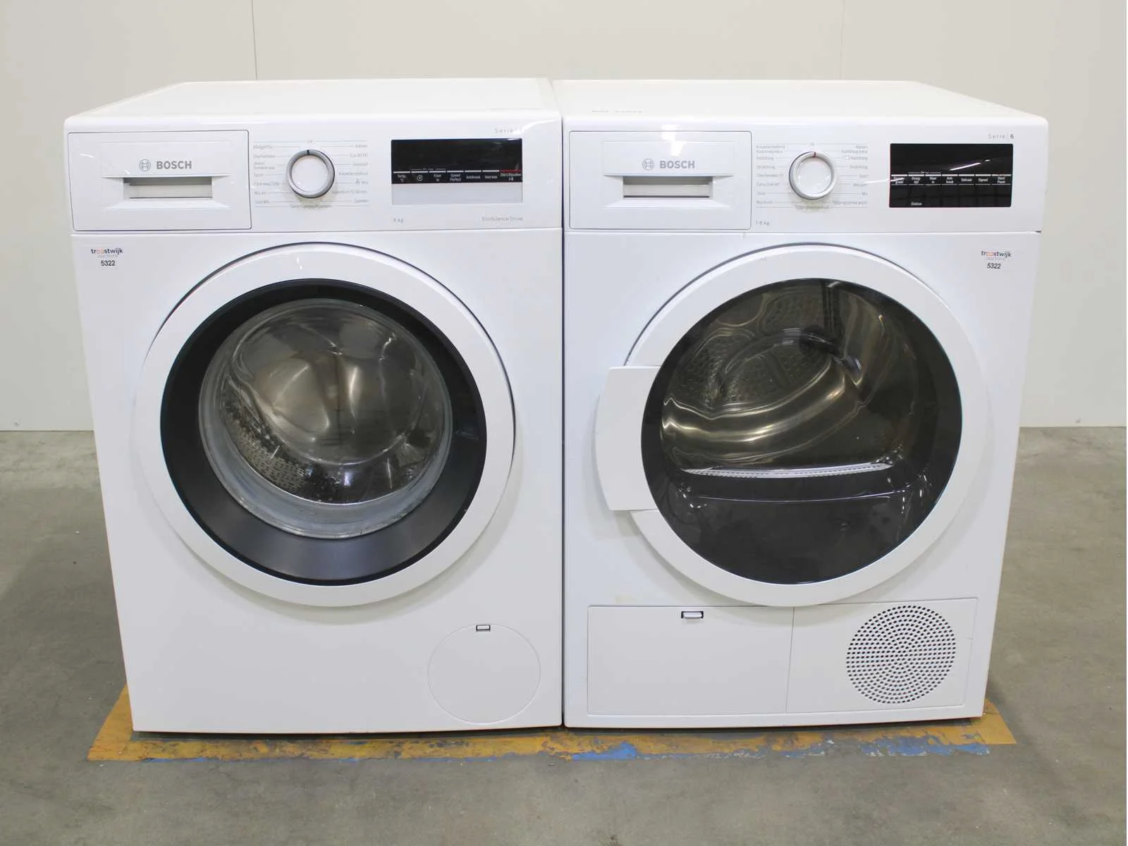Deze wasmachine en wasdroger komen uit een partij jong gebruikt A-Merk witgoed. De machines zijn volledig getest, gereinigd en indien nodig gerepareerd. Houdt er rekening mee dat de machines lichte gebruikssporen kunnen hebben. Wasmachines en wasdrogers hebben vaak standaard afmetingen. Hoogte 85cm, Breedte 60cm en Diepte 60 tot 70cm, incl. uitstekende slangen e.d. aan de achterzijde. Als de machine vrij komt te staan is de afmeting minder relevant. Wil je de machine in een nis plaatsen of inbouwen? Controleer dan de exacte afmetingen op basis van het aangeboden merk en model/type. Within 7 days Merk: Bosch Serienummer: WAN28275NL en WTG86400NL/08
