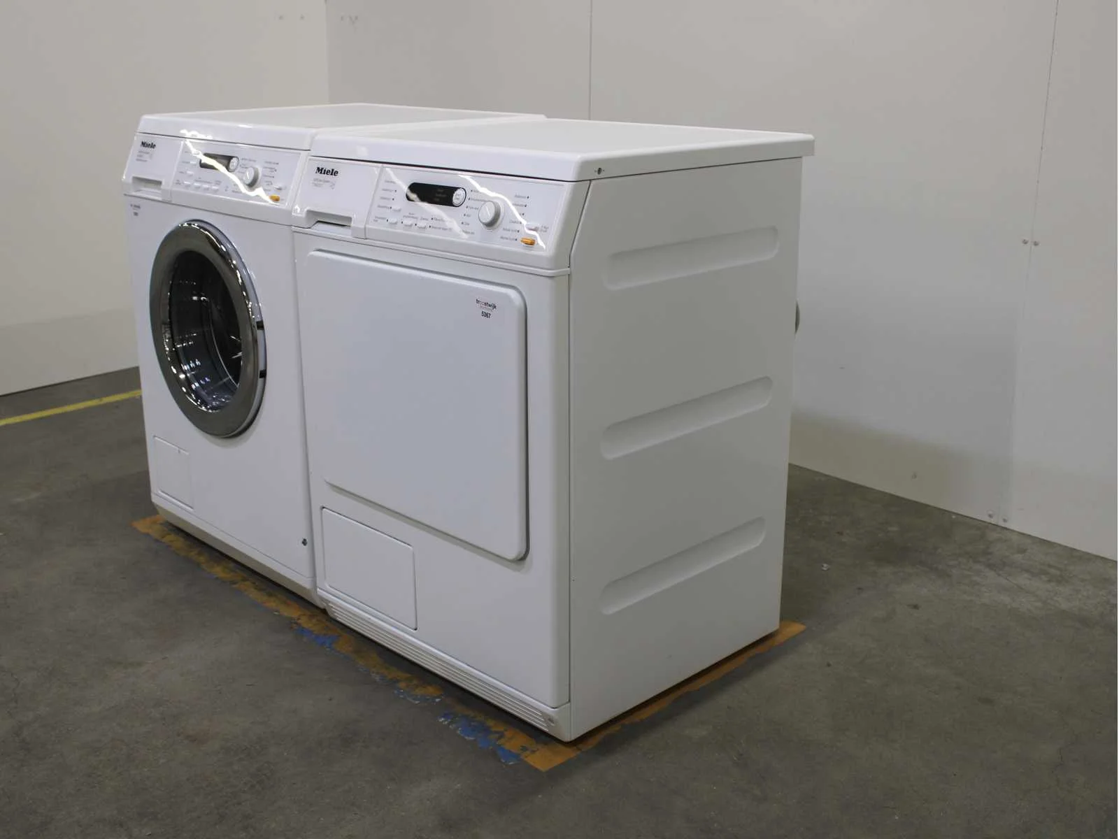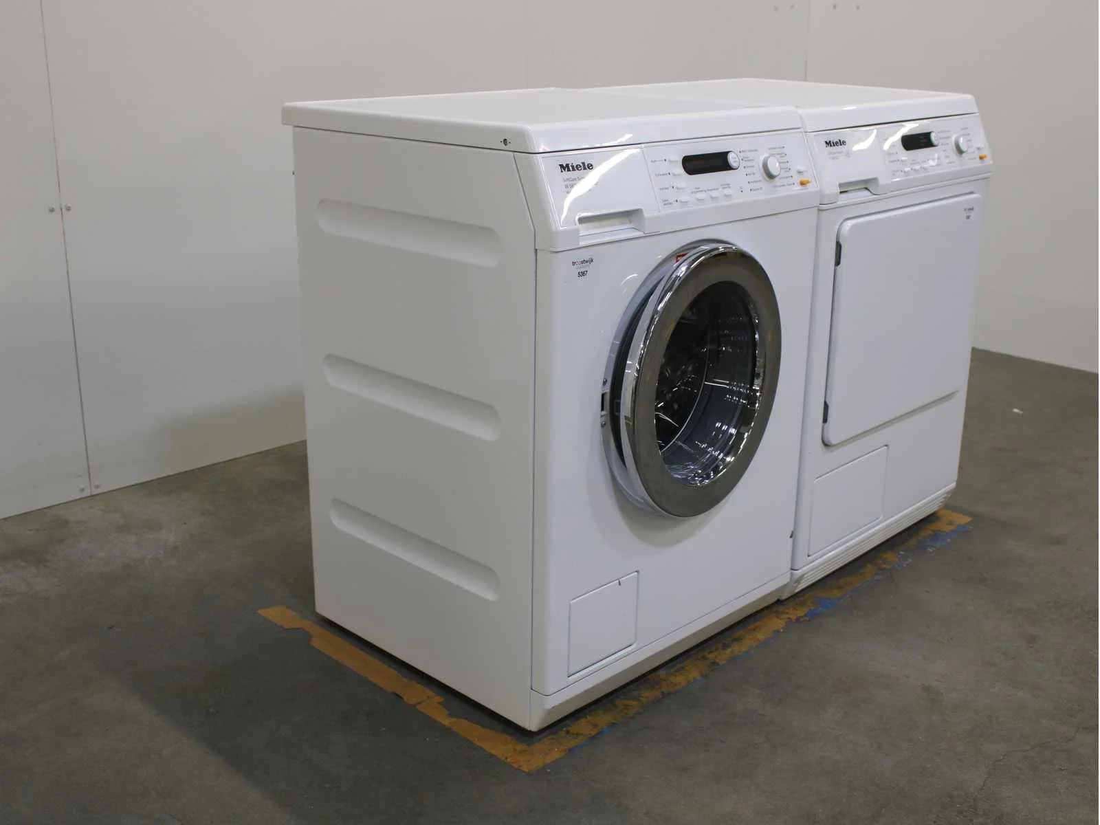 Deze wasmachine en wasdroger komen uit een partij jong gebruikt A-Merk witgoed. De machines zijn volledig getest, gereinigd en indien nodig gerepareerd. Houdt er rekening mee dat de machines lichte gebruikssporen kunnen hebben. Wasmachines en wasdrogers hebben vaak standaard afmetingen. Hoogte 85cm, Breedte 60cm en Diepte 60 tot 70cm, incl. uitstekende slangen e.d. aan de achterzijde. Als de machine vrij komt te staan is de afmeting minder relevant. Wil je de machine in een nis plaatsen of inbouwen? Controleer dan de exacte afmetingen op basis van het aangeboden merk en model/type. Within 7 days Merk: Miele Serienummer: W5821 en T8423C 40/090145715 06980270