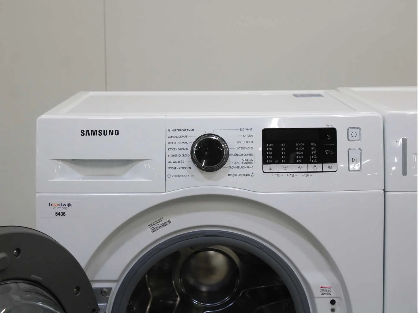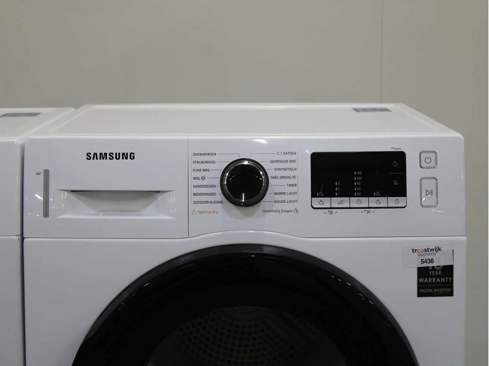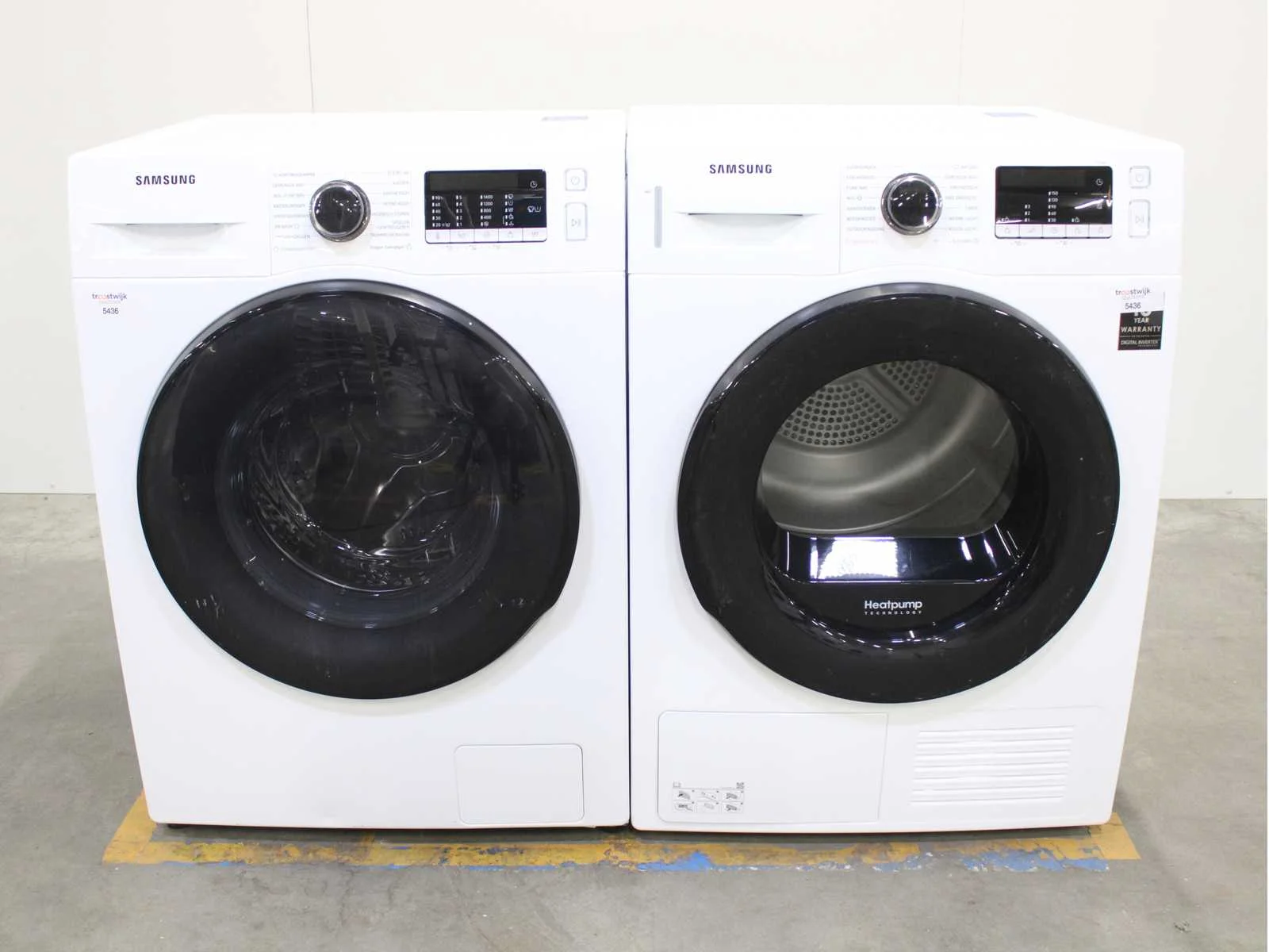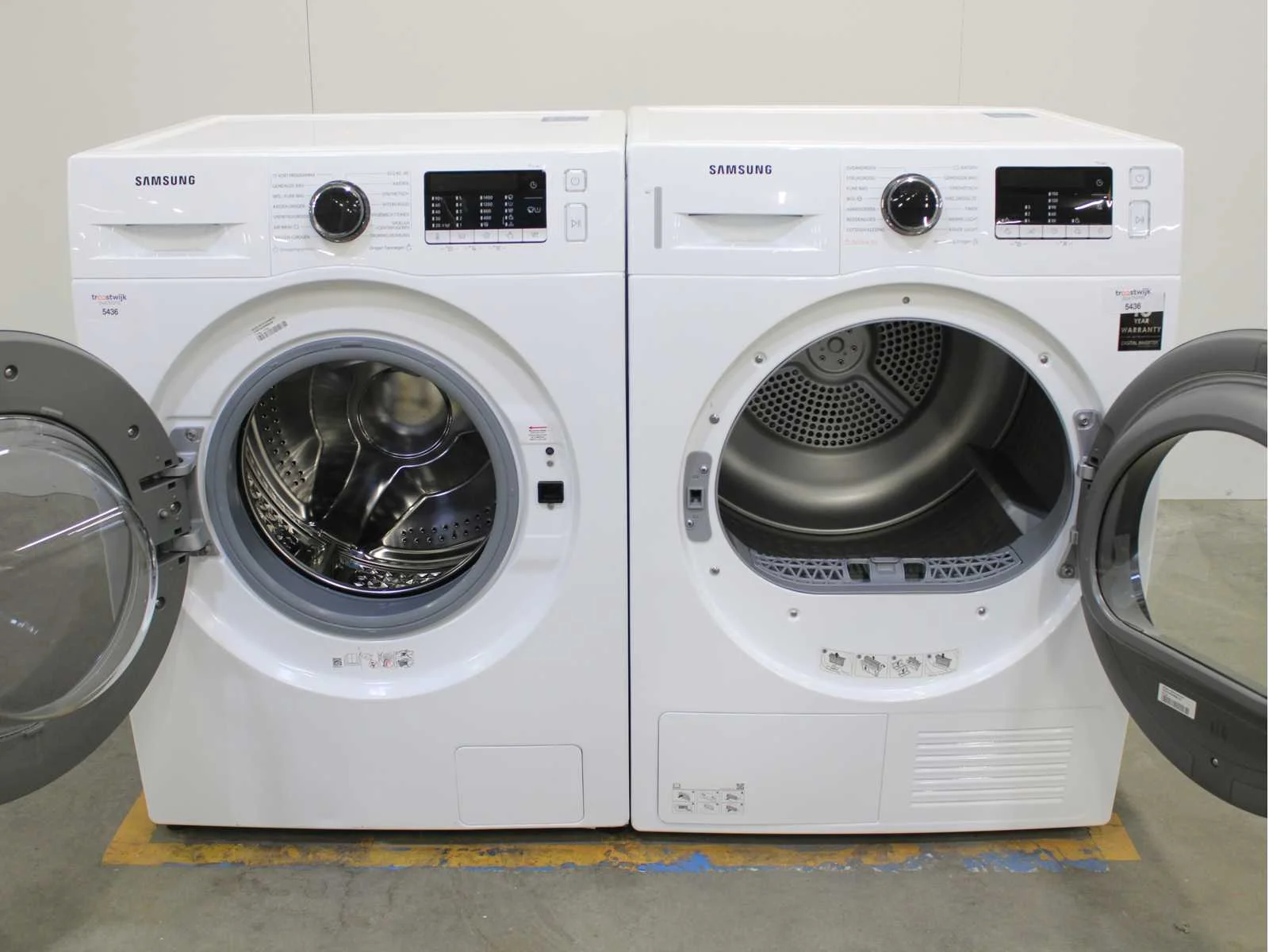 Deze wasmachine en wasdroger komen uit een partij jong gebruikt A-Merk witgoed. De machines zijn volledig getest, gereinigd en indien nodig gerepareerd. Houdt er rekening mee dat de machines lichte gebruikssporen kunnen hebben. Wasmachines en wasdrogers hebben vaak standaard afmetingen. Hoogte 85cm, Breedte 60cm en Diepte 60 tot 70cm, incl. uitstekende slangen e.d. aan de achterzijde. Als de machine vrij komt te staan is de afmeting minder relevant. Wil je de machine in een nis plaatsen of inbouwen? Controleer dan de exacte afmetingen op basis van het aangeboden merk en model/type. Within 7 days Merk: Samsung Serienummer: WD70TA049BE/EN en DV80TA220AE