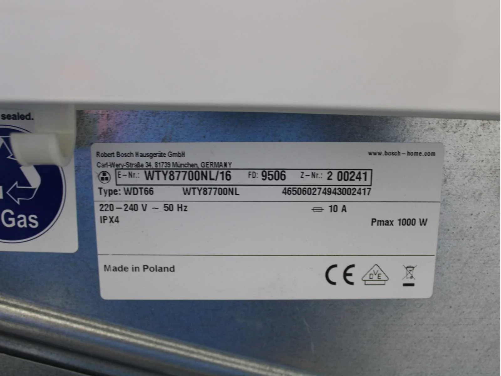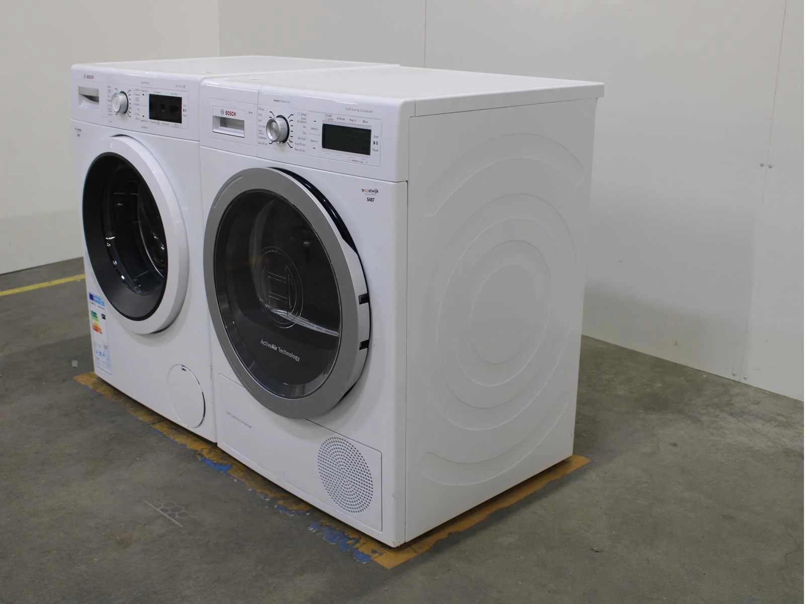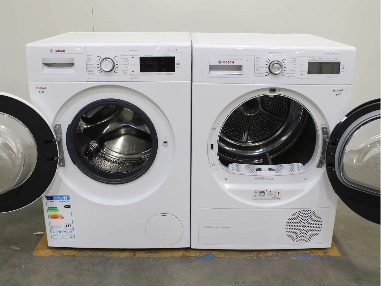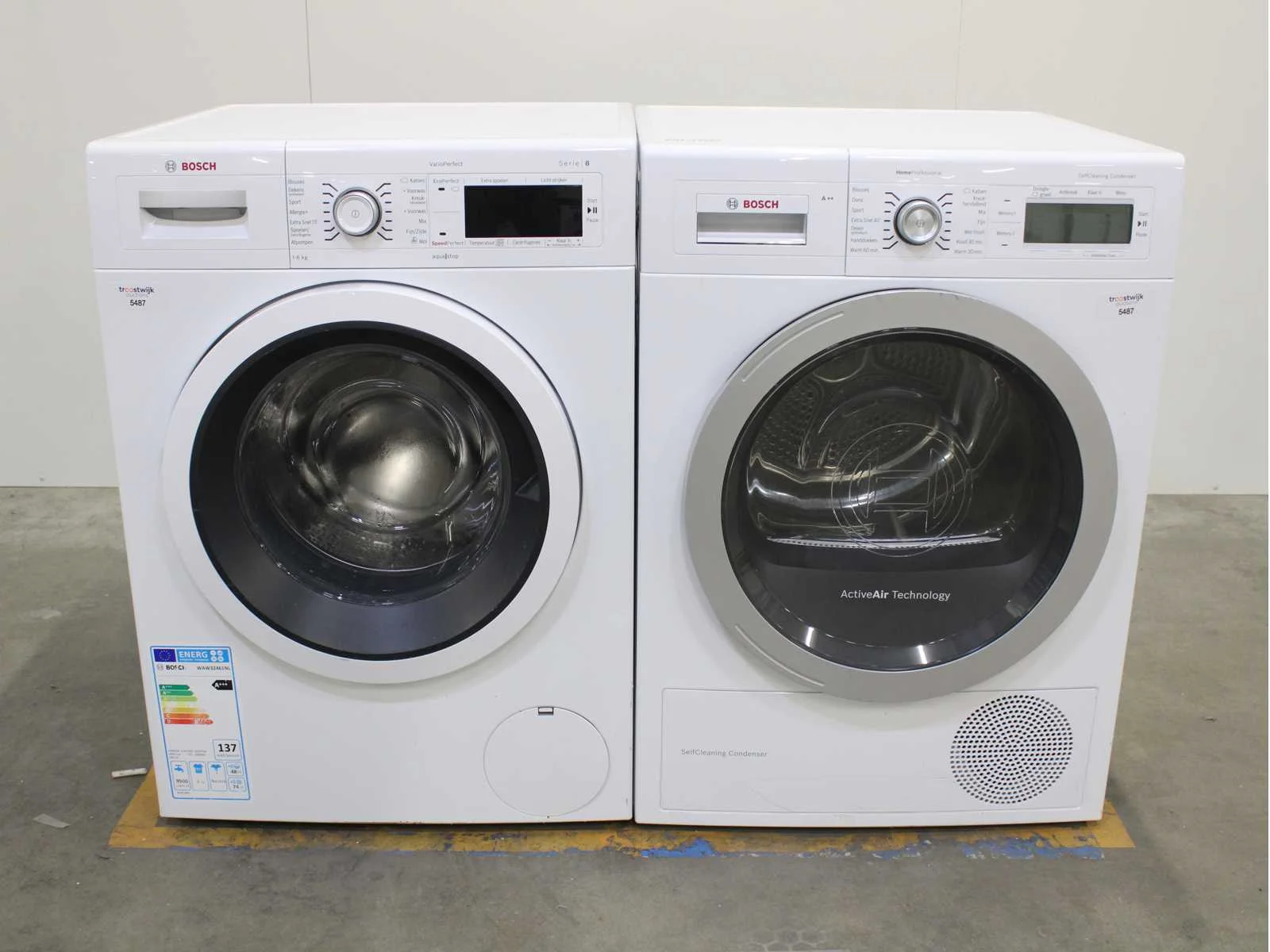 Deze wasmachine en wasdroger komen uit een partij jong gebruikt A-Merk witgoed. De machines zijn volledig getest, gereinigd en indien nodig gerepareerd. Houdt er rekening mee dat de machines lichte gebruikssporen kunnen hebben. Wasmachines en wasdrogers hebben vaak standaard afmetingen. Hoogte 85cm, Breedte 60cm en Diepte 60 tot 70cm, incl. uitstekende slangen e.d. aan de achterzijde. Als de machine vrij komt te staan is de afmeting minder relevant. Wil je de machine in een nis plaatsen of inbouwen? Controleer dan de exacte afmetingen op basis van het aangeboden merk en model/type. Within 7 days Merk: Bosch Serienummer: WAW32461NL en WTY87700NL/16