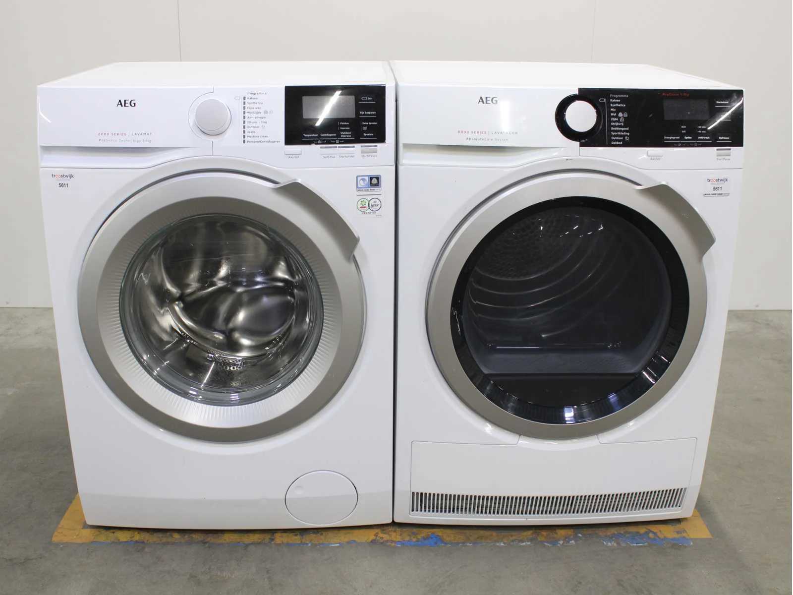 Deze wasmachine en wasdroger komen uit een partij jong gebruikt A-Merk witgoed. De machines zijn volledig getest, gereinigd en indien nodig gerepareerd. Houdt er rekening mee dat de machines lichte gebruikssporen kunnen hebben. Wasmachines en wasdrogers hebben vaak standaard afmetingen. Hoogte 85cm, Breedte 60cm en Diepte 60 tot 70cm, incl. uitstekende slangen e.d. aan de achterzijde. Als de machine vrij komt te staan is de afmeting minder relevant. Wil je de machine in een nis plaatsen of inbouwen? Controleer dan de exacte afmetingen op basis van het aangeboden merk en model/type. Within 7 days Merk: AEG Serienummer: L6FBKOLN en T8DB86ES