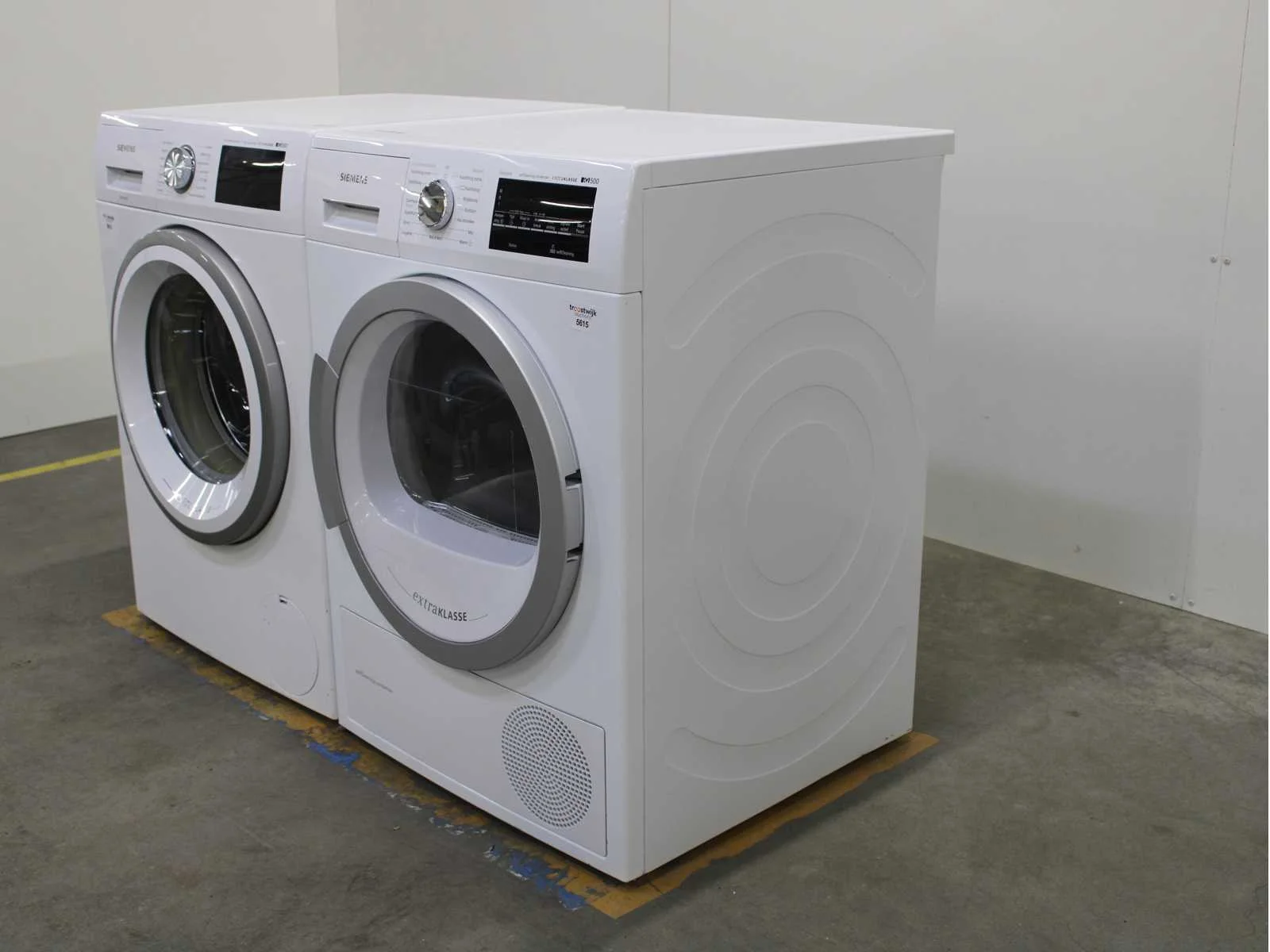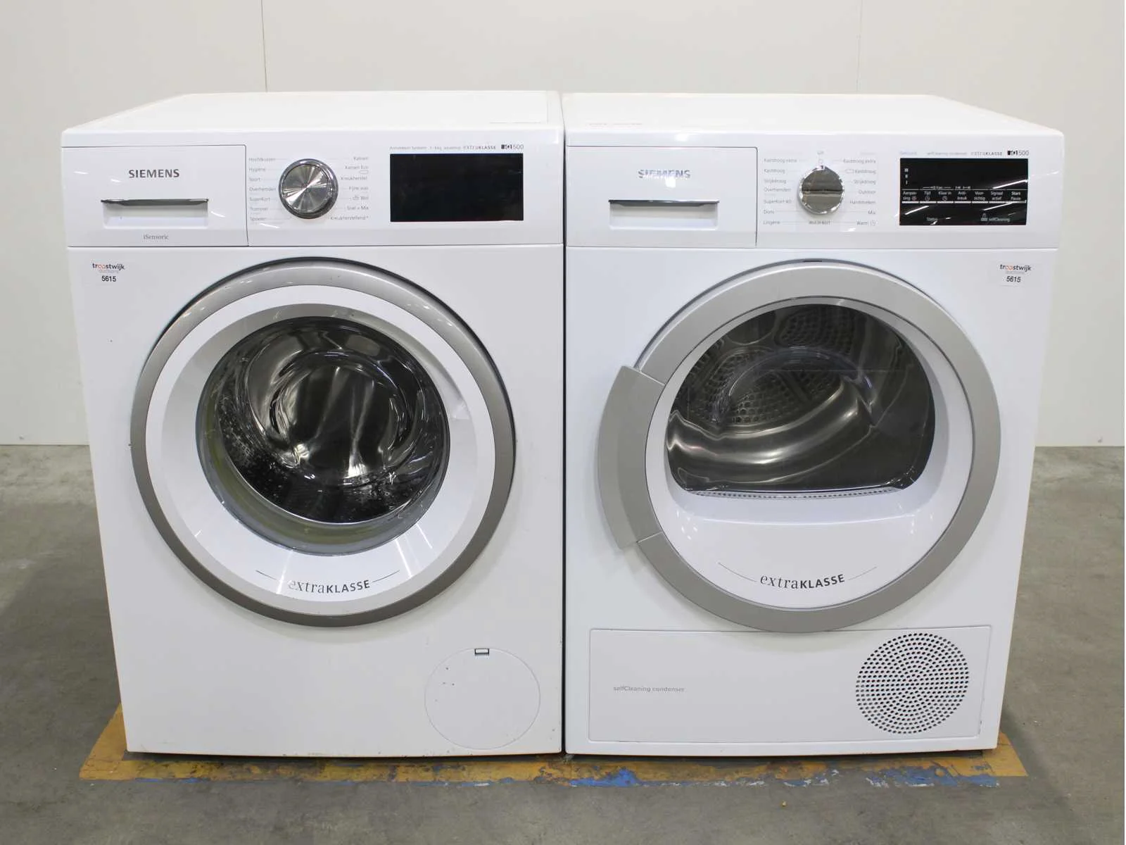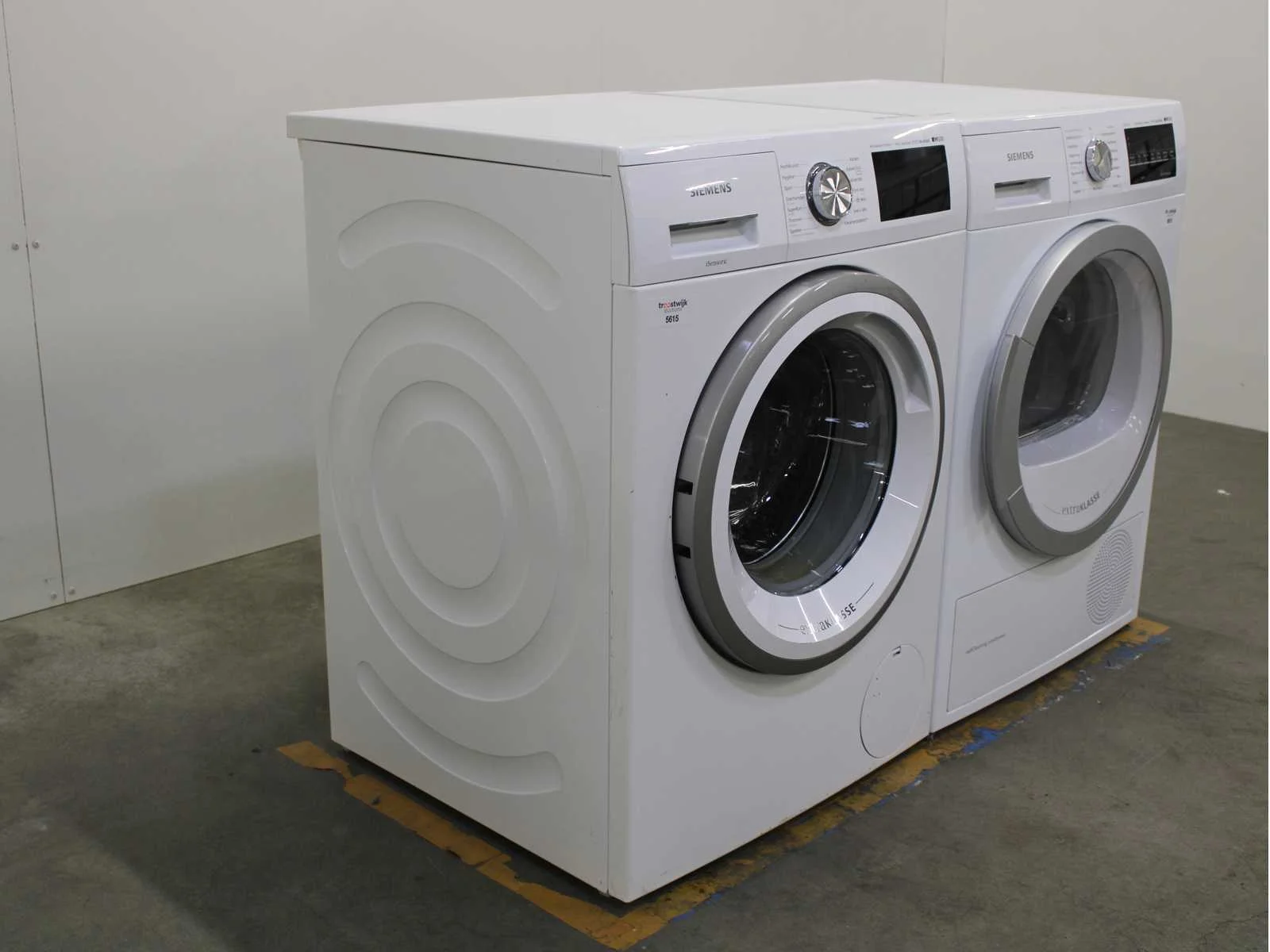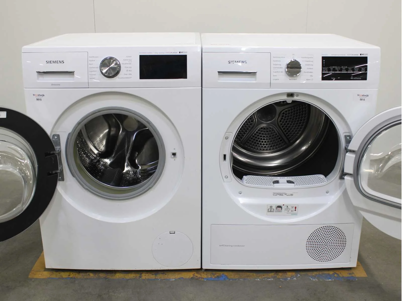 Deze wasmachine en wasdroger komen uit een partij jong gebruikt A-Merk witgoed. De machines zijn volledig getest, gereinigd en indien nodig gerepareerd. Houdt er rekening mee dat de machines lichte gebruikssporen kunnen hebben. Wasmachines en wasdrogers hebben vaak standaard afmetingen. Hoogte 85cm, Breedte 60cm en Diepte 60 tot 70cm, incl. uitstekende slangen e.d. aan de achterzijde. Als de machine vrij komt te staan is de afmeting minder relevant. Wil je de machine in een nis plaatsen of inbouwen? Controleer dan de exacte afmetingen op basis van het aangeboden merk en model/type. Within 7 days Merk: Siemens Serienummer: WM14T590NL en WT45W490NL