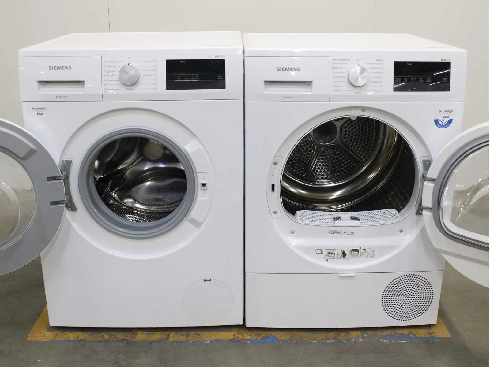 Deze wasmachine en wasdroger komen uit een partij jong gebruikt A-Merk witgoed. De machines zijn volledig getest, gereinigd en indien nodig gerepareerd. Houdt er rekening mee dat de machines lichte gebruikssporen kunnen hebben. Wasmachines en wasdrogers hebben vaak standaard afmetingen. Hoogte 85cm, Breedte 60cm en Diepte 60 tot 70cm, incl. uitstekende slangen e.d. aan de achterzijde. Als de machine vrij komt te staan is de afmeting minder relevant. Wil je de machine in een nis plaatsen of inbouwen? Controleer dan de exacte afmetingen op basis van het aangeboden merk en model/type. Within 7 days Merk: Siemens Serienummer: WM14N030NL en WT45RV00NL