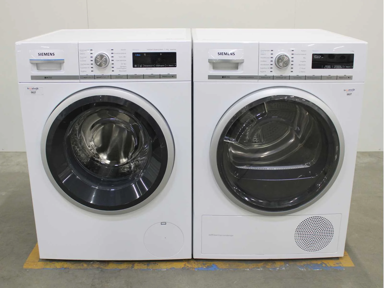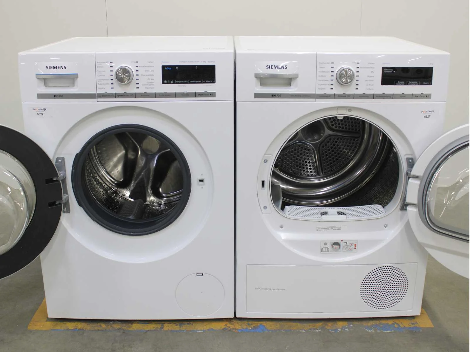 Deze wasmachine en wasdroger komen uit een partij jong gebruikt A-Merk witgoed. De machines zijn volledig getest, gereinigd en indien nodig gerepareerd. Houdt er rekening mee dat de machines lichte gebruikssporen kunnen hebben. Wasmachines en wasdrogers hebben vaak standaard afmetingen. Hoogte 85cm, Breedte 60cm en Diepte 60 tot 70cm, incl. uitstekende slangen e.d. aan de achterzijde. Als de machine vrij komt te staan is de afmeting minder relevant. Wil je de machine in een nis plaatsen of inbouwen? Controleer dan de exacte afmetingen op basis van het aangeboden merk en model/type. Within 7 days Merk: Siemens Serienummer: WM16W672NL/09 en WT47W560NL/05