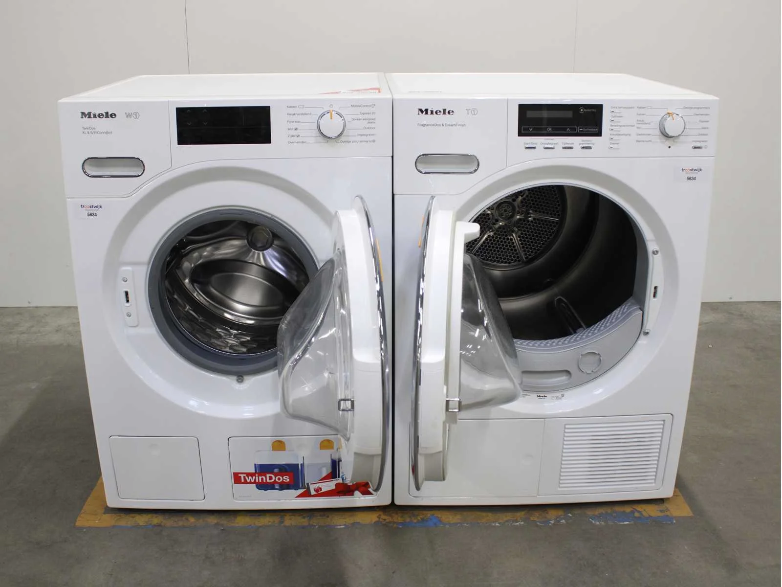 Deze wasmachine en wasdroger komen uit een partij jong gebruikt A-Merk witgoed. De machines zijn volledig getest, gereinigd en indien nodig gerepareerd. Houdt er rekening mee dat de machines lichte gebruikssporen kunnen hebben. Wasmachines en wasdrogers hebben vaak standaard afmetingen. Hoogte 85cm, Breedte 60cm en Diepte 60 tot 70cm, incl. uitstekende slangen e.d. aan de achterzijde. Als de machine vrij komt te staan is de afmeting minder relevant. Wil je de machine in een nis plaatsen of inbouwen? Controleer dan de exacte afmetingen op basis van het aangeboden merk en model/type. Within 7 days Merk: Miele Serienummer: WWI660 en TMG440WP