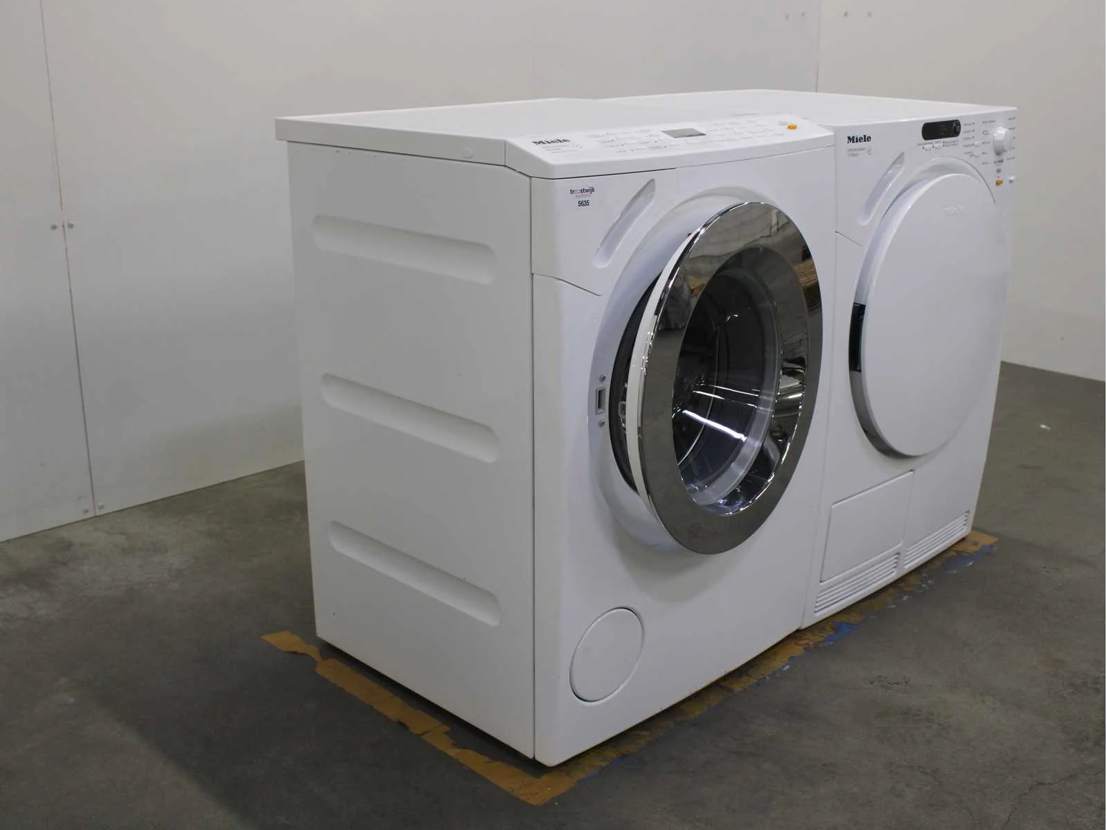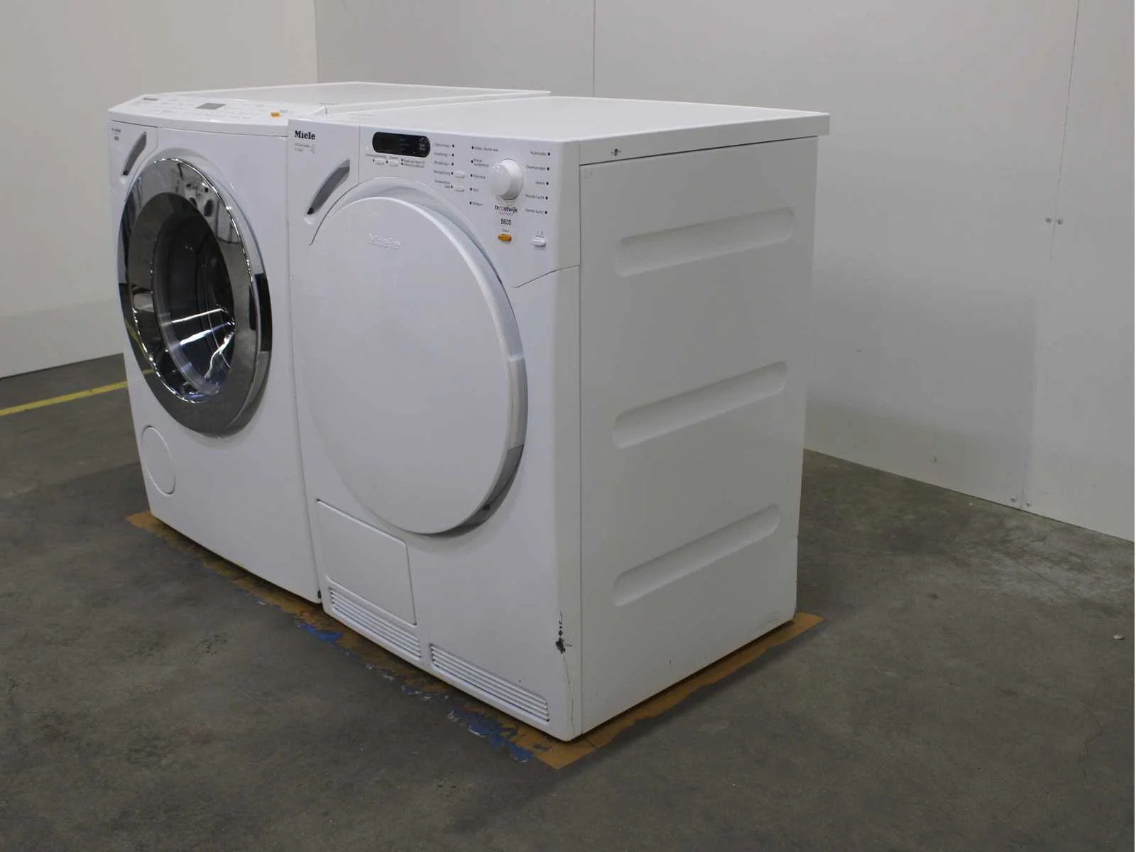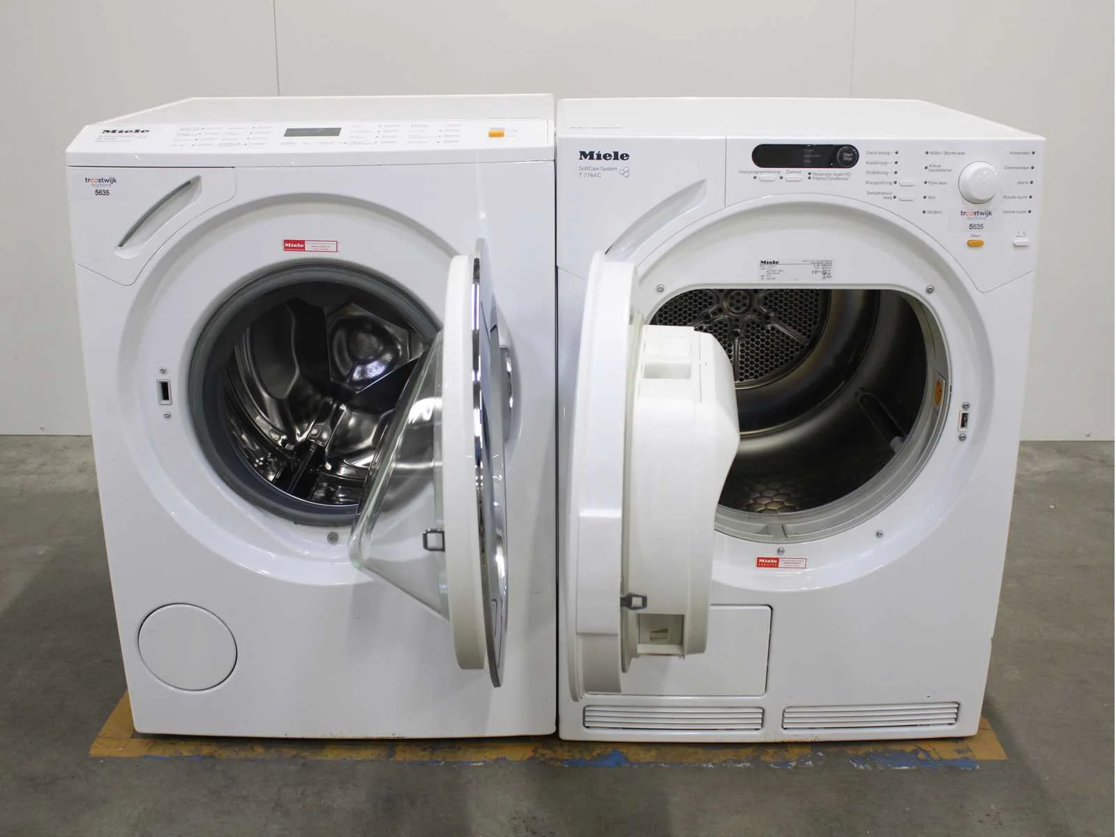 Deze wasmachine en wasdroger komen uit een partij jong gebruikt A-Merk witgoed. De machines zijn volledig getest, gereinigd en indien nodig gerepareerd. Houdt er rekening mee dat de machines lichte gebruikssporen kunnen hebben. Wasmachines en wasdrogers hebben vaak standaard afmetingen. Hoogte 85cm, Breedte 60cm en Diepte 60 tot 70cm, incl. uitstekende slangen e.d. aan de achterzijde. Als de machine vrij komt te staan is de afmeting minder relevant. Wil je de machine in een nis plaatsen of inbouwen? Controleer dan de exacte afmetingen op basis van het aangeboden merk en model/type. Within 7 days Merk: Miele Serienummer: W4446 en T7744 C
