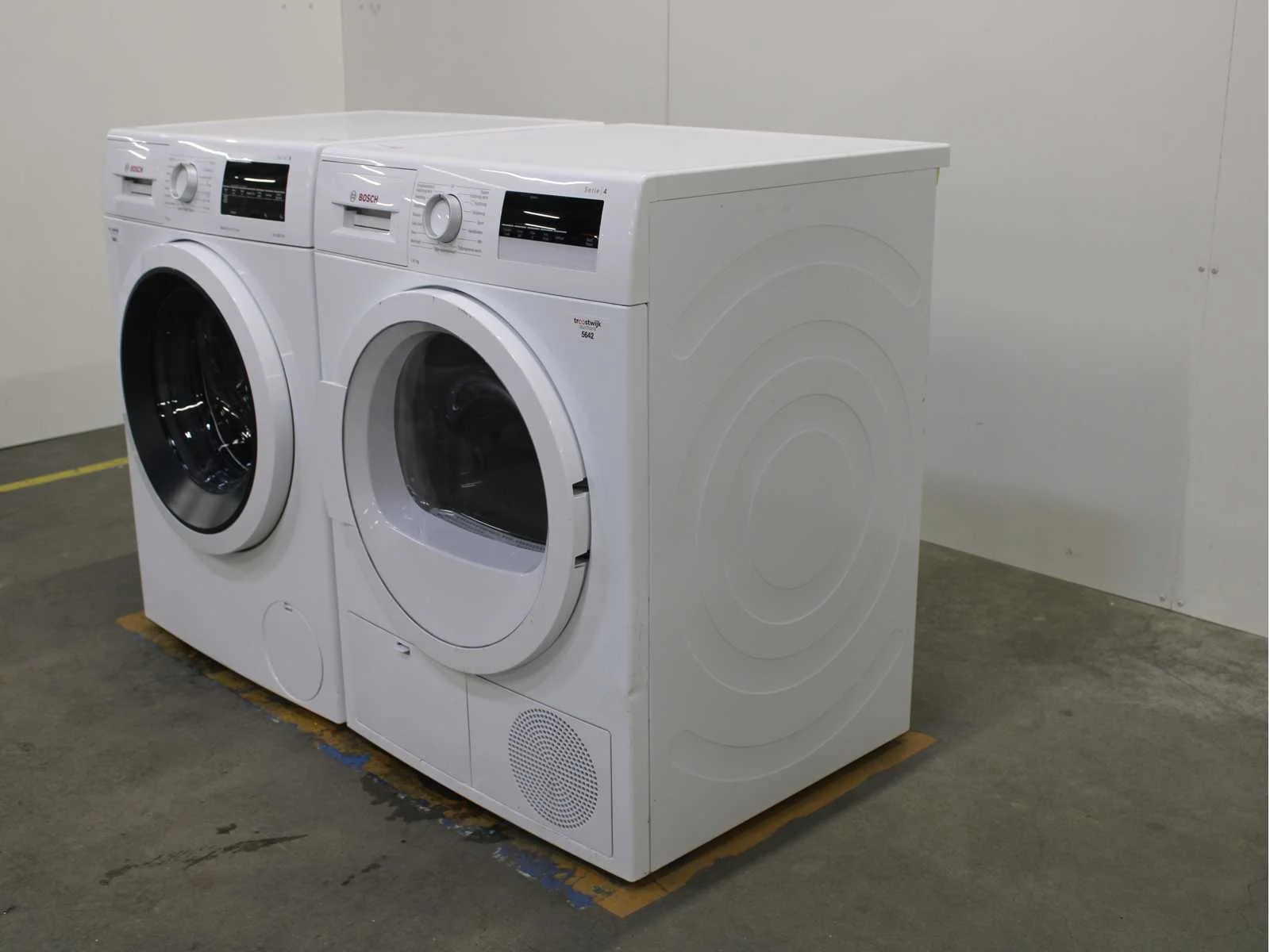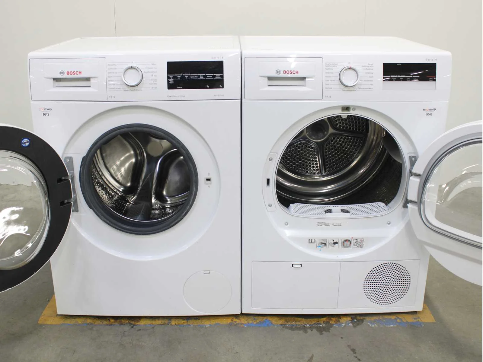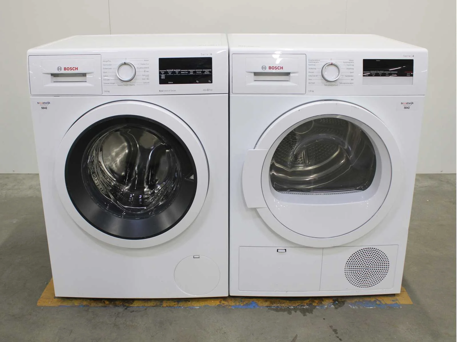 Deze wasmachine en wasdroger komen uit een partij jong gebruikt A-Merk witgoed. De machines zijn volledig getest, gereinigd en indien nodig gerepareerd. Houdt er rekening mee dat de machines lichte gebruikssporen kunnen hebben. Wasmachines en wasdrogers hebben vaak standaard afmetingen. Hoogte 85cm, Breedte 60cm en Diepte 60 tot 70cm, incl. uitstekende slangen e.d. aan de achterzijde. Als de machine vrij komt te staan is de afmeting minder relevant. Wil je de machine in een nis plaatsen of inbouwen? Controleer dan de exacte afmetingen op basis van het aangeboden merk en model/type. Within 7 days Merk: Bosch Serienummer: WAT284B2NL en WTH85202NL/01