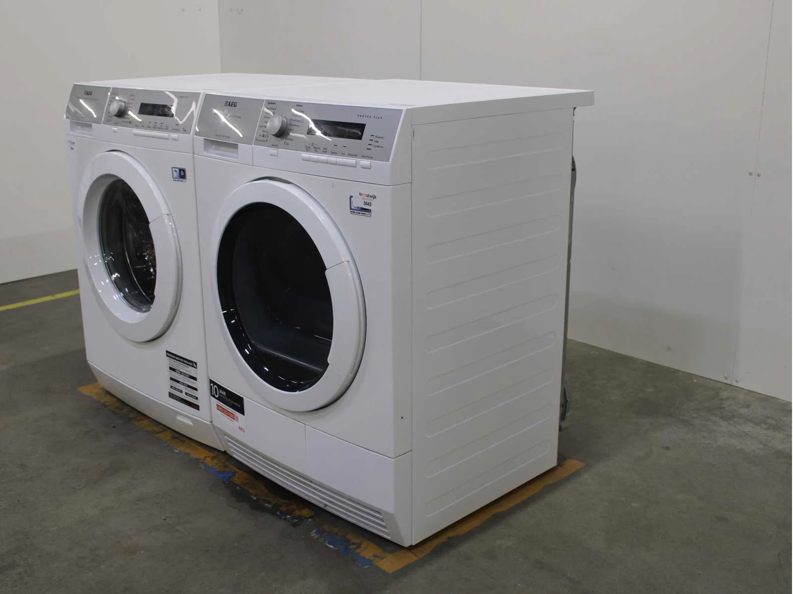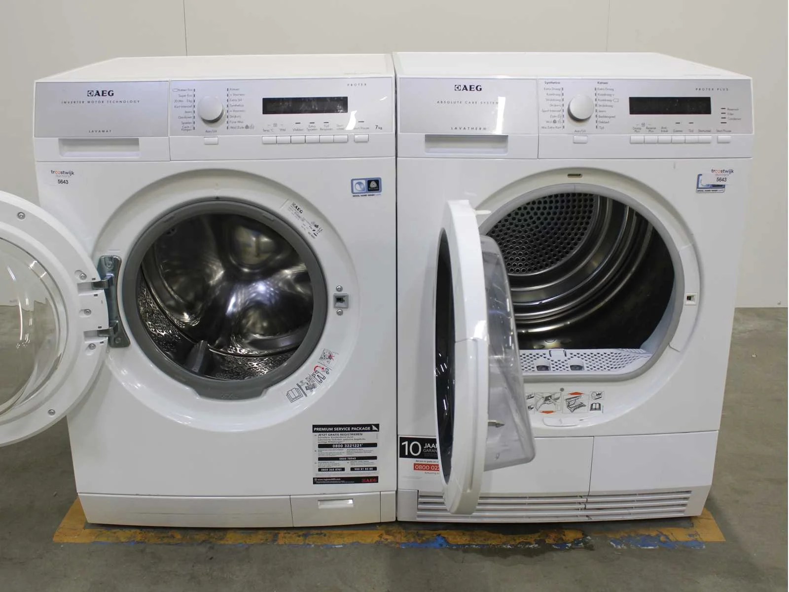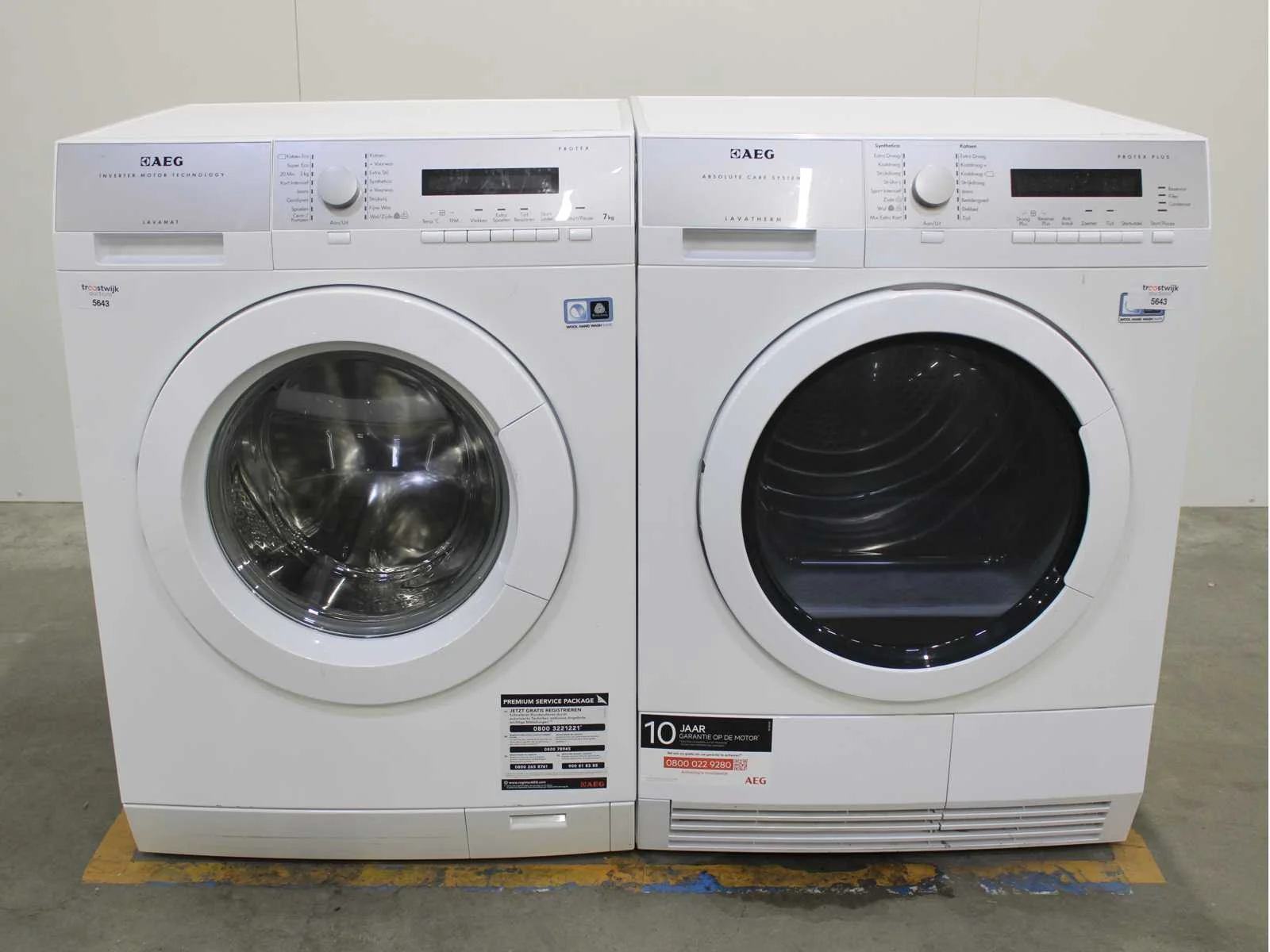 Deze wasmachine en wasdroger komen uit een partij jong gebruikt A-Merk witgoed. De machines zijn volledig getest, gereinigd en indien nodig gerepareerd. Houdt er rekening mee dat de machines lichte gebruikssporen kunnen hebben. Wasmachines en wasdrogers hebben vaak standaard afmetingen. Hoogte 85cm, Breedte 60cm en Diepte 60 tot 70cm, incl. uitstekende slangen e.d. aan de achterzijde. Als de machine vrij komt te staan is de afmeting minder relevant. Wil je de machine in een nis plaatsen of inbouwen? Controleer dan de exacte afmetingen op basis van het aangeboden merk en model/type. Within 7 days Merk: AEG Serienummer: L76472FL en T76785NIH