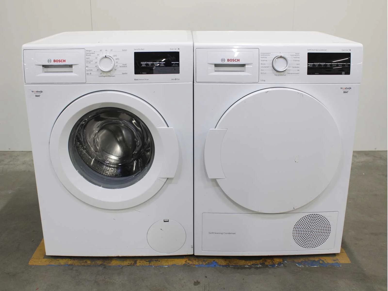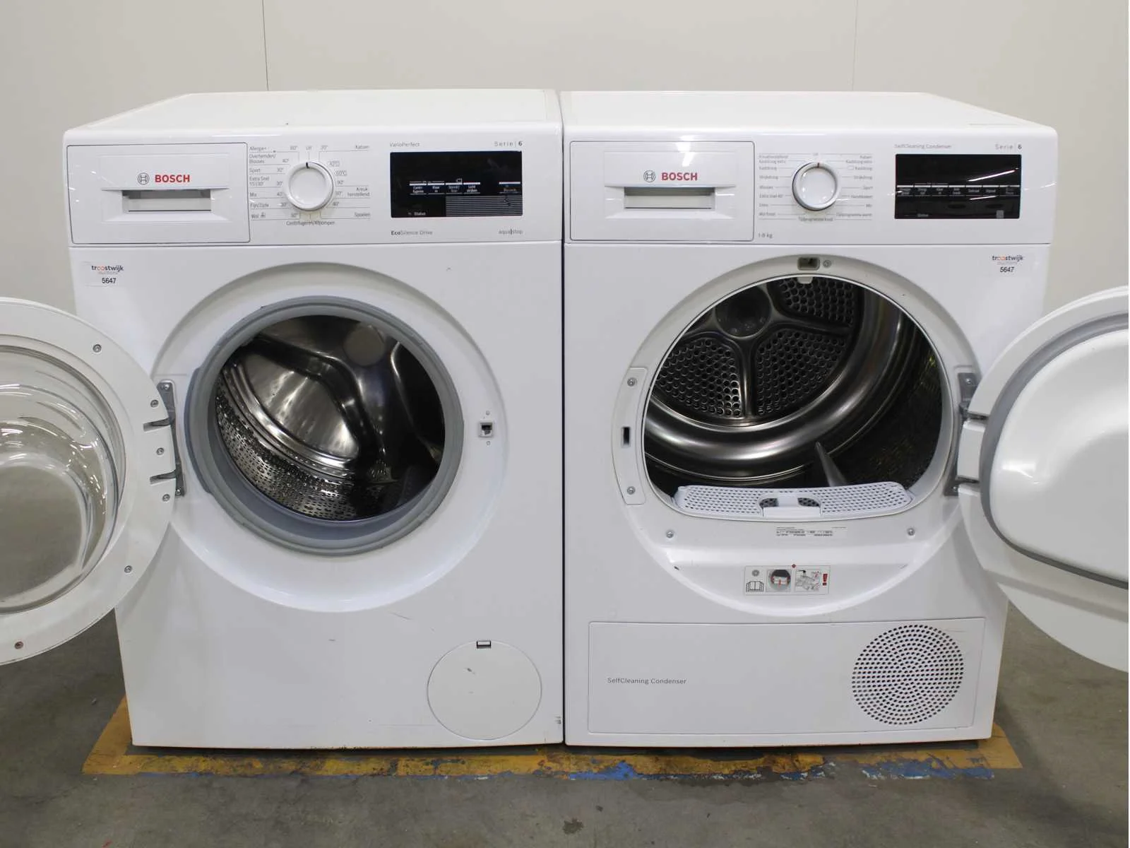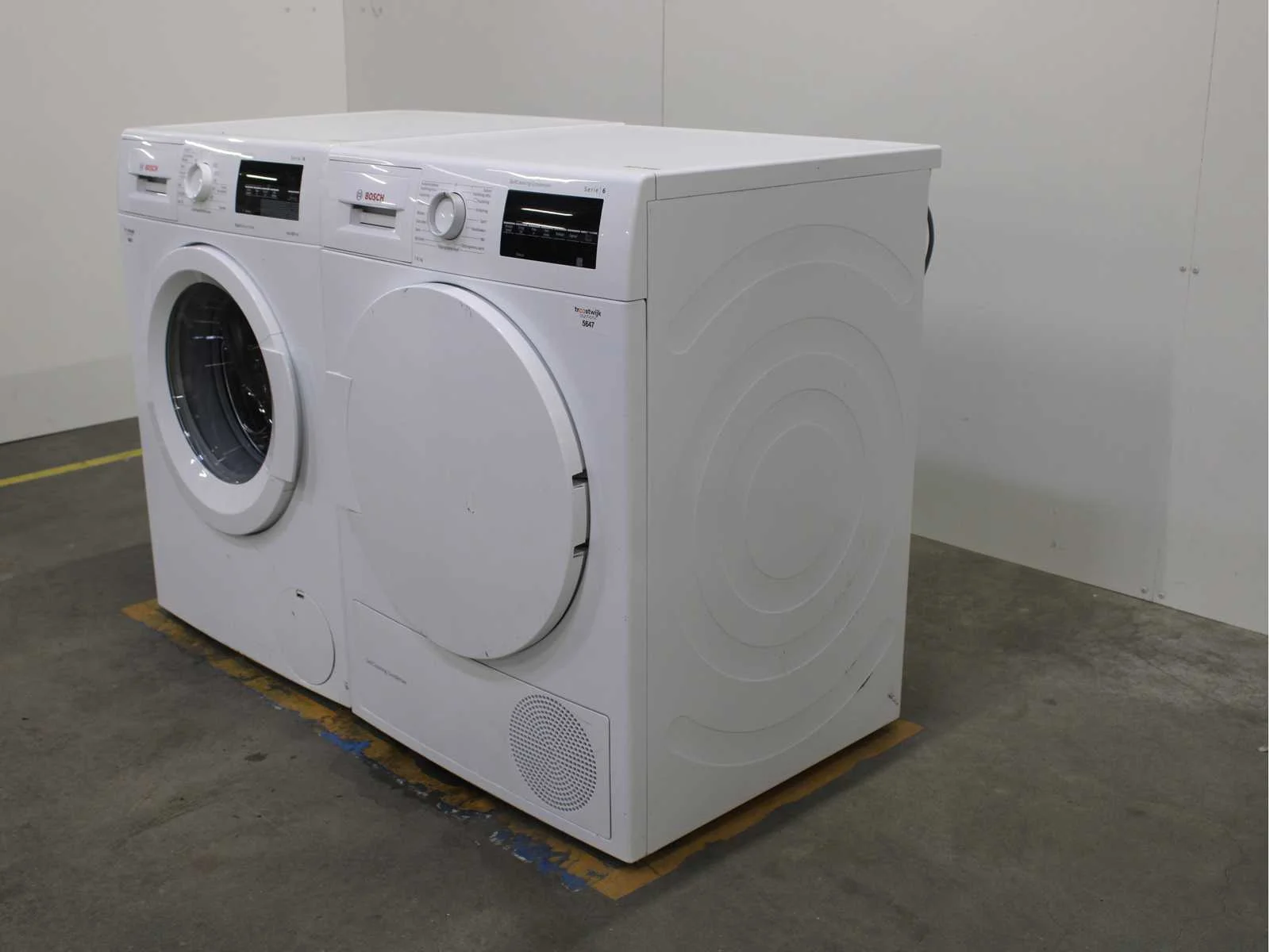Deze wasmachine en wasdroger komen uit een partij jong gebruikt A-Merk witgoed. De machines zijn volledig getest, gereinigd en indien nodig gerepareerd. Houdt er rekening mee dat de machines lichte gebruikssporen kunnen hebben. Wasmachines en wasdrogers hebben vaak standaard afmetingen. Hoogte 85cm, Breedte 60cm en Diepte 60 tot 70cm, incl. uitstekende slangen e.d. aan de achterzijde. Als de machine vrij komt te staan is de afmeting minder relevant. Wil je de machine in een nis plaatsen of inbouwen? Controleer dan de exacte afmetingen op basis van het aangeboden merk en model/type. Within 7 days Merk: Bosch Serienummer: WNAT323471/09 en WTW83460NL/05