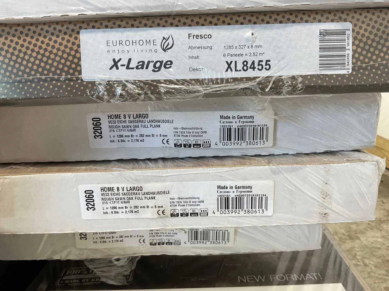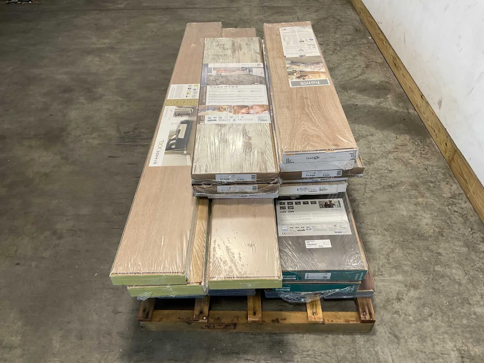 Mixpallet met diverse soorten laminaat – ongeveer 33 pakken, goed voor circa 75m². Bekijk de foto’s voor specificaties en details.