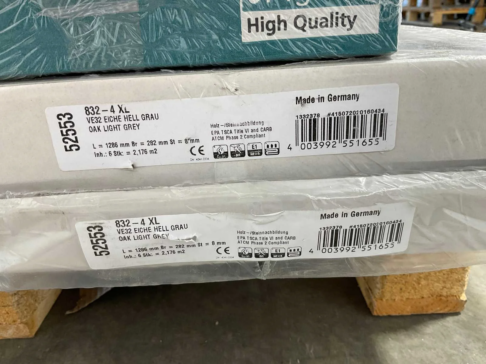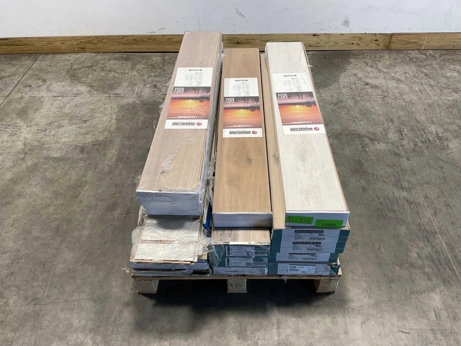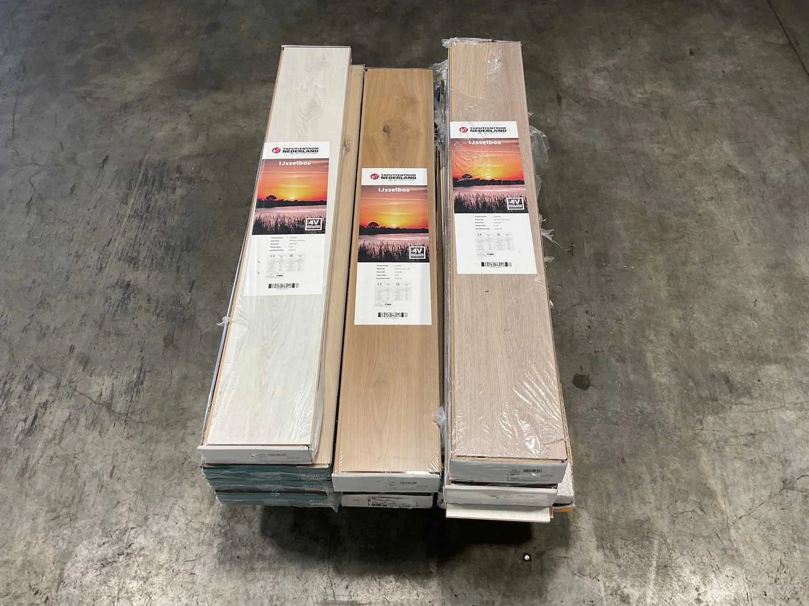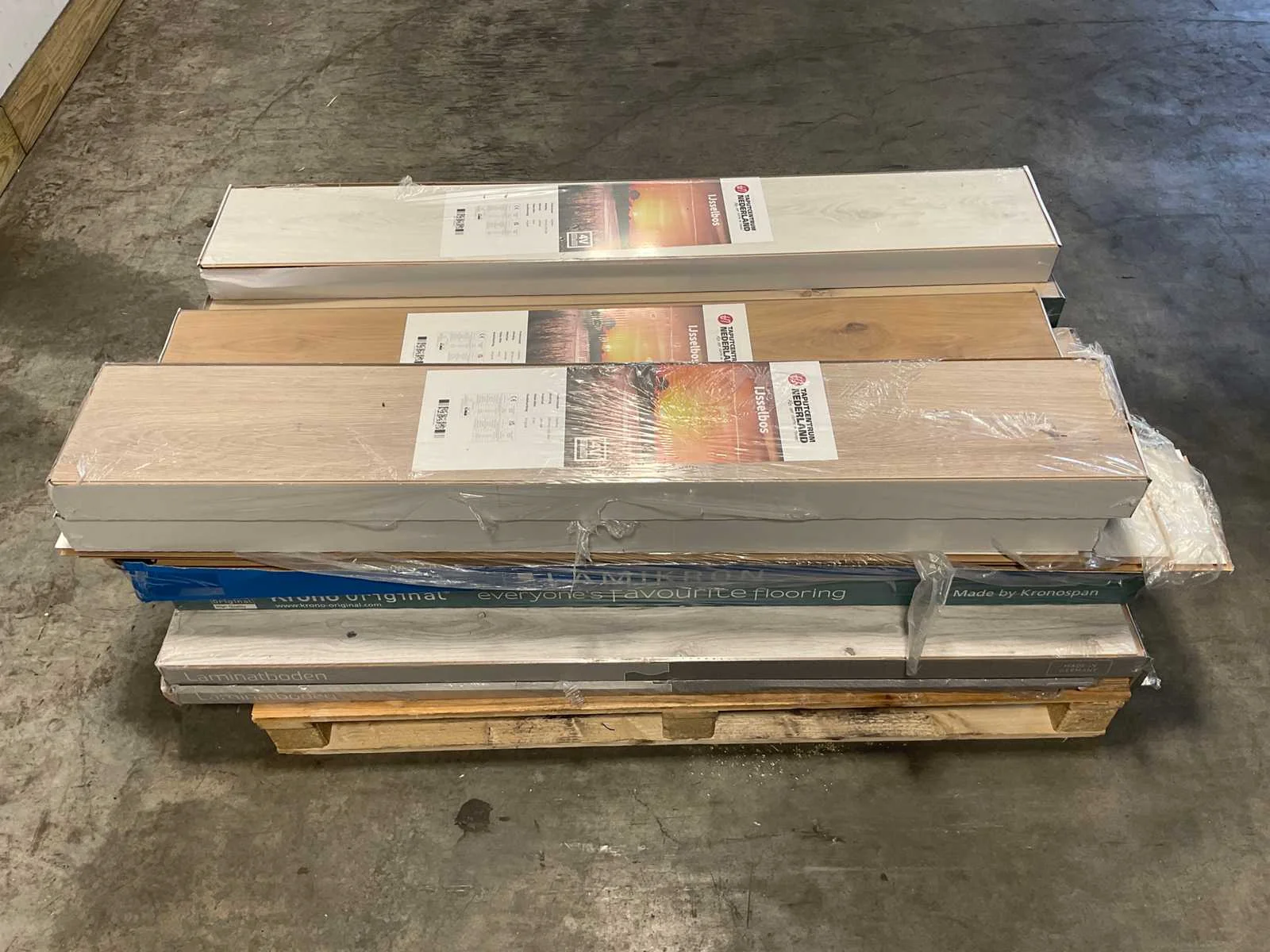 Mixpallet met diverse soorten laminaat – ongeveer 15 pakken, goed voor circa 33m². Bekijk de foto’s voor specificaties en details.