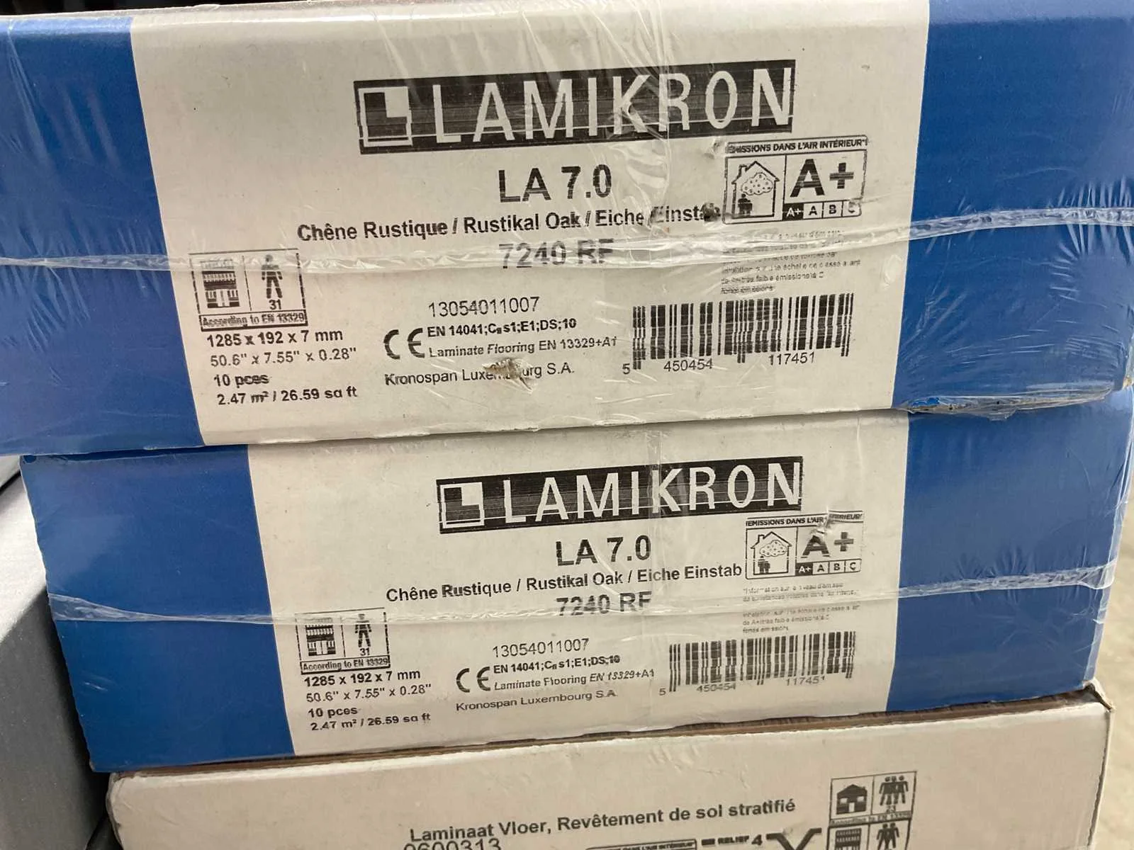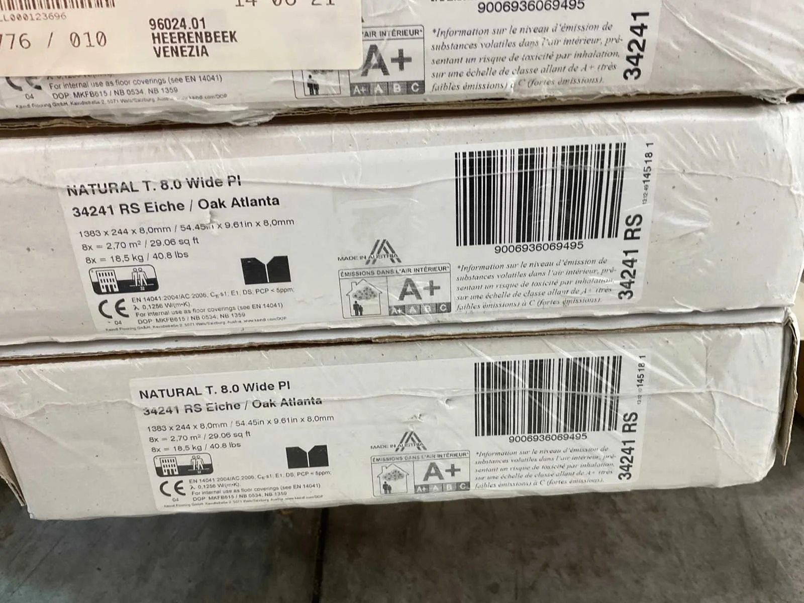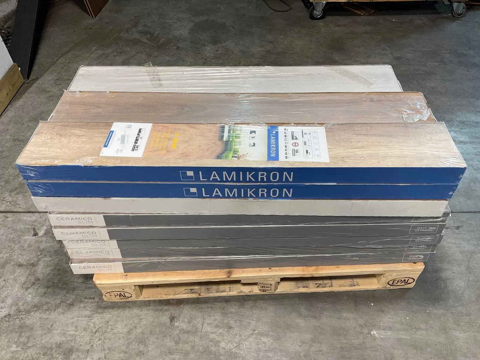 Mixpallet met diverse soorten laminaat – ongeveer 23 pakken, goed voor circa 51m². Bekijk de foto’s voor specificaties en details.