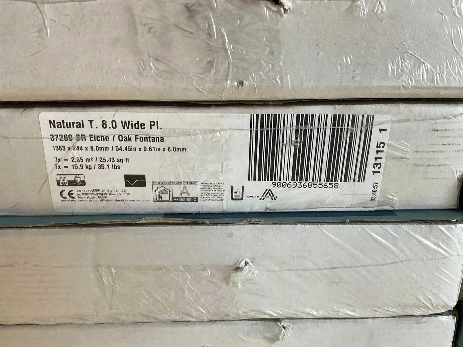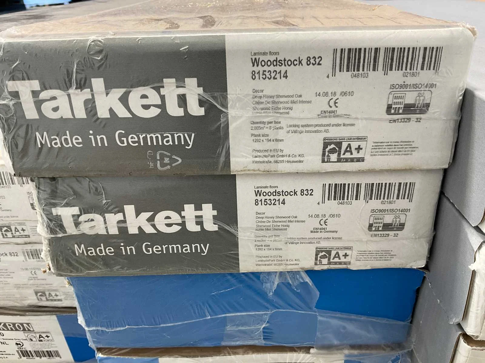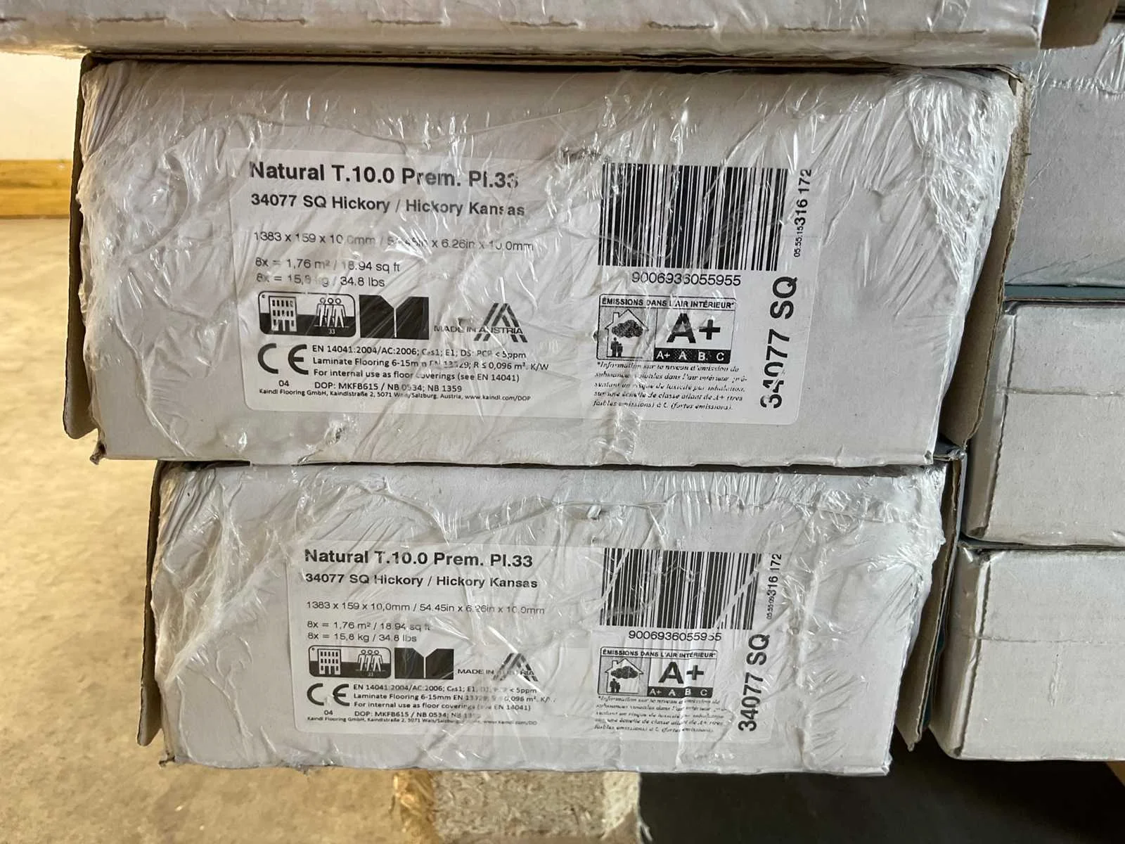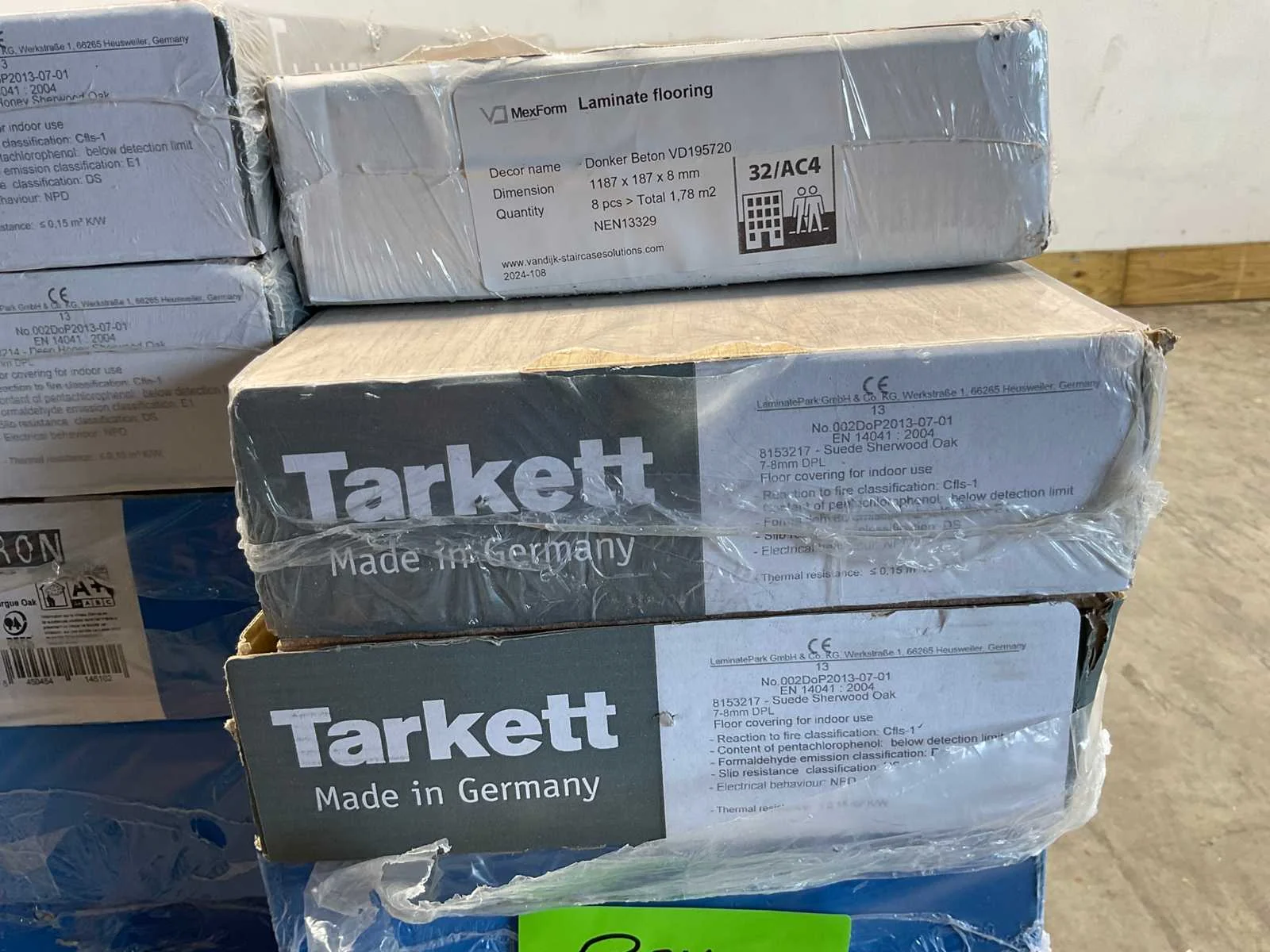 Mixpallet met diverse soorten laminaat – ongeveer 28 pakken, goed voor circa 62 m². Bekijk de foto’s voor specificaties en details.