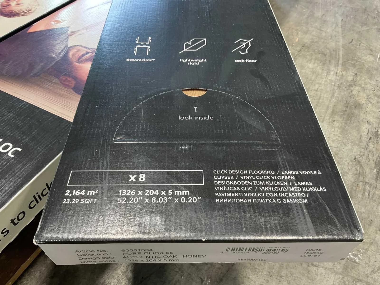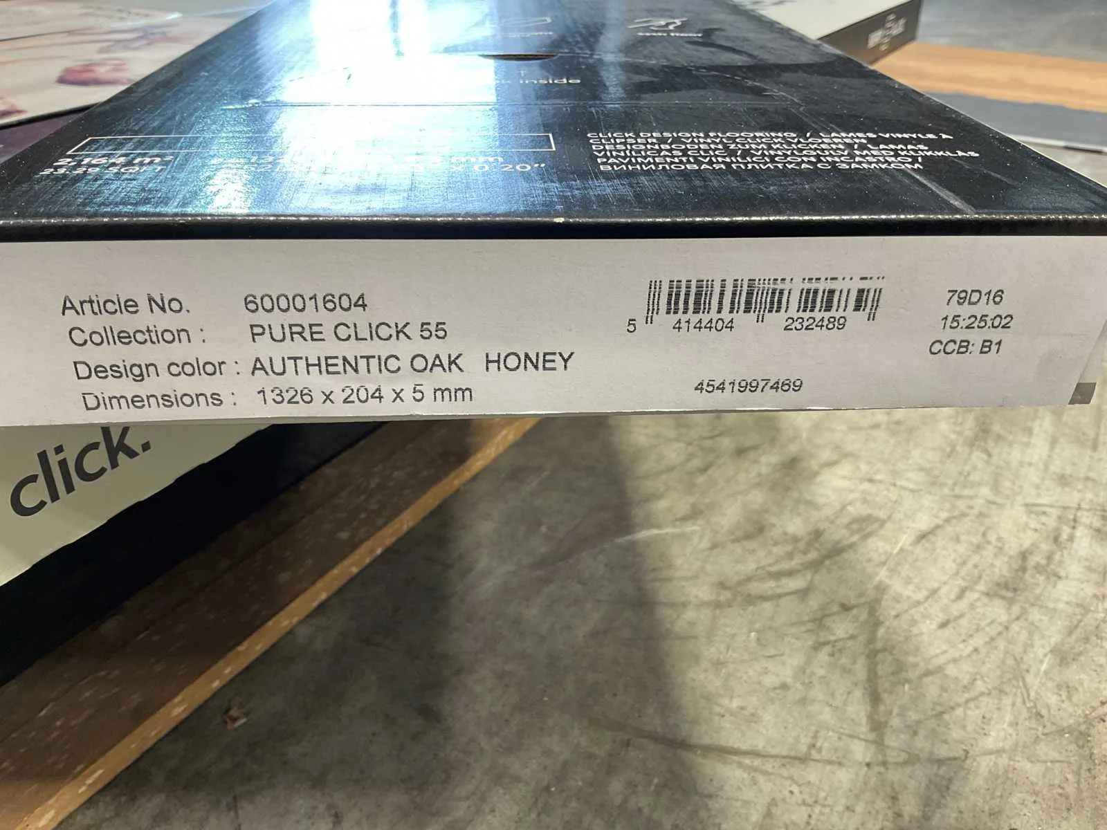 Vinyl kliklaminaat a 2,164 m2 per pak 1 pak bestaat ui 8 planken a 1326x204x5mm https://laminaatxxl.nl/product/berry-alloc-pure-planken-authentic-60001604/ https://vloerendepot.com/products/berry-alloc-pure-planks-authentic-oak-honey-60001604?srsltid=AfmBOopVgtthEH2Vb_2rSuY0V1sbGh9qGBvilOlq2ehIVxtQZZ6vKfRZ Merk: Pure. Model: Click 55 Product type: kliklaminaat Geschikt voor vloerverwarming: true V-groef: true Aantal m² per verpakking: 2.164m² Kleur: Authentic Oak Honey Lengte: 1326mm Breedte: 204mm Hoogte: 5mm Materiaal: Vinyl
