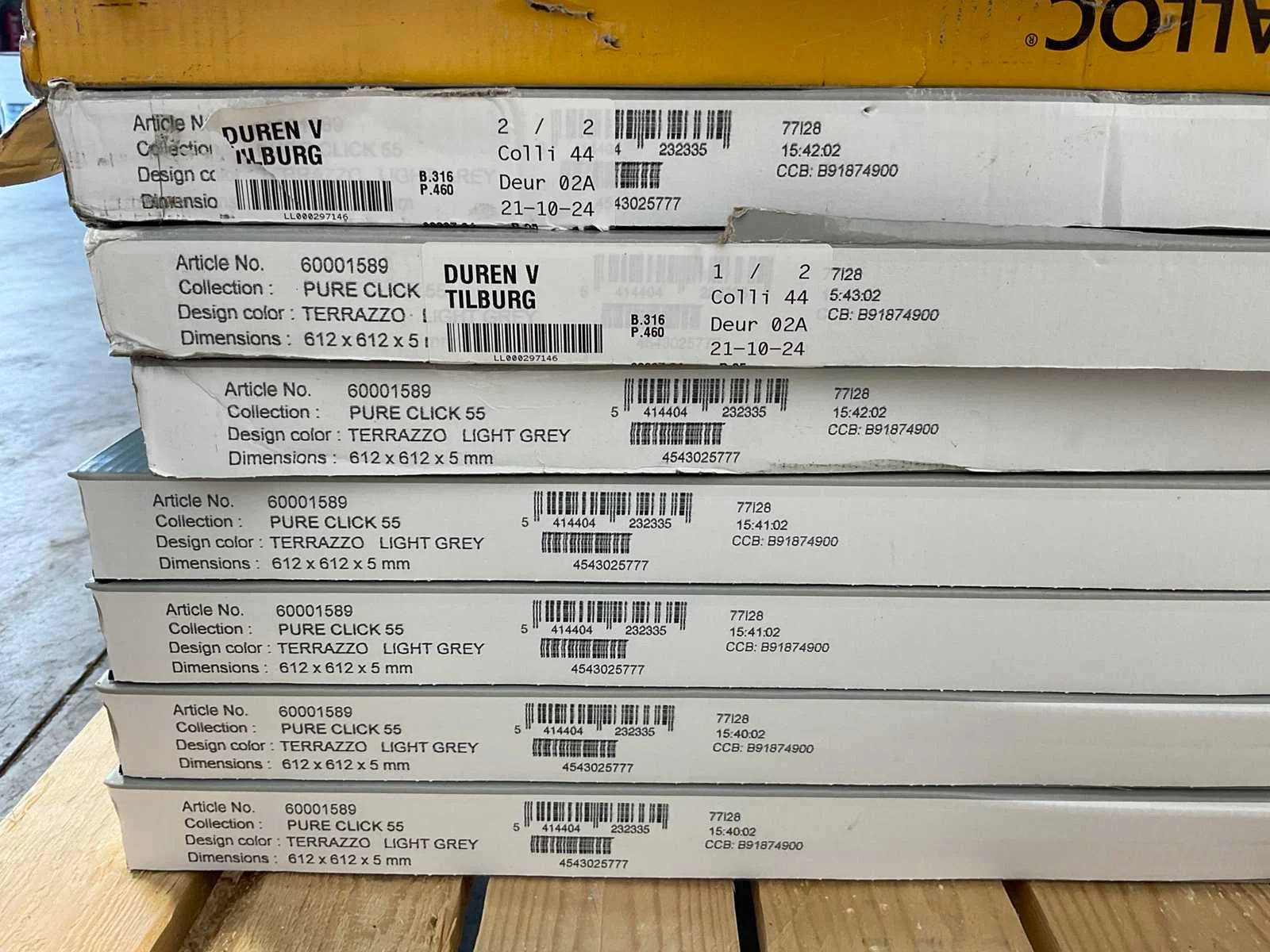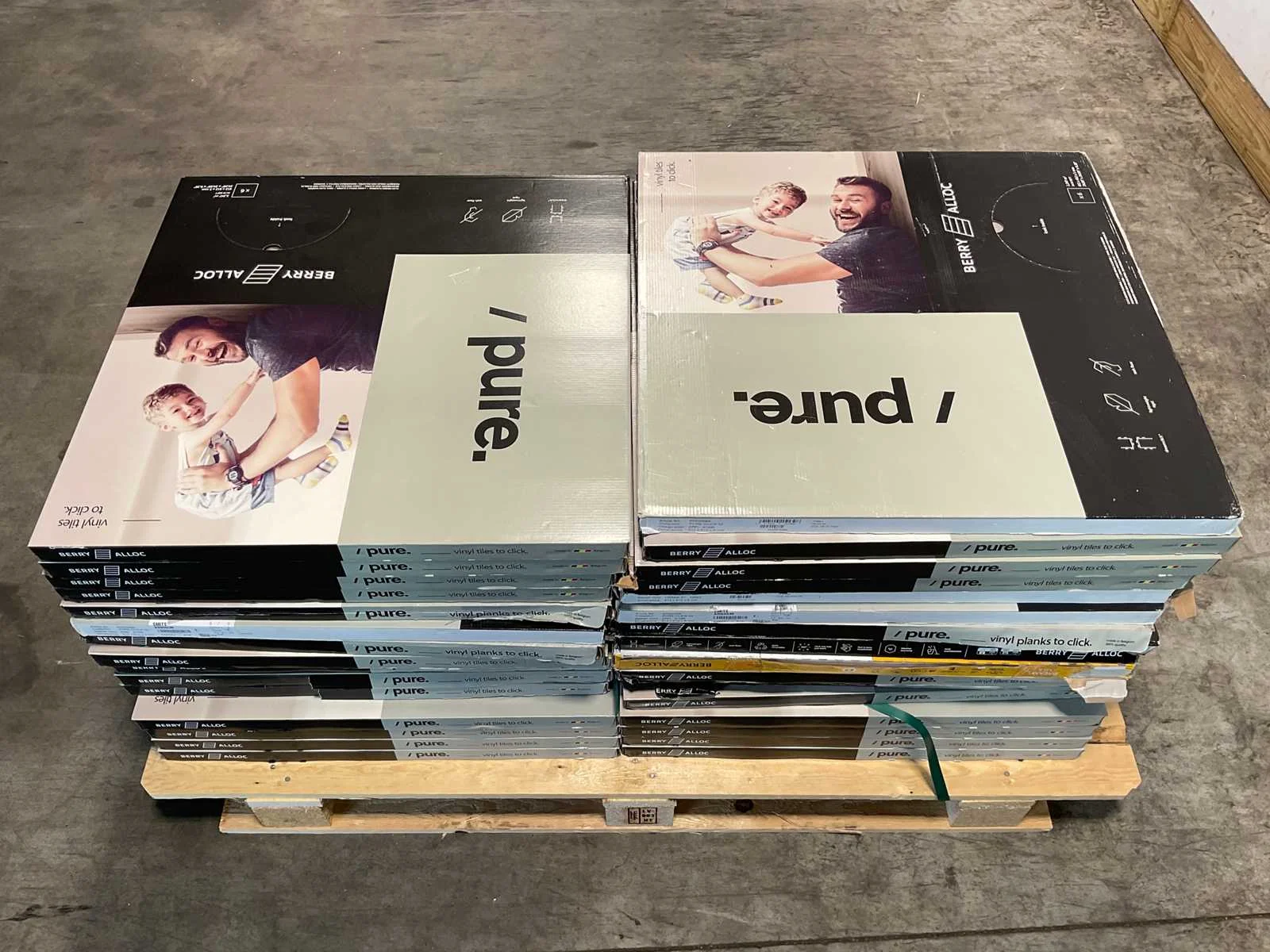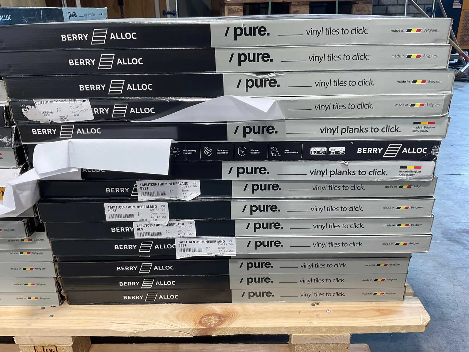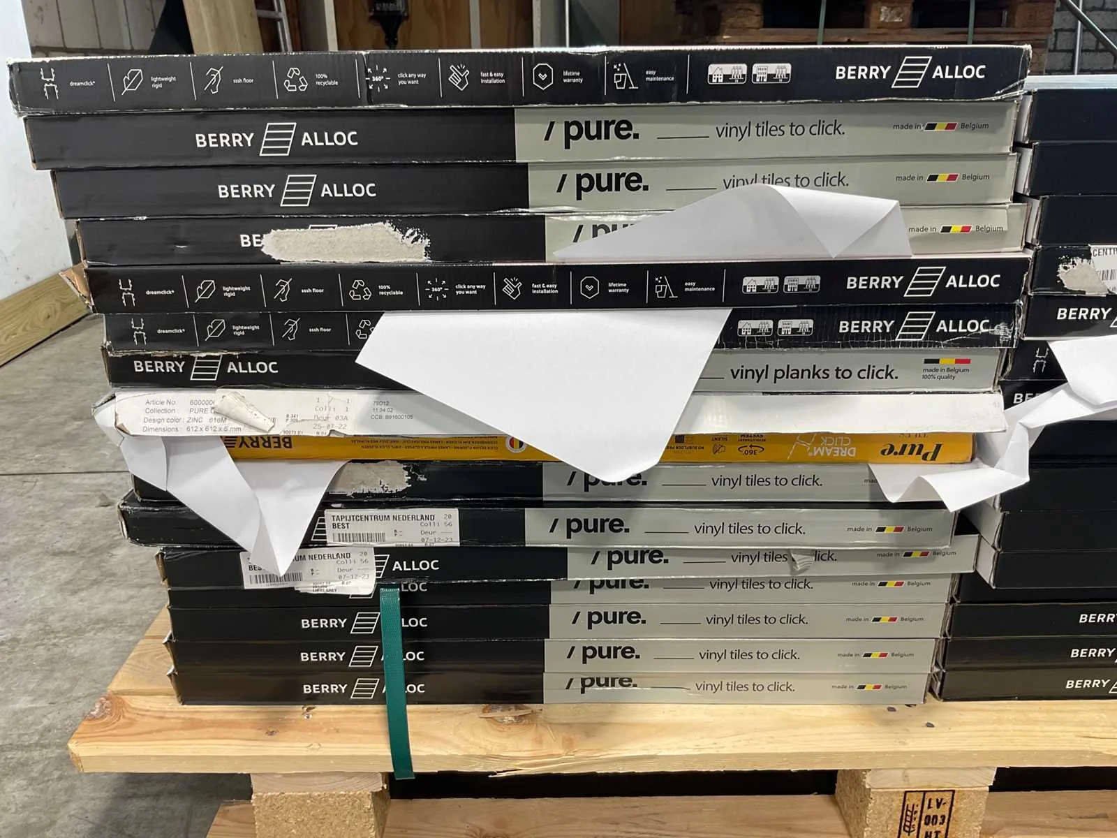 Mixpallet met diverse soorten laminaat – ongeveer 31 pakken, goed voor circa 69 m². Bekijk de foto’s voor specificaties en details.