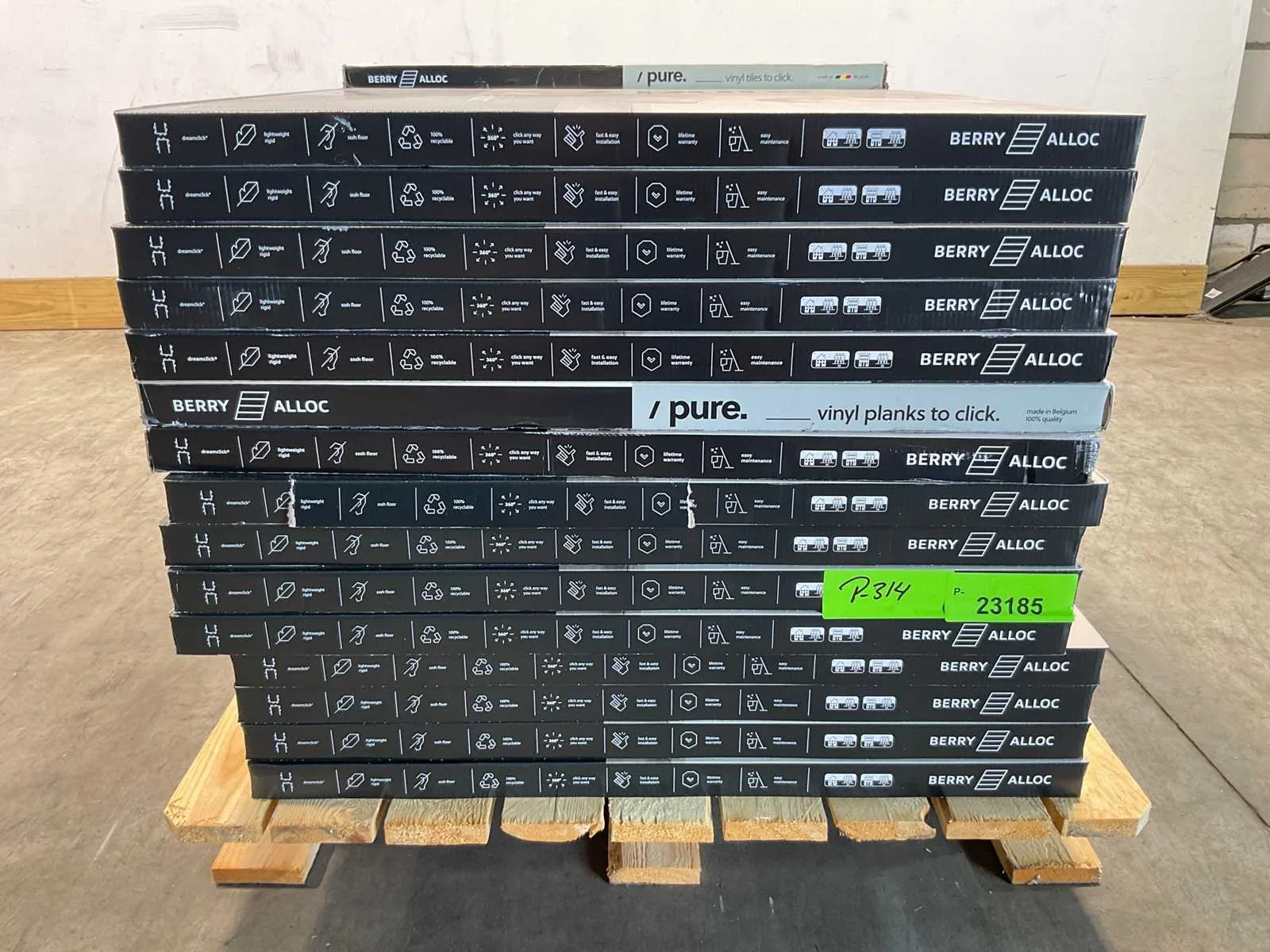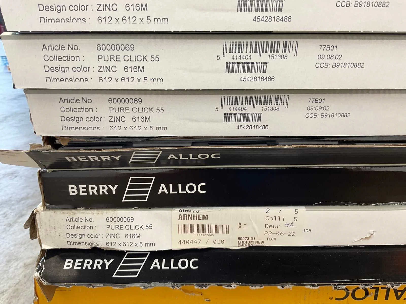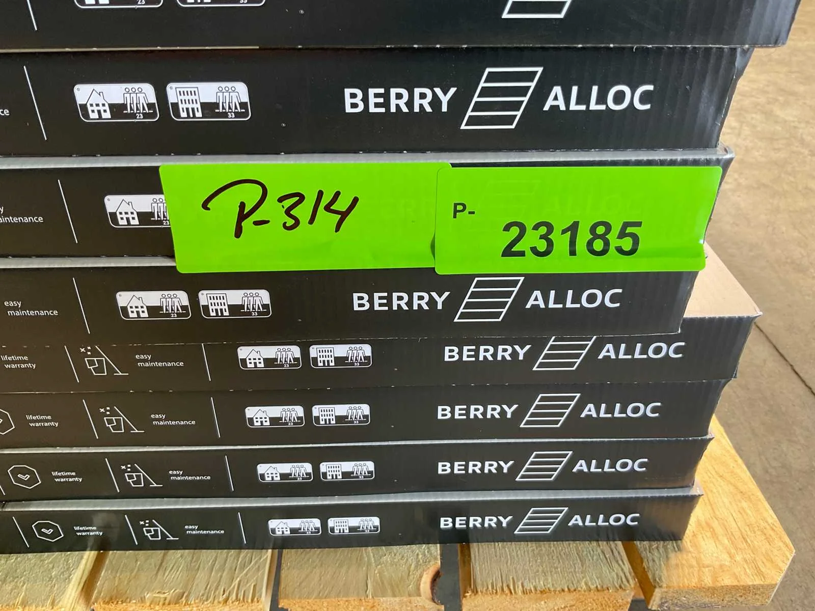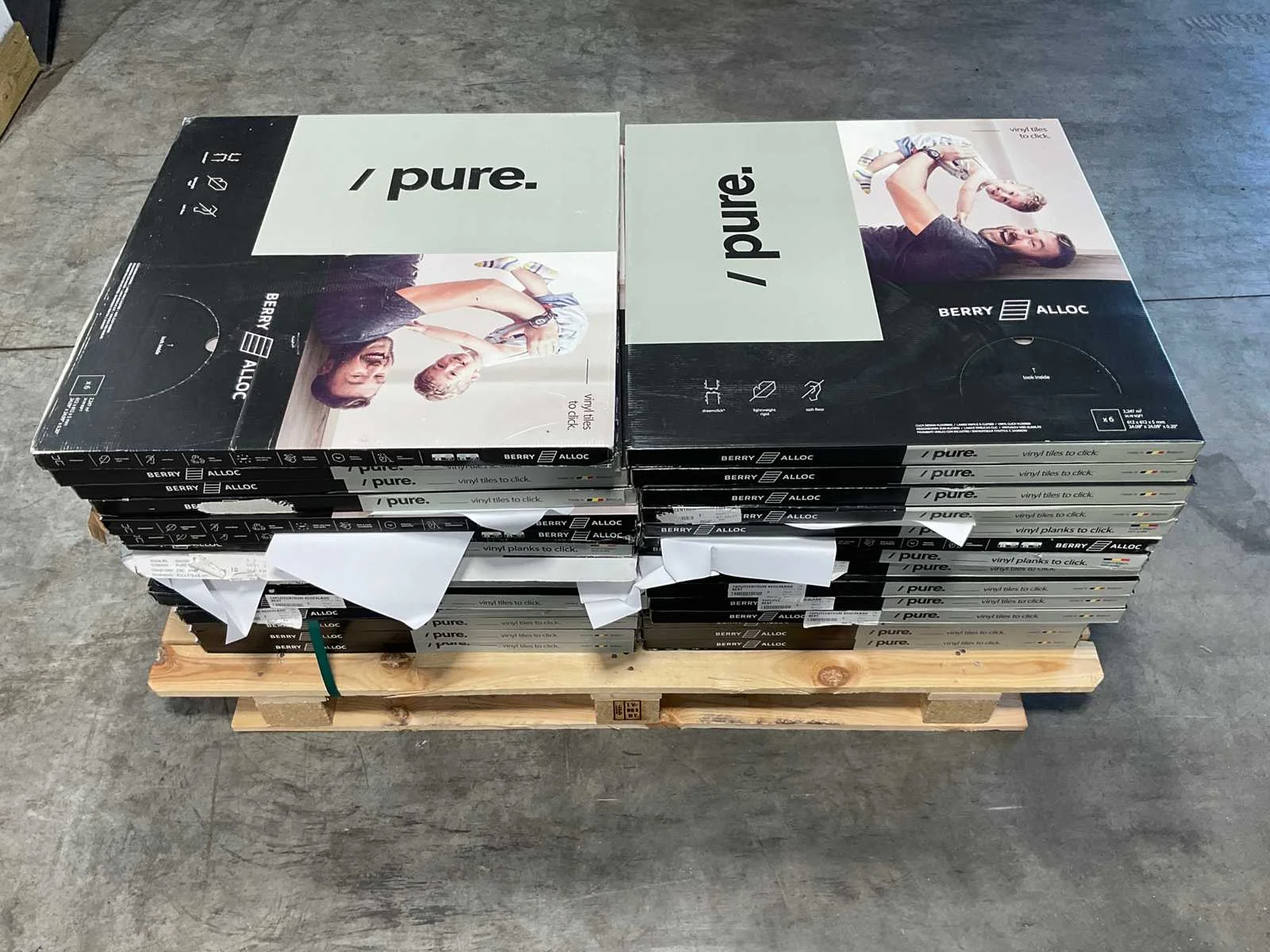 Mixpallet met diverse soorten laminaat – ongeveer 31 pakken, goed voor circa 69 m². Bekijk de foto’s voor specificaties en details.