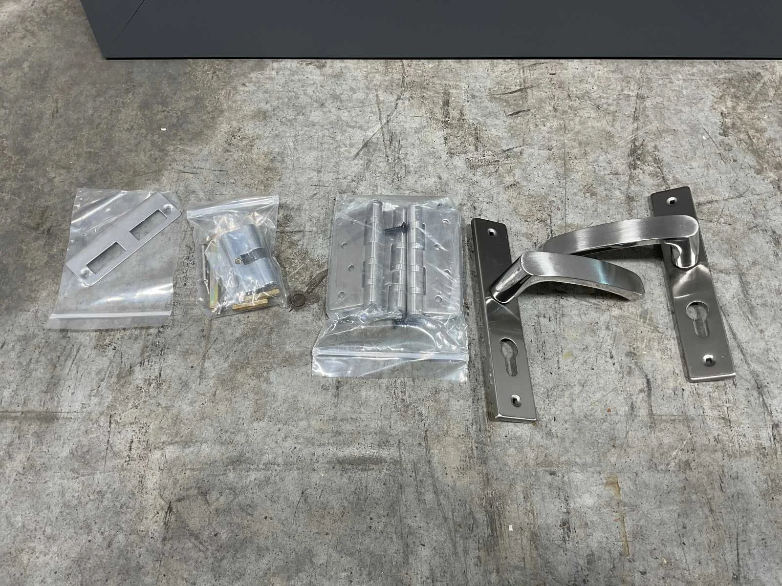 Kavel bevat: 1x Deur met composiet binnenwerk in aluminium frame (183 x 93 cm) 1x aluminium kozijnset (270 x 108 cm) Inclusief hang- en sluitwerk Buitendeur: true Stomp: true Afmeting h: 1830mm Afmeting b: 930mm Totale afmeting lxbxh: 2700x1080mm Aluminium: true Kleur: Antraciet