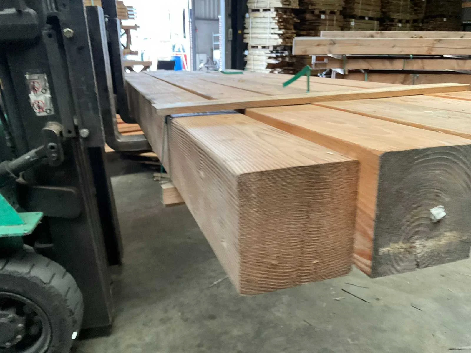Houtsoort: Douglas Materiaal: Geschaafd Kopmaat: 200x200 Gewicht: 350kg Totale afmeting Breedte: 3000mm