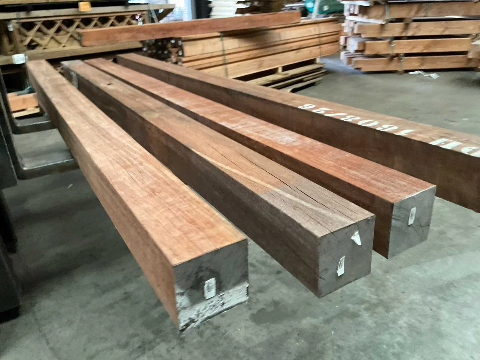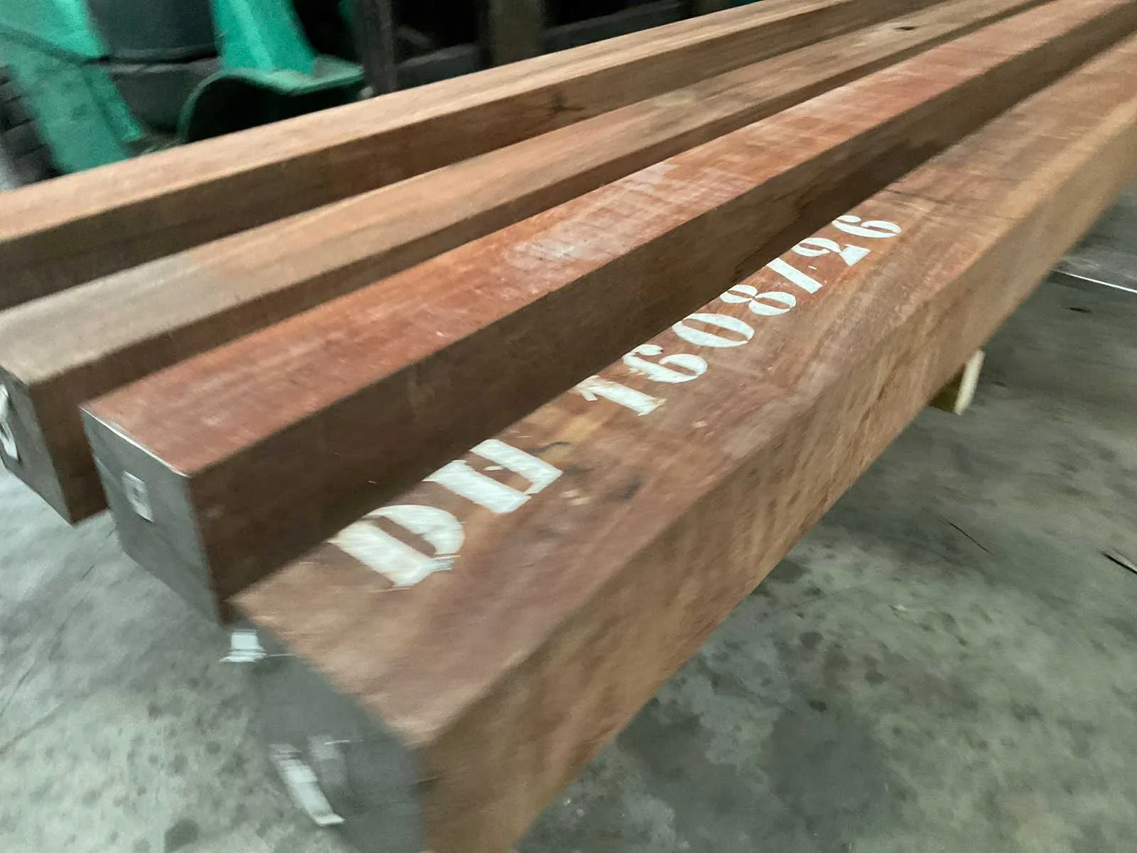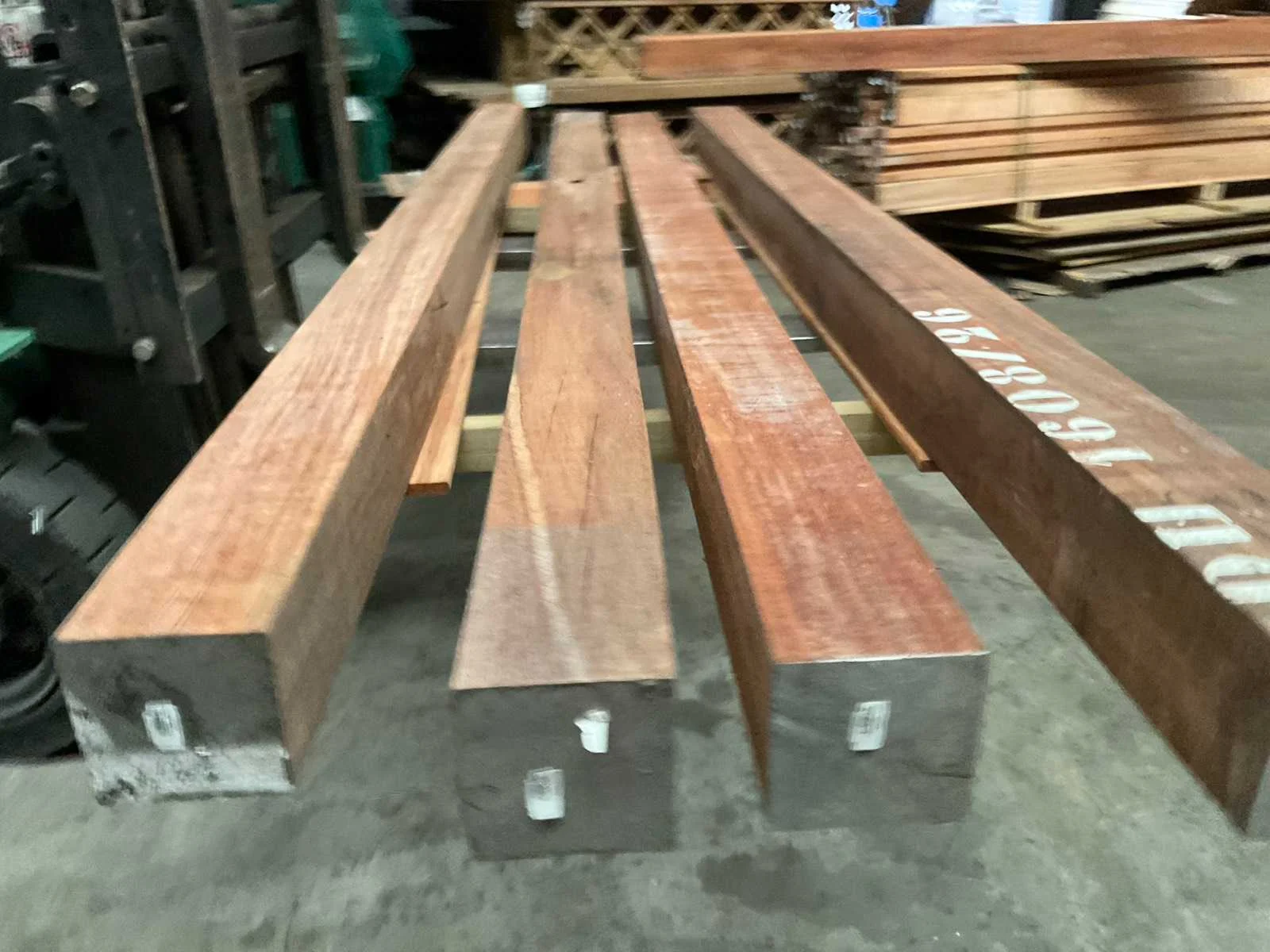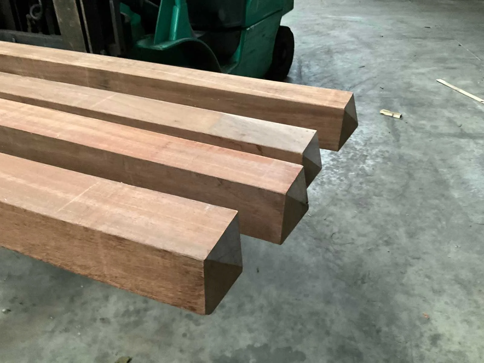 Houtsoort: Asobe Materiaal: Geschaafd hardhout Kopmaat: 150x150 Gewicht: 450kg Totale afmeting Breedte: 3000mm