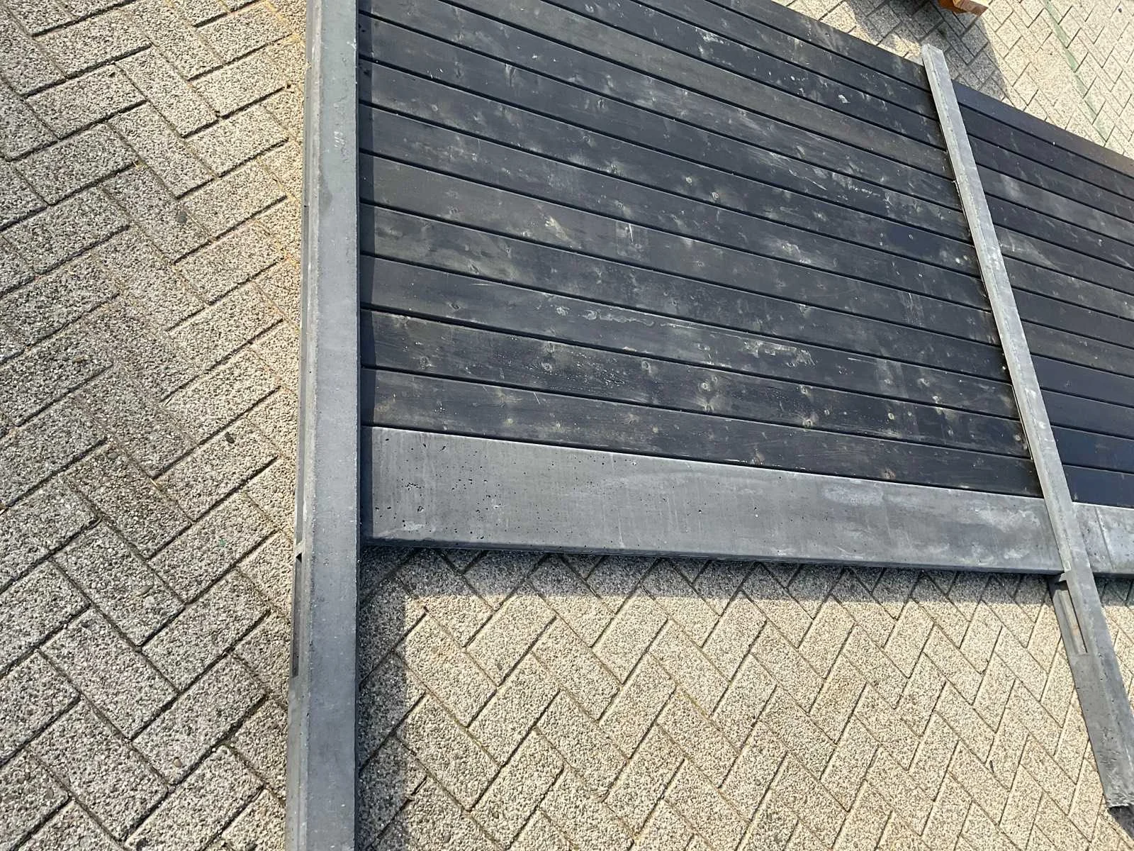 Antraciet hout-beton schutting – 34,5 meter x 205 cm