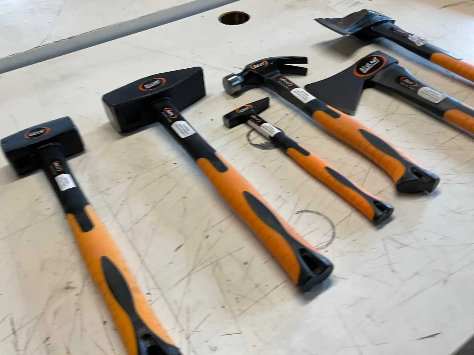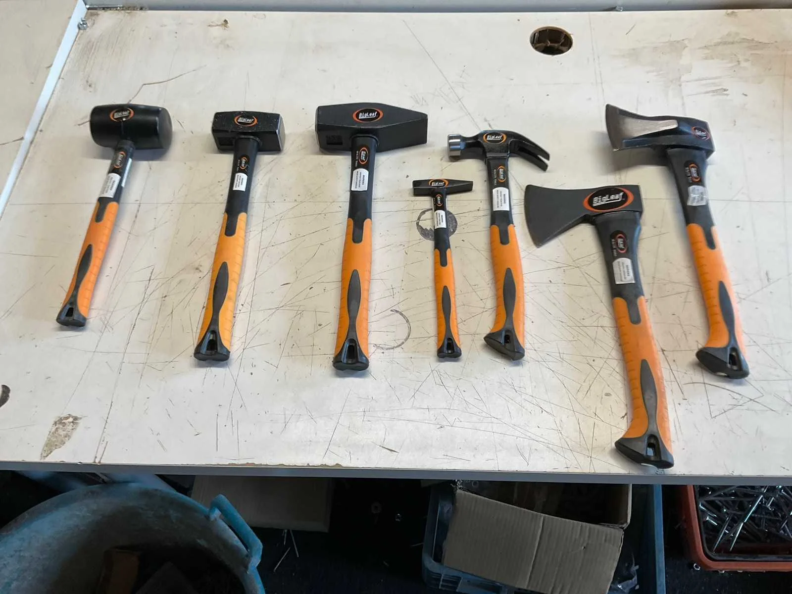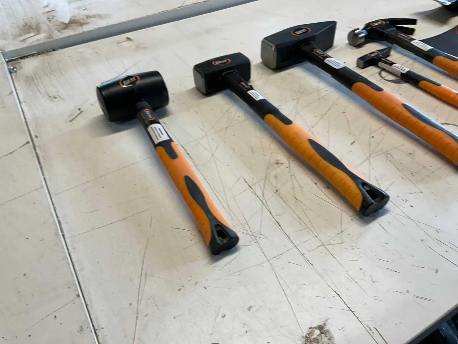 Big Leaf tuingereedschap set 8-delig. 1 rubber hamer, 1 vuisthamer, 2 bankhamers, 1 klauwhamer, 1 bijl, 1 kloofbijl. Zie foto's voor details. Merk: Big Leah