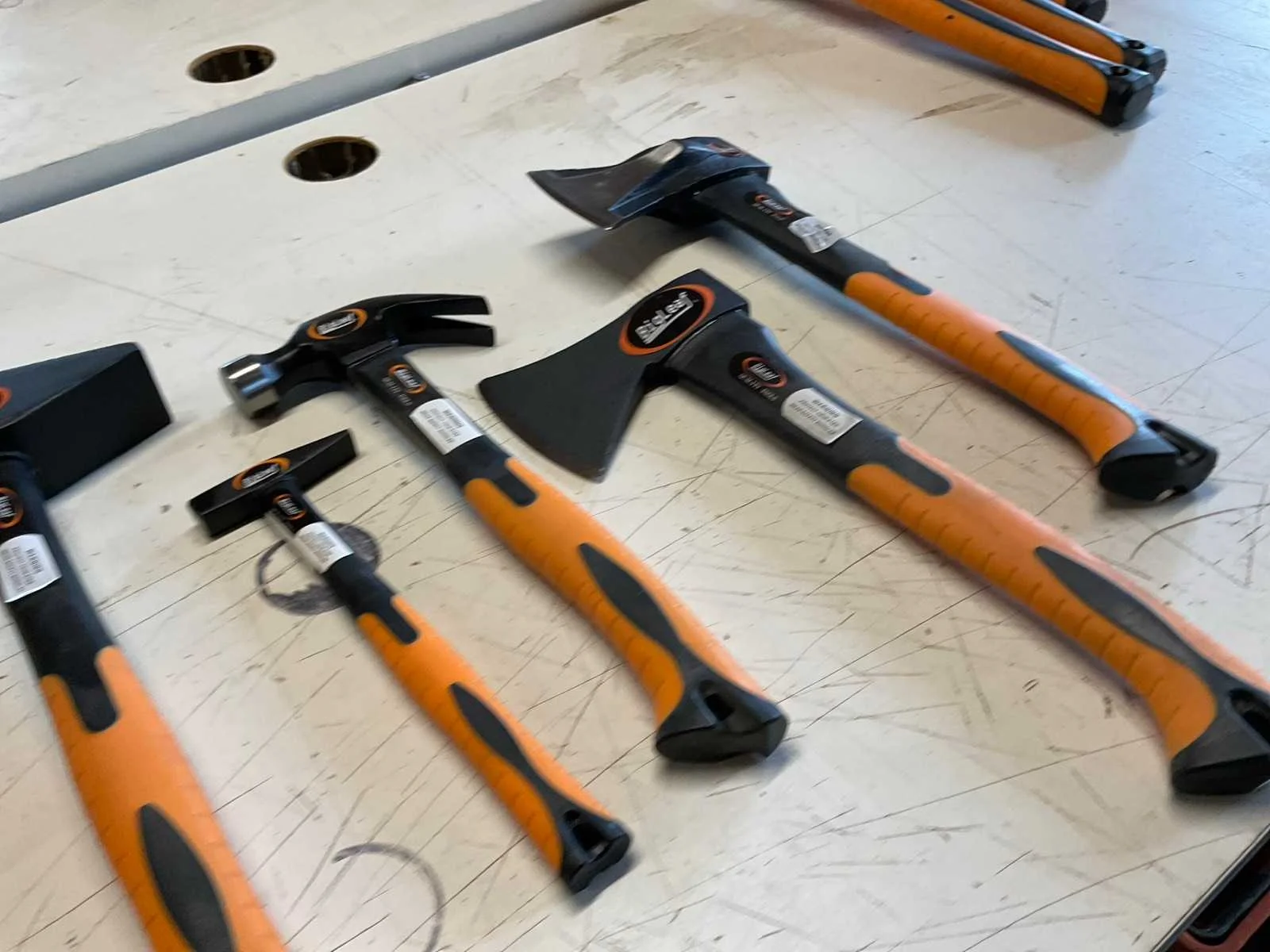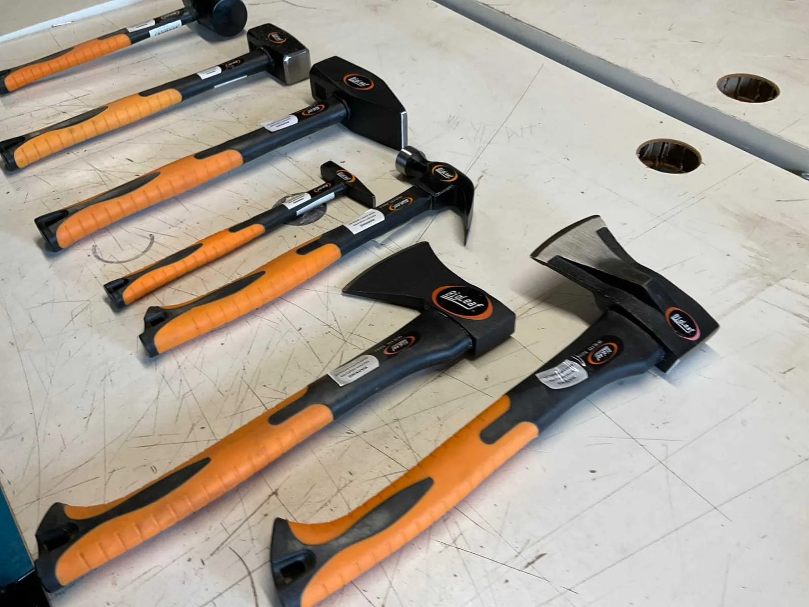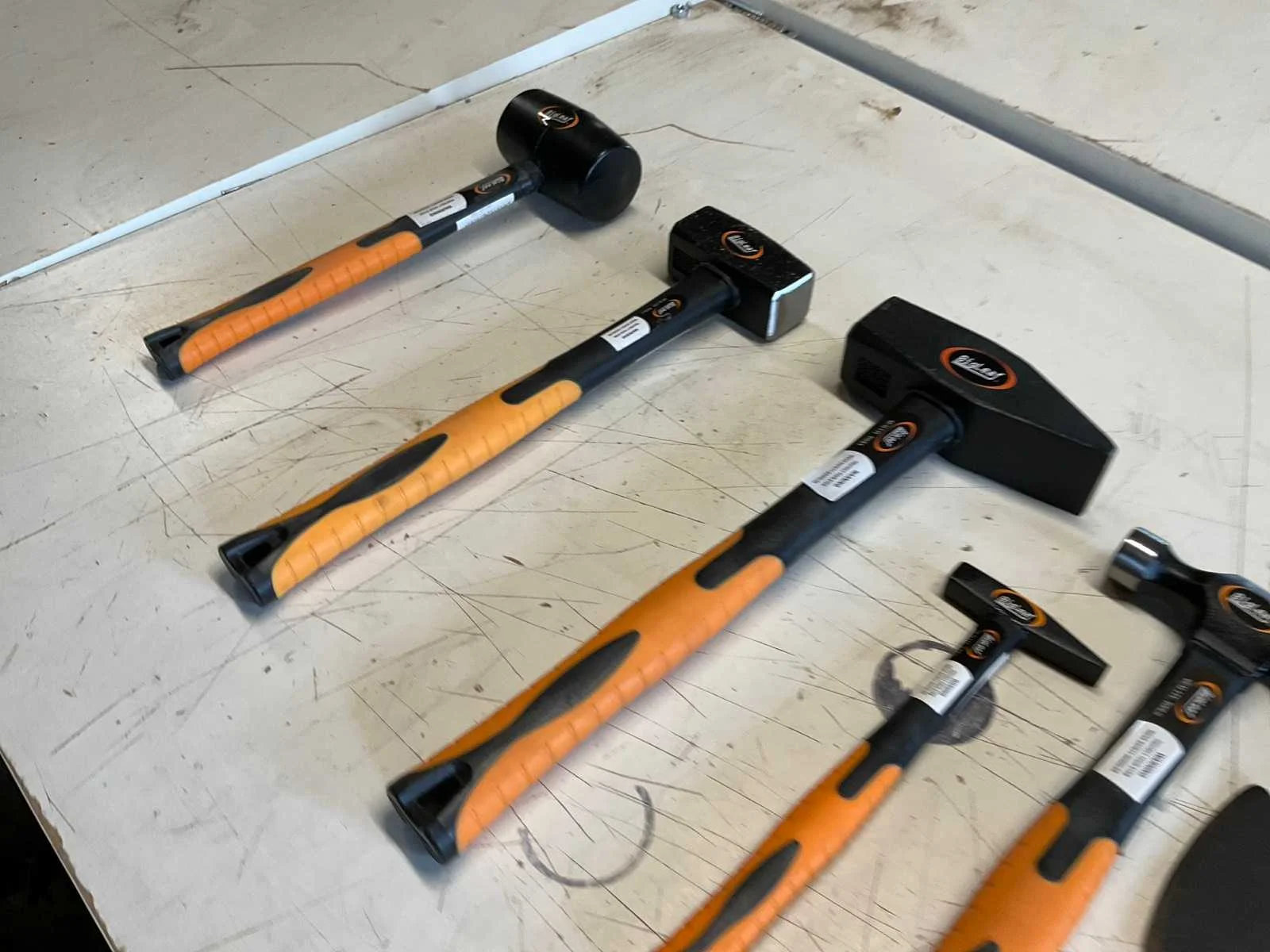 Big Leaf tuingereedschap set 8-delig. 1 rubber hamer, 1 vuisthamer, 2 bankhamers, 1 klauwhamer, 1 bijl, 1 kloofbijl. Zie foto's voor details. Merk: Big Leah