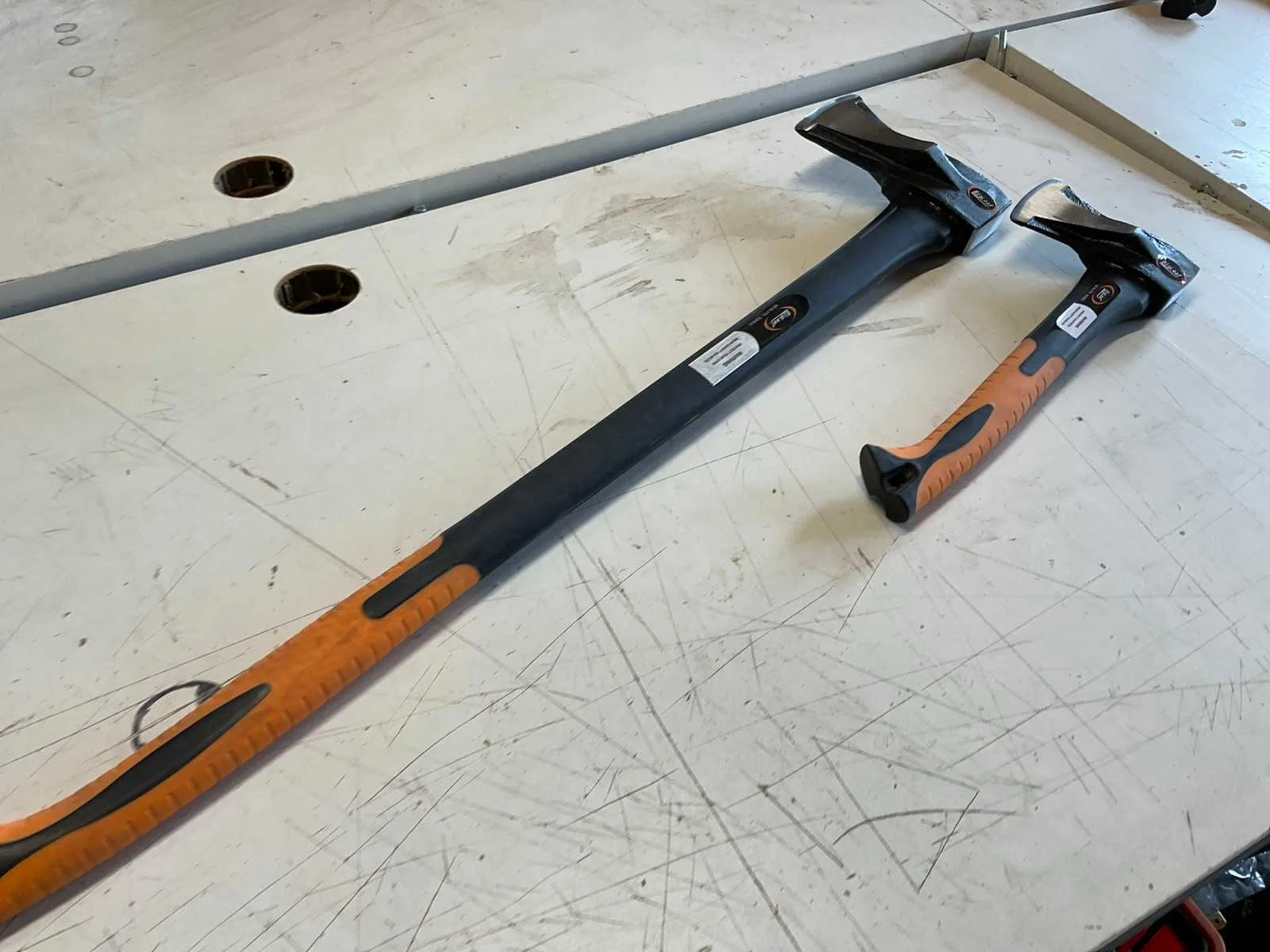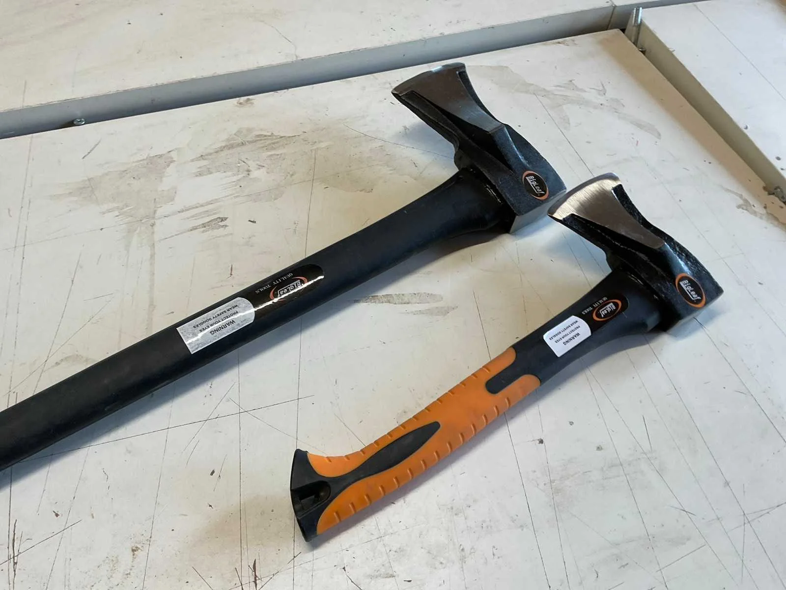 1 kloofbijl 100cm, 1 kloofbijl 60cm. Zie foto's voor details. Merk: Big Leaf