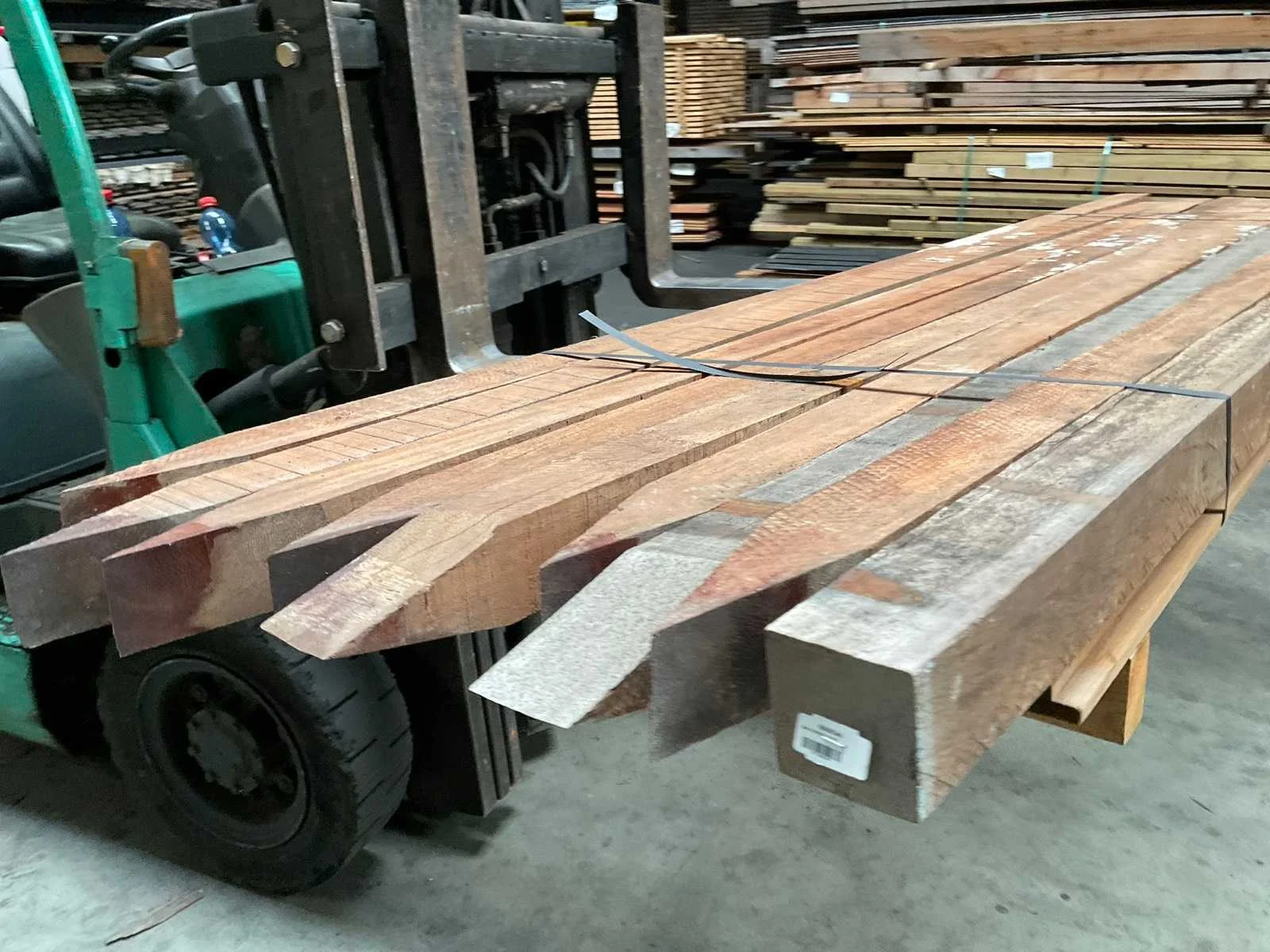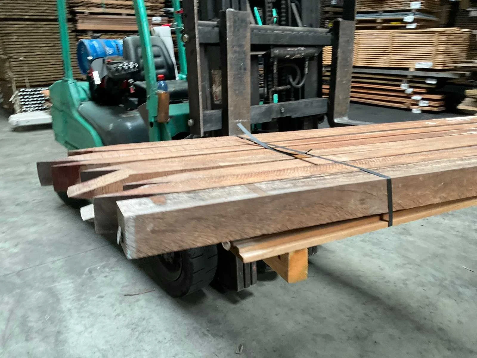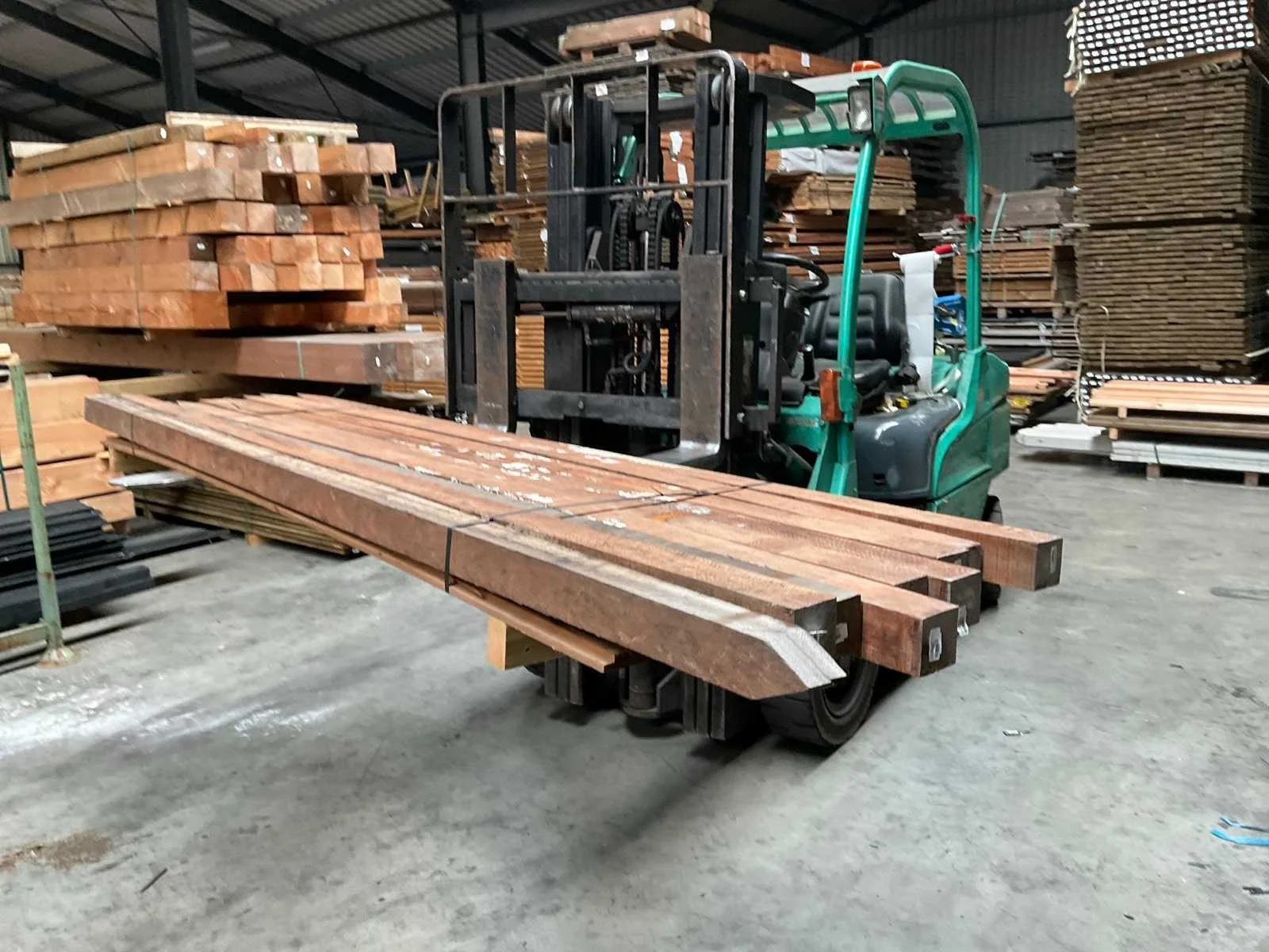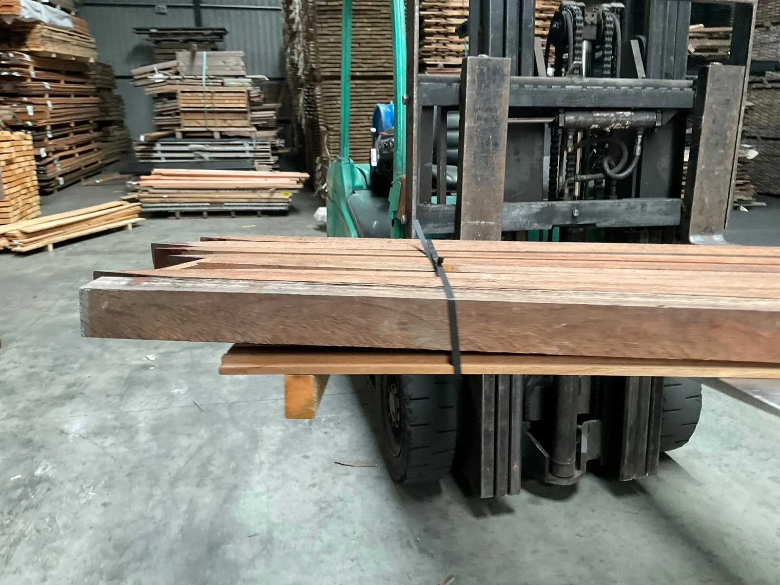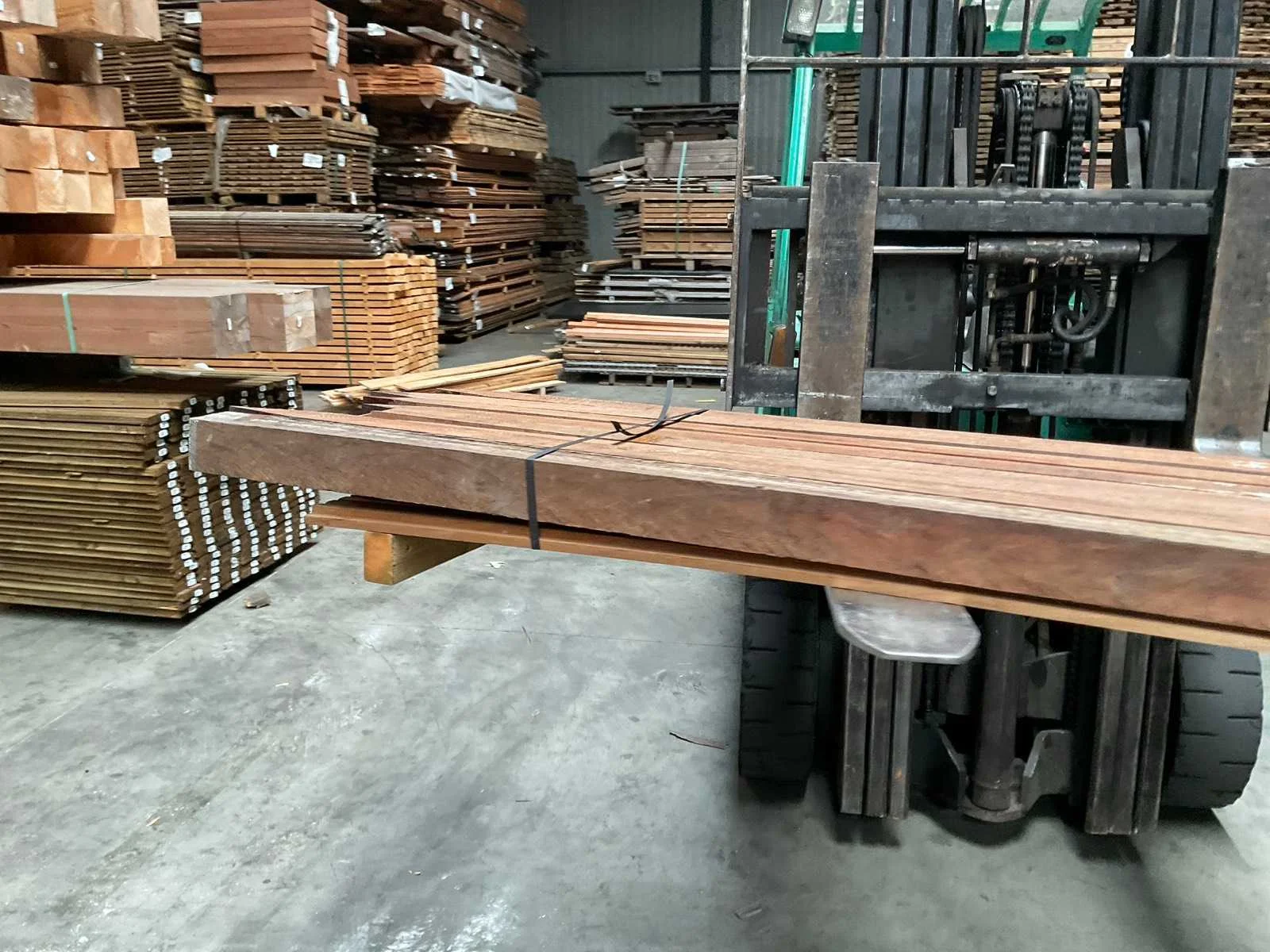 Let op: Retour goed. Zie foto's voor details. Houtsoort: Azobé Materiaal: Hardhout Kopmaat: 70x70 Gewicht: 125kg Totale afmeting Breedte: 2700mm