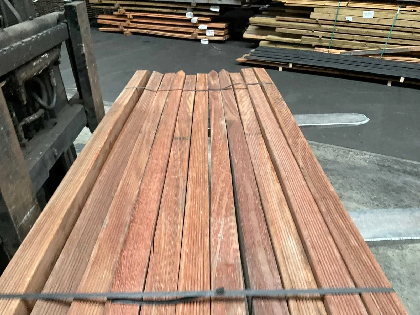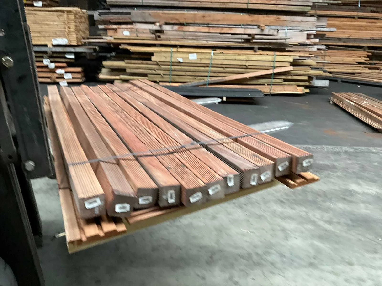 Let op: Retour goed, zie foto's voor details. Houtsoort: Azobé Materiaal: Hardhout Kopmaat: 65x65 Gewicht: 125kg Totale afmeting Breedte: 2000mm