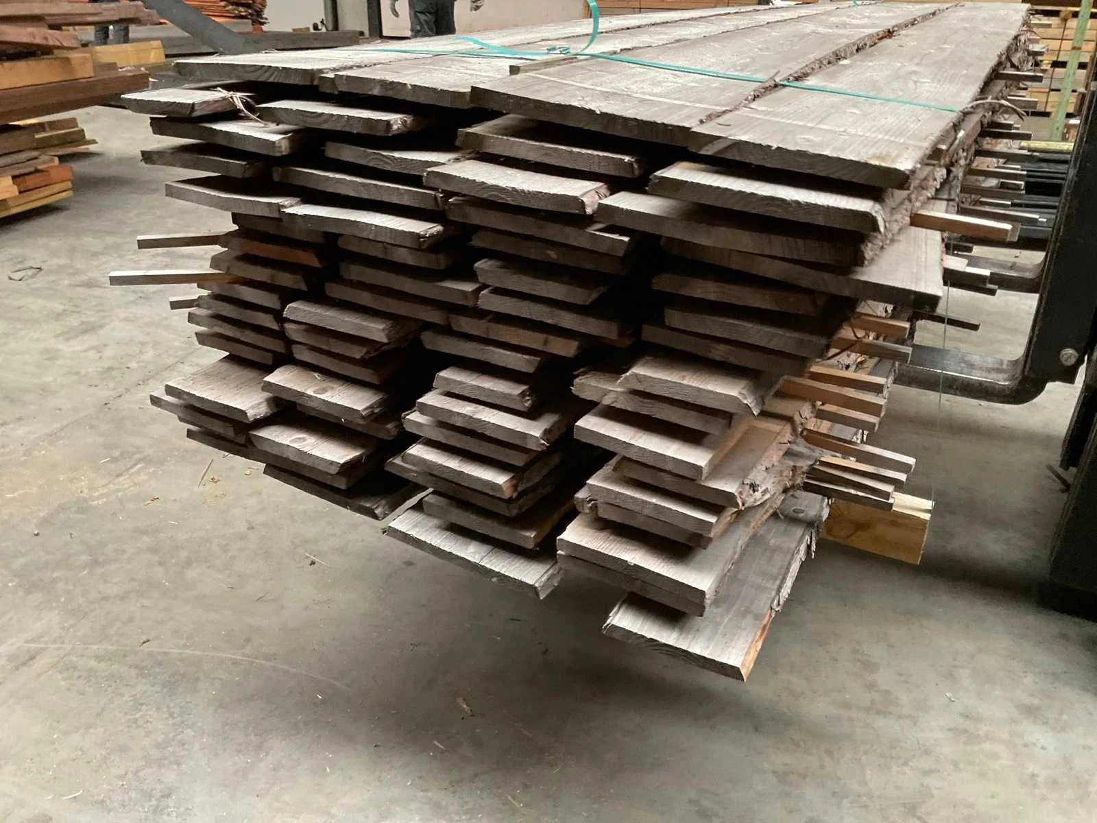 Zie foto's voor details. Houtsoort: Douglas Materiaal: Schaaldeel Kopmaat: 19x120x250mm Gewicht: 500kg