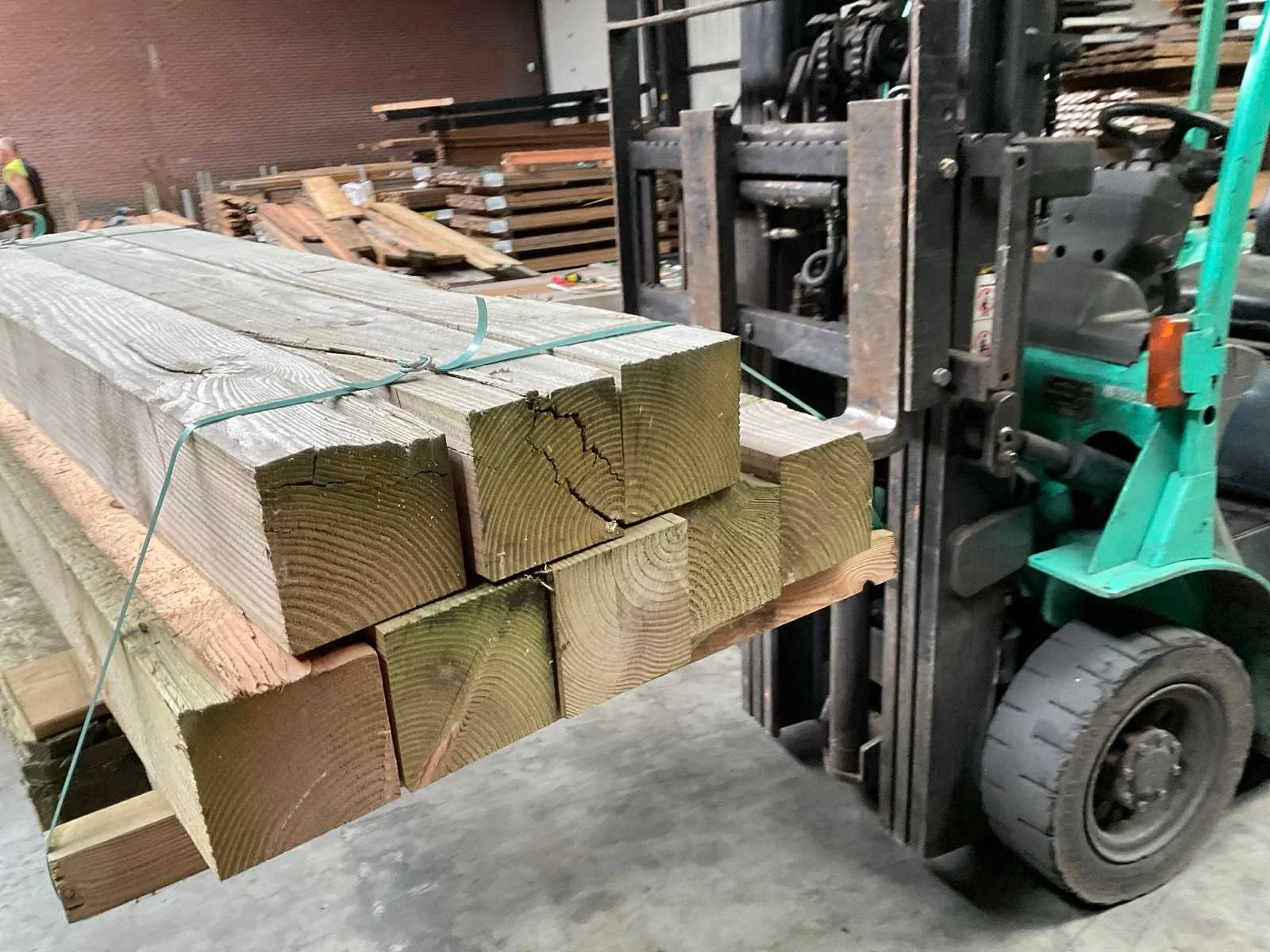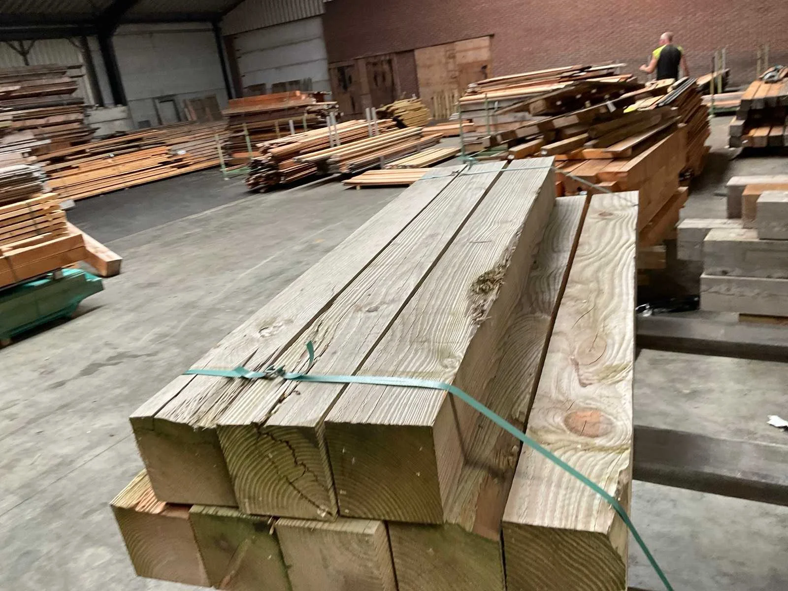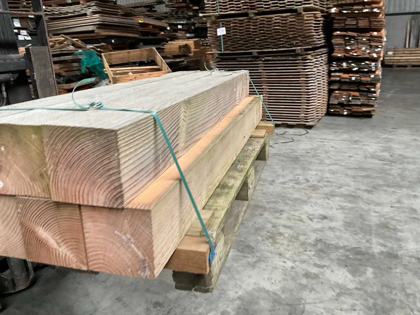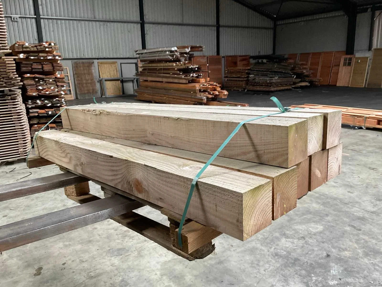 Douglas tuinpalen 170x15x15 cm (8x) Houtsoort: Douglas Breedte: 150mm Hoogte: 150mm Kopmaat: 150x150 Gewicht: 175kg Totale afmeting Breedte: 1700mm