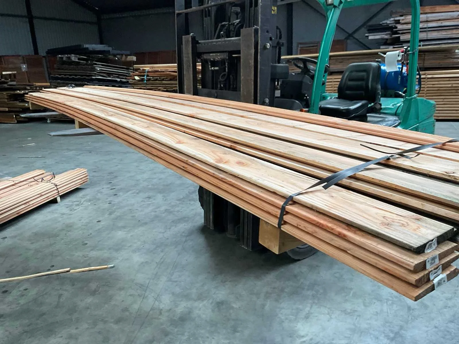 Douglas Zweeds rabat 400x14,5x2 cm Houtsoort: Douglas Lengte: 4000cm Breedte: 145mm Hoogte: 20mm Kopmaat: 12-20x140 Gewicht: 200kg