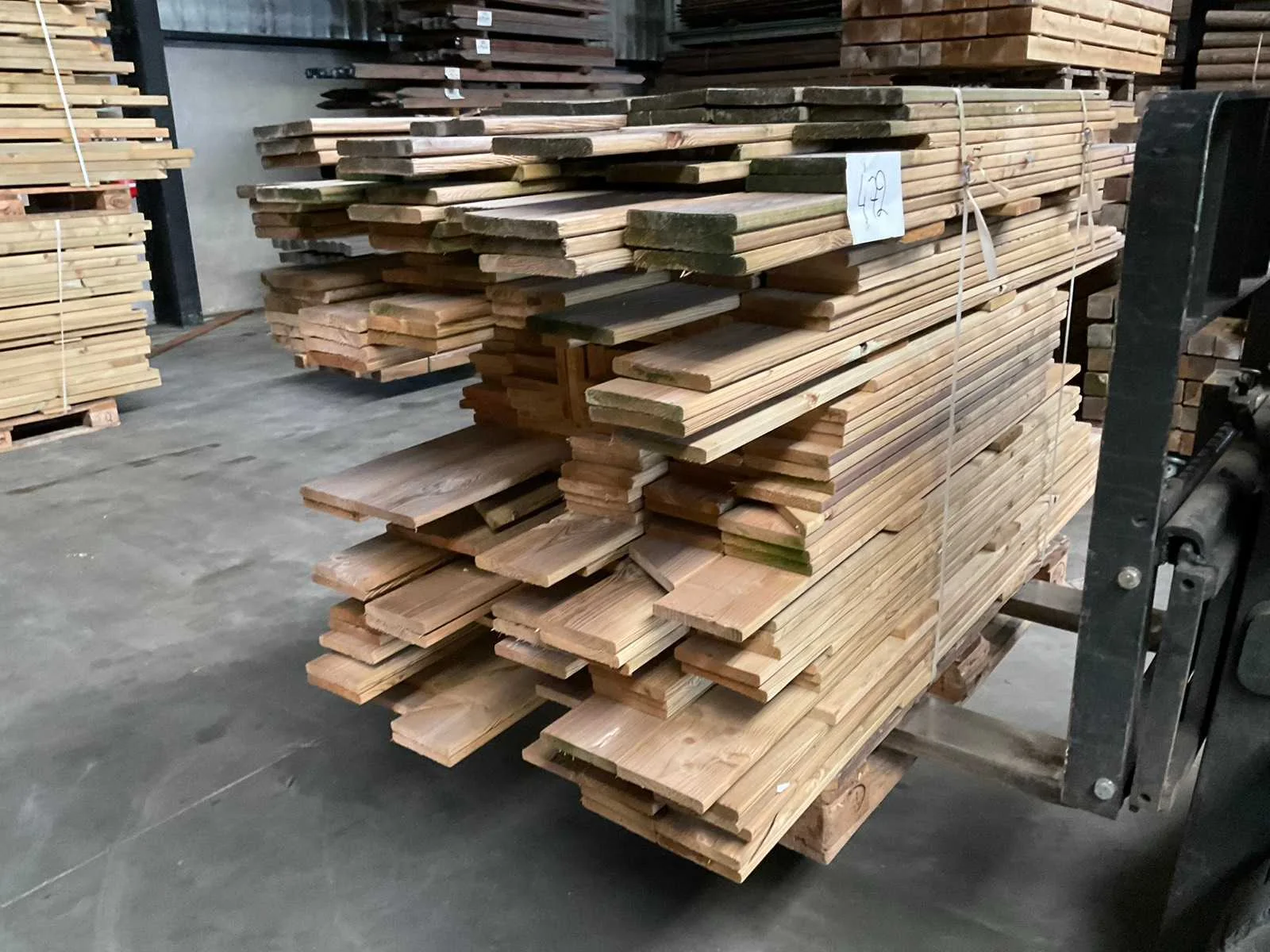 Partij grenen geïmpregneerde planken 80-180x14x1,8 cm. Bestaat uit diverse lengtes 80-180cm. Zie foto's voor details. Houtsoort: Grenenhout Materiaal: Geimpregneerd Lengte: 80-180cm Breedte: 140mm Hoogte: 18mm Kopmaat: 18x140mm Gewicht: 400kg