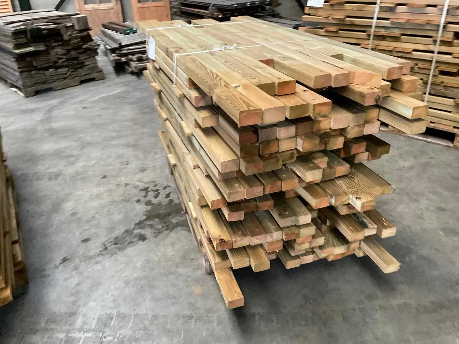 Partij grenen geïmpregneerde balken 80-180x8,5x4,5 cm. Bestaat uit diverse lengtes 80-180cm, in totaal ca. 225 lopende meter. Zie foto's voor details. Houtsoort: Grenenhout geimperneerd Lengte: 80-180cm Breedte: 45mm Hoogte: 85mm Kopmaat: 45x85 Gewicht: 400kg