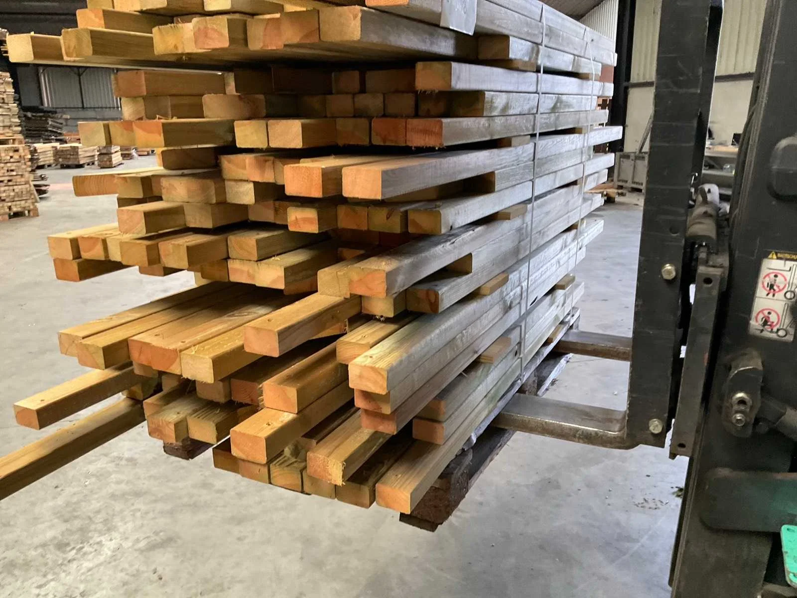 Partij grenen geïmpregneerde balken 80-180x6,5x4,5 cm. Bestaat uit diverse lengtes 80-180cm, in totaal ca. 250 lopende meter. Zie foto's voor details. Houtsoort: Grenenhout geimperneerd Kopmaat: 45x65 Gewicht: 400kg