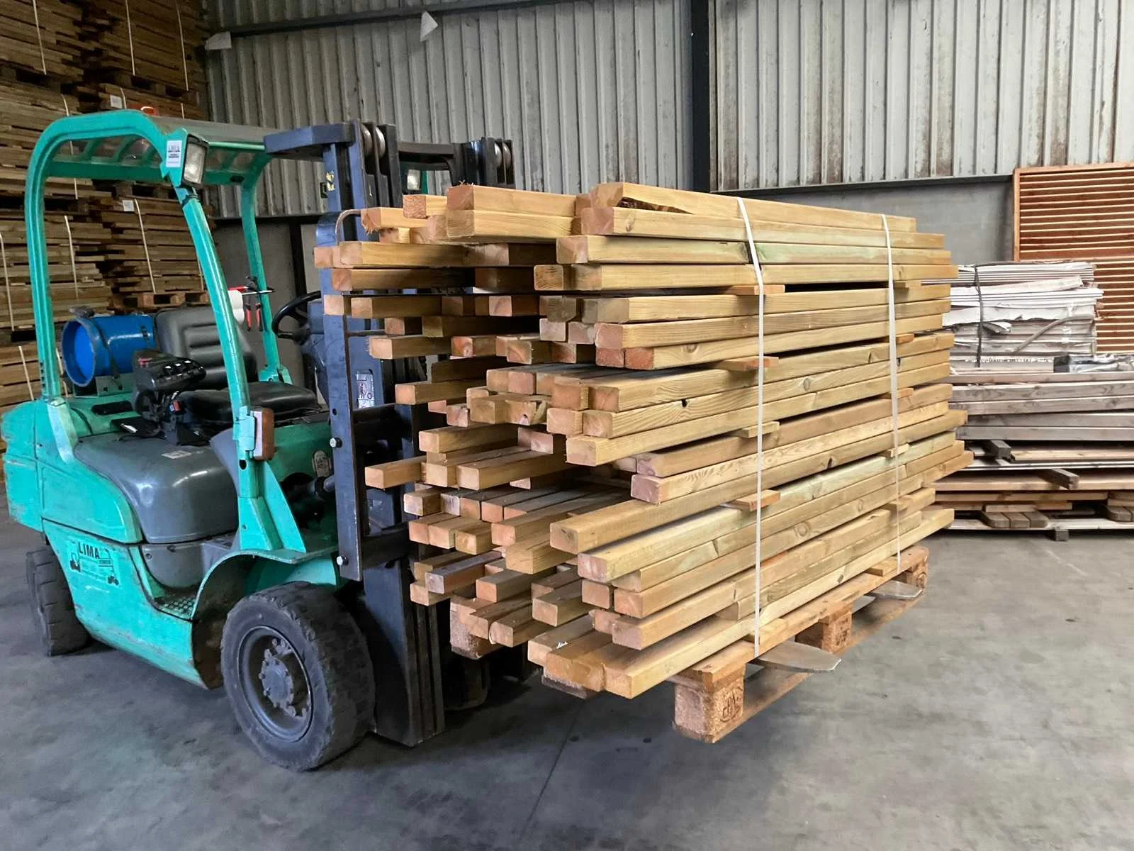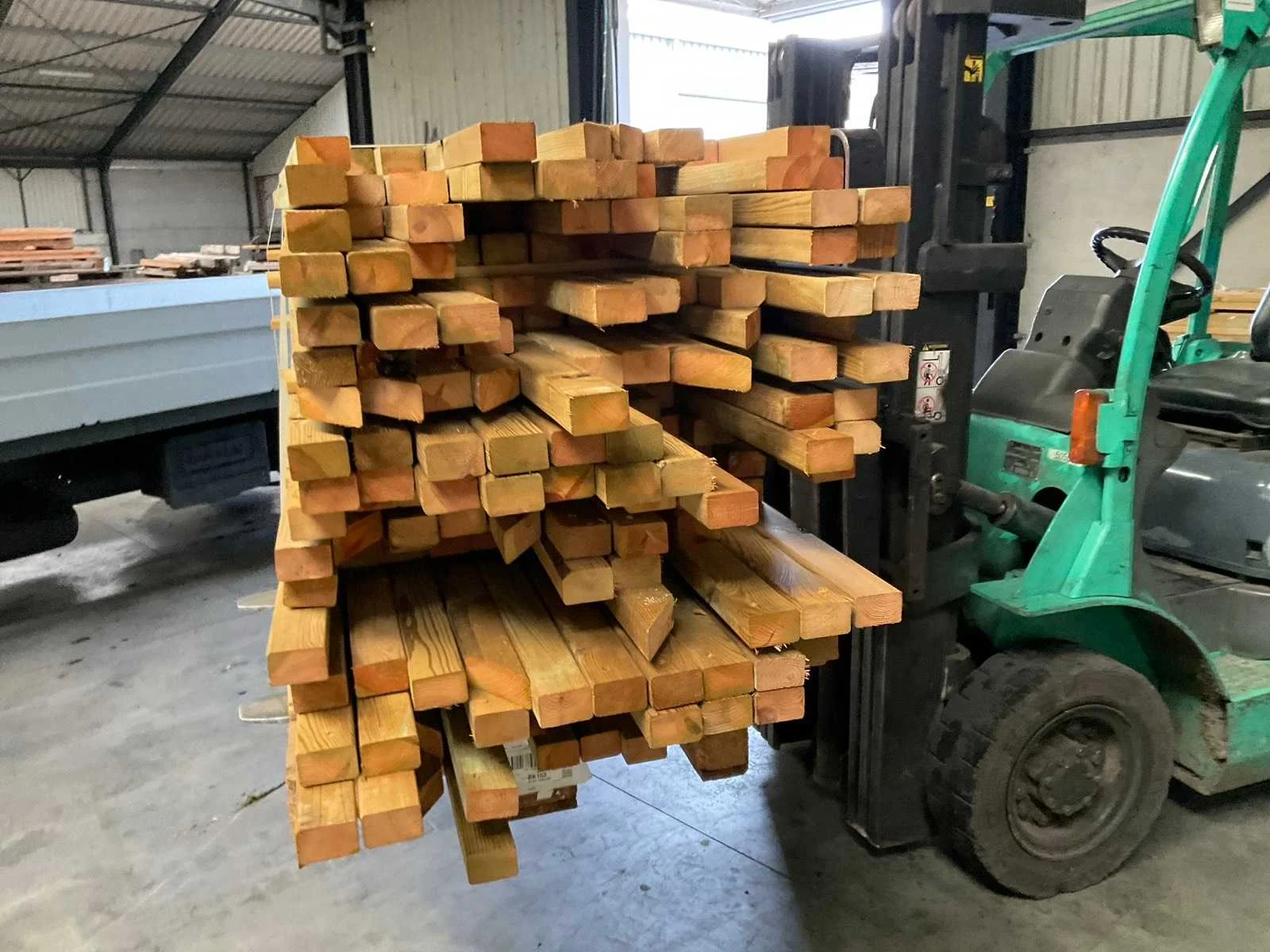 Partij grenen geïmpregneerde balken 80-180x6,5x4,5 cm. Bestaat uit diverse lengtes 80-180cm, in totaal ca. 250 lopende meter. Zie foto's voor details. Houtsoort: Grenenhout geimperneerd Kopmaat: 45x65 Gewicht: 400kg