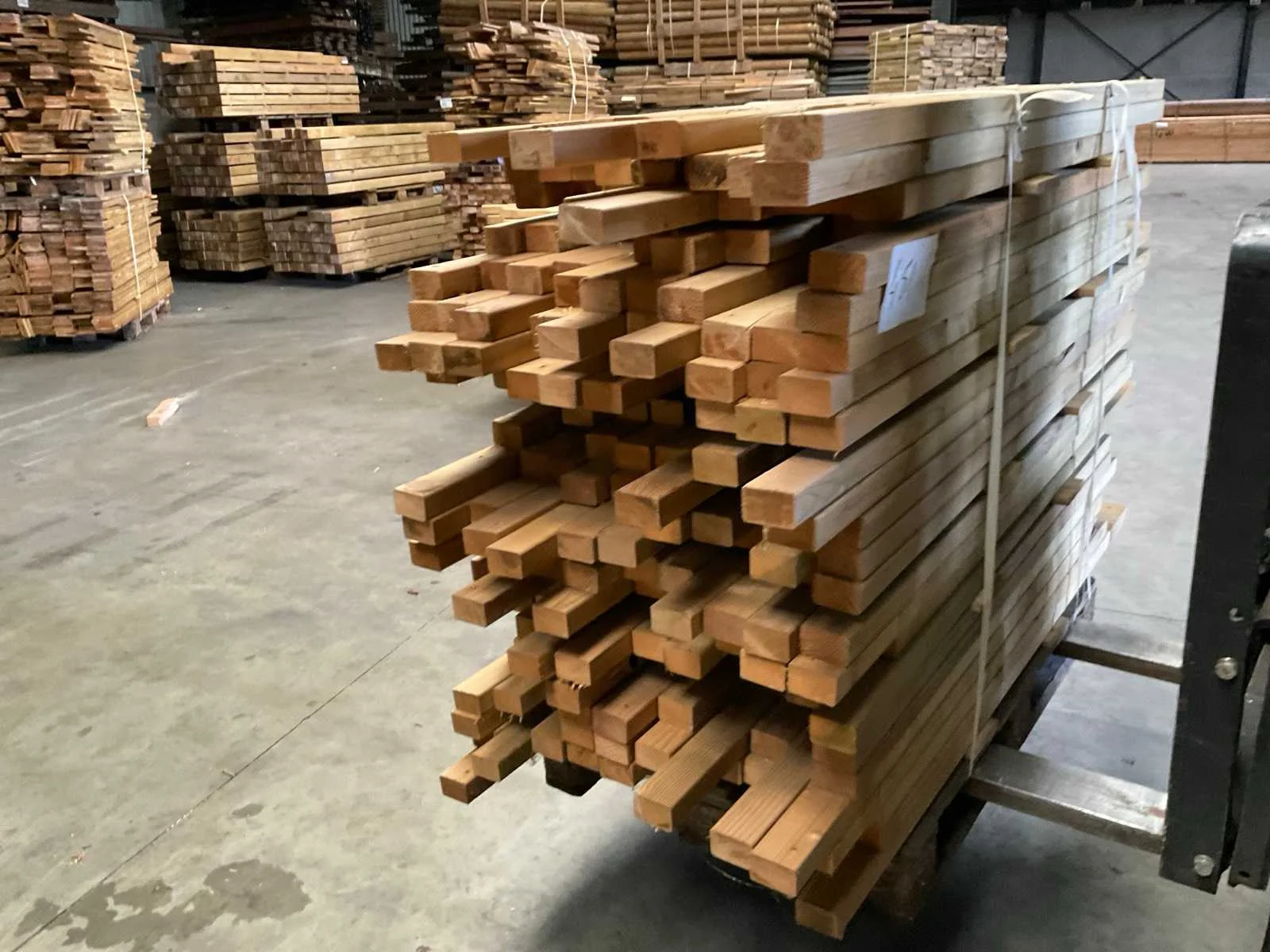 Partij grenen geïmpregneerde balken 80-180x6,5x4,5 cm. Bestaat uit diverse lengtes 80-180cm, in totaal ca. 250 lopende meter. Zie foto's voor details. Houtsoort: Grenenhout geimperneerd Kopmaat: 45x65 Gewicht: 400kg