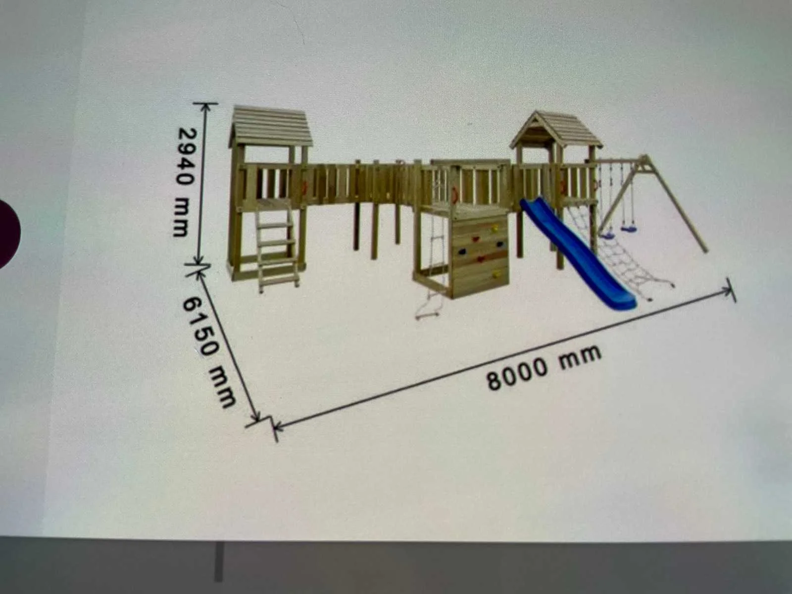Incl. Glijbaan klimnet en schommels handleiding en bevestigingsmateriaal Merk: Vidaxl Gewicht: 500kg Lengte: 800cm Breedte: 615cm Hoogte: 294cm
