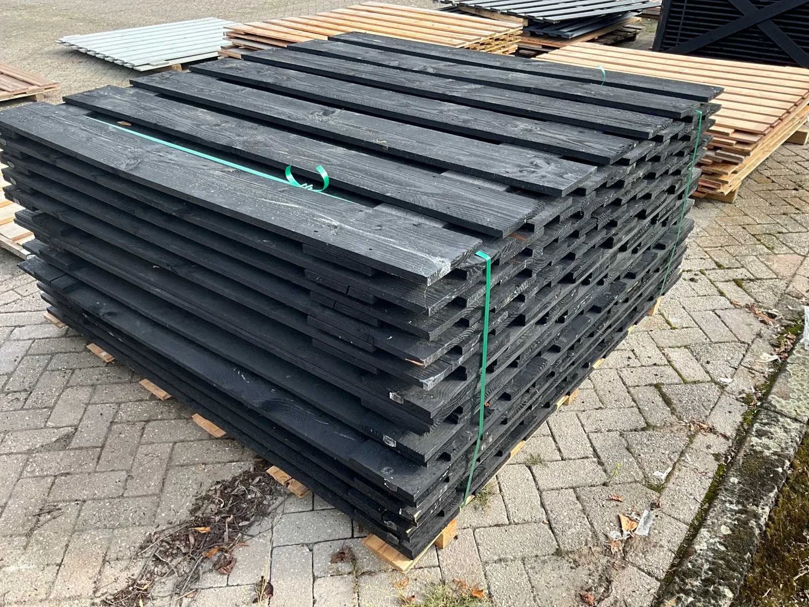 Douglas fijnbezaagd plankenscherm, 180x180 cm. Planken 1,9x19,5 cm. 13 planken, 2 tussenplanken. Zwart gedompeld. Verticaal toepasbaar. Te combineren met: Betonsysteem 1 - Glad beton Betonsysteem 2 - Lichtgewicht beton Betonsysteem 3 - Ruw (stamp)beton Merk: Woodvision Model: Plankenscherm Product type: Fijnbezaagd gedompeld Kleur: Zwart Gewicht: 650kg Lengte: 180cm Breedte: 6cm Hoogte: 180cm Materiaal: Douglas