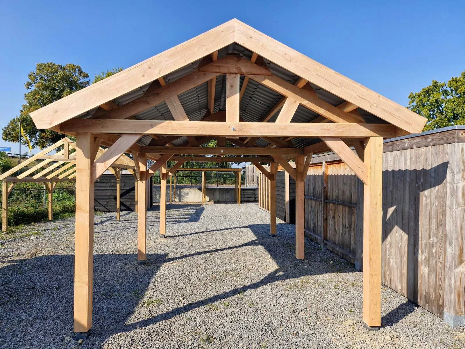 Deze frameconstructie met een klassiek zadeldak is gemaakt van fijnbezaagd Douglas-hout en wordt geleverd als bouwpakket. Het pakket bevat de volgende onderdelen: Palen: 150x150mm fijnbezaagd Douglas ( 8 stuks ) Spant onderdelen: 50x150mm fijnbezaagd Douglas Dakbalken: 50x150mm fijnbezaagd Douglas Doeideel: 20x200mm fijnbezaagd Douglas Dakpanplaat staal ral 7016 antraciet grijs De afmetingen zijn buitenwerks gemeten vanaf het dak. Bij een breedte van 410 cm staan de palen buitenwerks op 360 cm, zoals aangegeven in de schets. Het bouwpakket is op maat gezaagd en wordt geleverd inclusief bevestigingsmateriaal en handleiding. Betonpoeren zijn niet inbegrepen. Afmetingen pakket: 420x125x150cm, 1250kg Model: Zadeldak Product type: Vrijstaande overkapping Gewicht: 1250kg Lengte: 880cm Breedte: 410cm Hoogte: 340cm Materiaal: Douglas