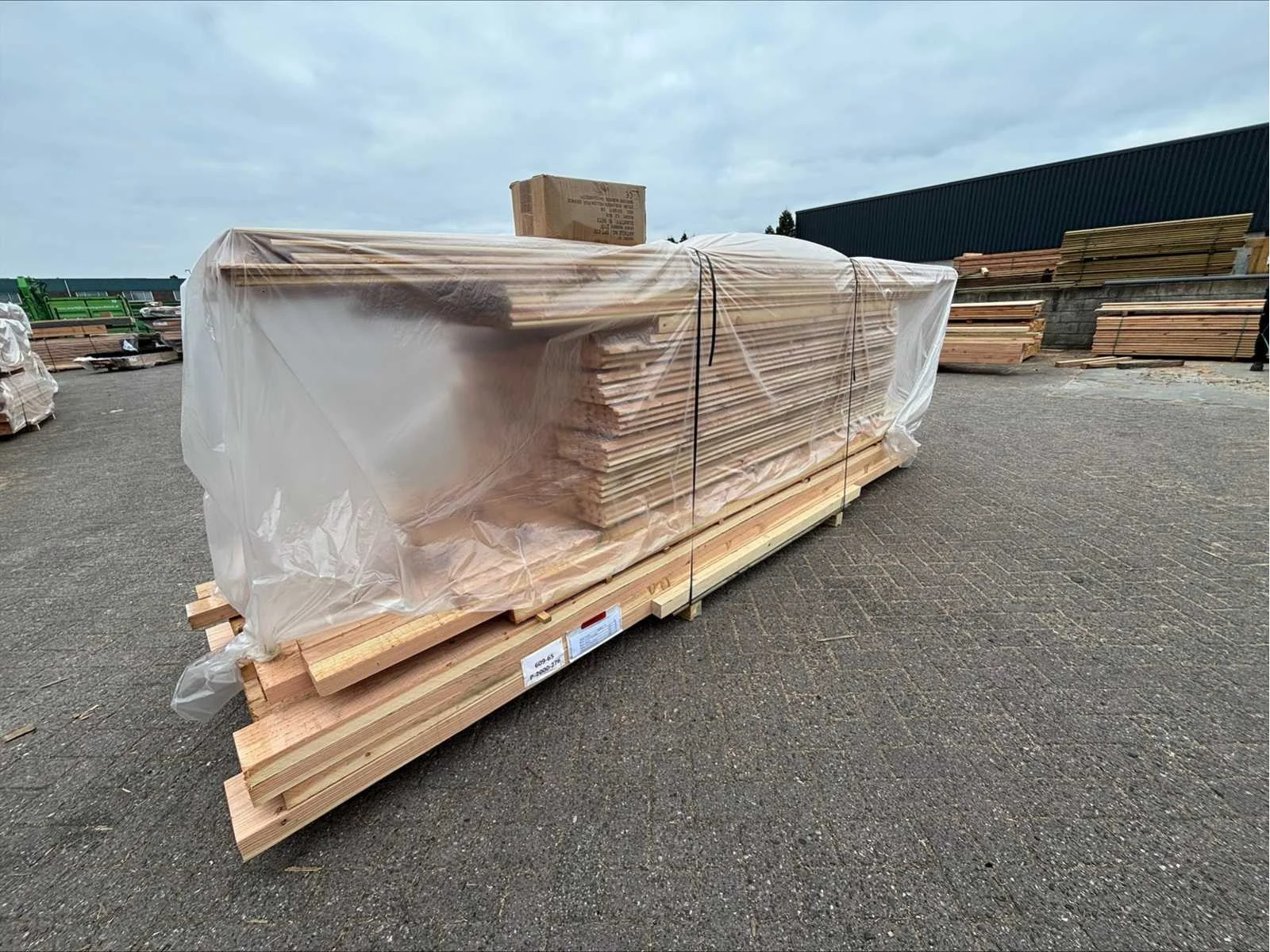 Modern Buitenverblijf met berging Kenmerken: De berging kan zowel links en rechtst geplaatst worden . Materiaal: Palen: 12x12 cm Douglas Hoekpaal overkapping 14x14cm Dakbalken: 5x15 cm Douglas Regelwerk: 5x7 cm Vuren Wanden: 2,2 cm dikke Triple Douglas planken Dakplanken: 1,8 cm dikke Douglas planken Geleverd zonder dakleer Geheel geleverd als bouwpakket Afmetingen pakket: 120 x 100 x 400 cm Gewicht pakket: 1500 kg Afmetingen: Maat A 350cm Maat B 300cm Maat C 400cm Model: met berging Product type: Modern triple Gewicht: 1500kg Lengte: 700cm Breedte: 350cm Hoogte: 240cm Materiaal: Douglas-triple