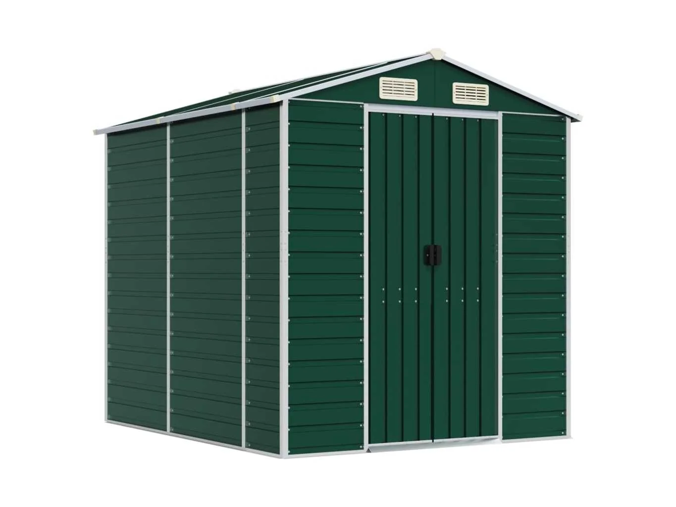 Omschrijving Breid je tuinopbergmogelijkheden uit en bescherm je gereedschap met deze multifunctionele tuinschuur. Robuust materiaal: het tuinschuurtje is gemaakt van gegalvaniseerd staal, dat roestvorming voorkomt en lang meegaat. Staal is een buitengewoon hard en sterk materiaal. Het biedt stevigheid en stabiliteit. Galvanisatie biedt een betere bescherming tegen corrosie en is handig voor producten die buiten of in ruwe omgevingen worden gebruikt. Voldoende opbergruimte: deze metalen schuur biedt voldoende ruimte om je brandhout, tuingereedschap, meubels, uitrusting en meer in op te bergen. Handige handgrepen: de deur van de opbergschuur is voorzien van handgrepen voor gemakkelijke toegang. Goede ventilatie: de berging heeft 4 ventilatieopeningen die zorgen voor ventilatie, om de ophoping van vocht en geurtjes in de schuur te verminderen. Schuin ontwerp: dankzij het schuine dak loopt water er ongehinderd vanaf. Kleur: groen Materiaal: gegalvaniseerd staal Totale afmetingen: 191 x 215 x 198 cm (B x D x H) Afmetingen deur: 80 x 170 cm (B x H) Merk: VidaXL Model: zadeldak Product type: tuinhuis Kleur: donkergroen Gewicht: 100kg Lengte: 215cm Breedte: 191cm Hoogte: 198cm Materiaal: Verzinkt-gespoten staal