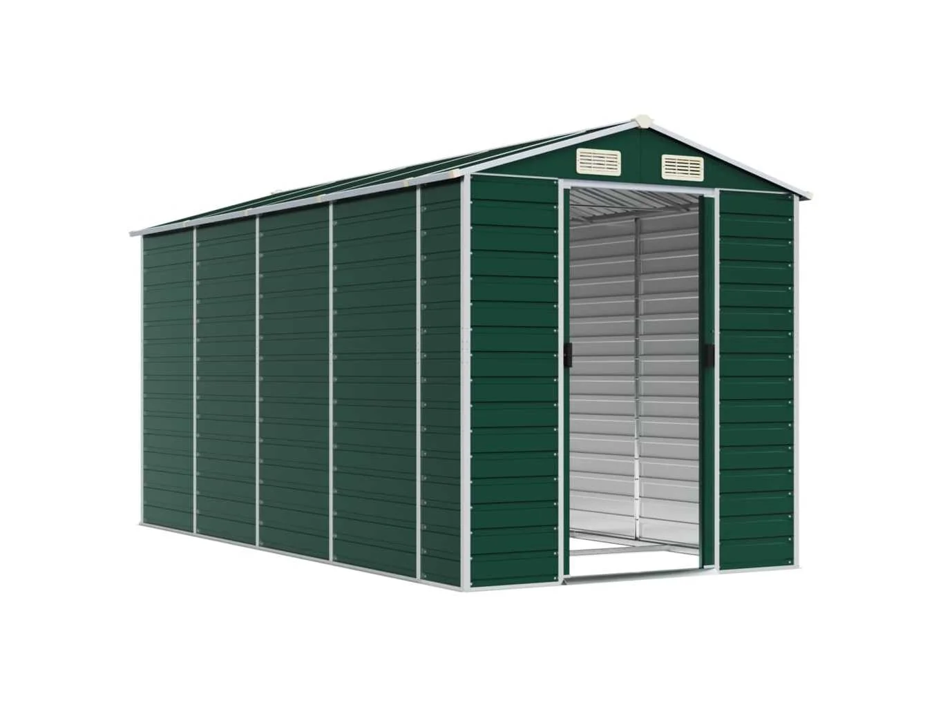 Omschrijving Breid je tuinopbergmogelijkheden uit en bescherm je gereedschap met deze multifunctionele tuinschuur. Robuust materiaal: het tuinschuurtje is gemaakt van gegalvaniseerd staal, dat roestvorming voorkomt en lang meegaat. Staal is een buitengewoon hard en sterk materiaal. Het biedt stevigheid en stabiliteit. Galvanisatie biedt een betere bescherming tegen corrosie en is handig voor producten die buiten of in ruwe omgevingen worden gebruikt. Voldoende opbergruimte: deze metalen schuur biedt voldoende ruimte om je brandhout, tuingereedschap, meubels, uitrusting en meer in op te bergen. Handige handgrepen: de deur van de opbergschuur is voorzien van handgrepen voor gemakkelijke toegang. Goede ventilatie: de berging heeft 4 ventilatieopeningen die zorgen voor ventilatie, om de ophoping van vocht en geurtjes in de schuur te verminderen. Schuin ontwerp: dankzij het schuine dak loopt water er ongehinderd vanaf. Kleur: groen Materiaal: gegalvaniseerd staal Totale afmetingen: 191 x 385 x 198 cm (B x D x H) Afmetingen deur: 80 x 170 cm (B x H) Merk: vidaXL Model: zadeldak Product type: tuinhuis Kleur: donkergroen Gewicht: 125kg Lengte: 385cm Breedte: 191cm Hoogte: 198cm Materiaal: Verzinkt-gespoten staal