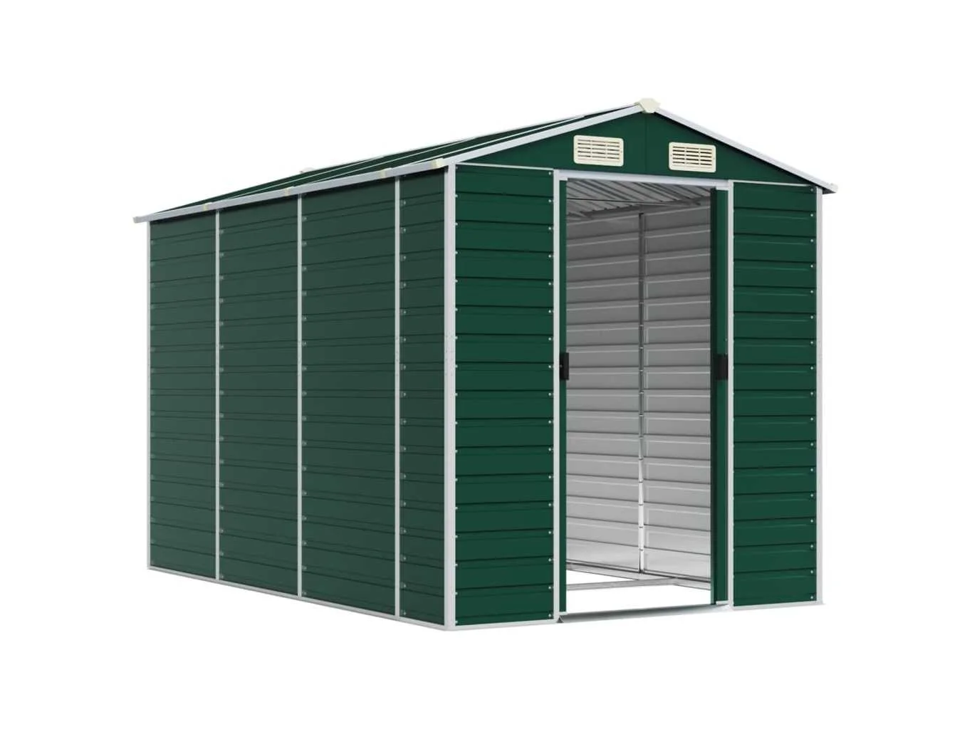 Breid je tuinopbergmogelijkheden uit en bescherm je gereedschap met deze multifunctionele tuinschuur. Robuust materiaal: het tuinschuurtje is gemaakt van gegalvaniseerd staal, dat roestvorming voorkomt en lang meegaat. Staal is een buitengewoon hard en sterk materiaal. Het biedt stevigheid en stabiliteit. Galvanisatie biedt een betere bescherming tegen corrosie en is handig voor producten die buiten of in ruwe omgevingen worden gebruikt. Voldoende opbergruimte: deze metalen schuur biedt voldoende ruimte om je brandhout, tuingereedschap, meubels, uitrusting en meer in op te bergen. Handige handgrepen: de deur van de opbergschuur is voorzien van handgrepen voor gemakkelijke toegang. Goede ventilatie: de berging heeft 4 ventilatieopeningen die zorgen voor ventilatie, om de ophoping van vocht en geurtjes in de schuur te verminderen. Schuin ontwerp: dankzij het schuine dak loopt water er ongehinderd vanaf. Kenmerken Kleur: groen Materiaal: gegalvaniseerd staal Totale afmetingen: 191 x 300 x 198 cm (B x D x H) Afmetingen deur: 80 x 170 cm (B x H) Merk: vidaXL Model: zadeldak Product type: tuinhuis Kleur: donkergroen Gewicht: 120kg Lengte: 300cm Breedte: 191cm Hoogte: 198cm Materiaal: Verzinkt-gespoten staal