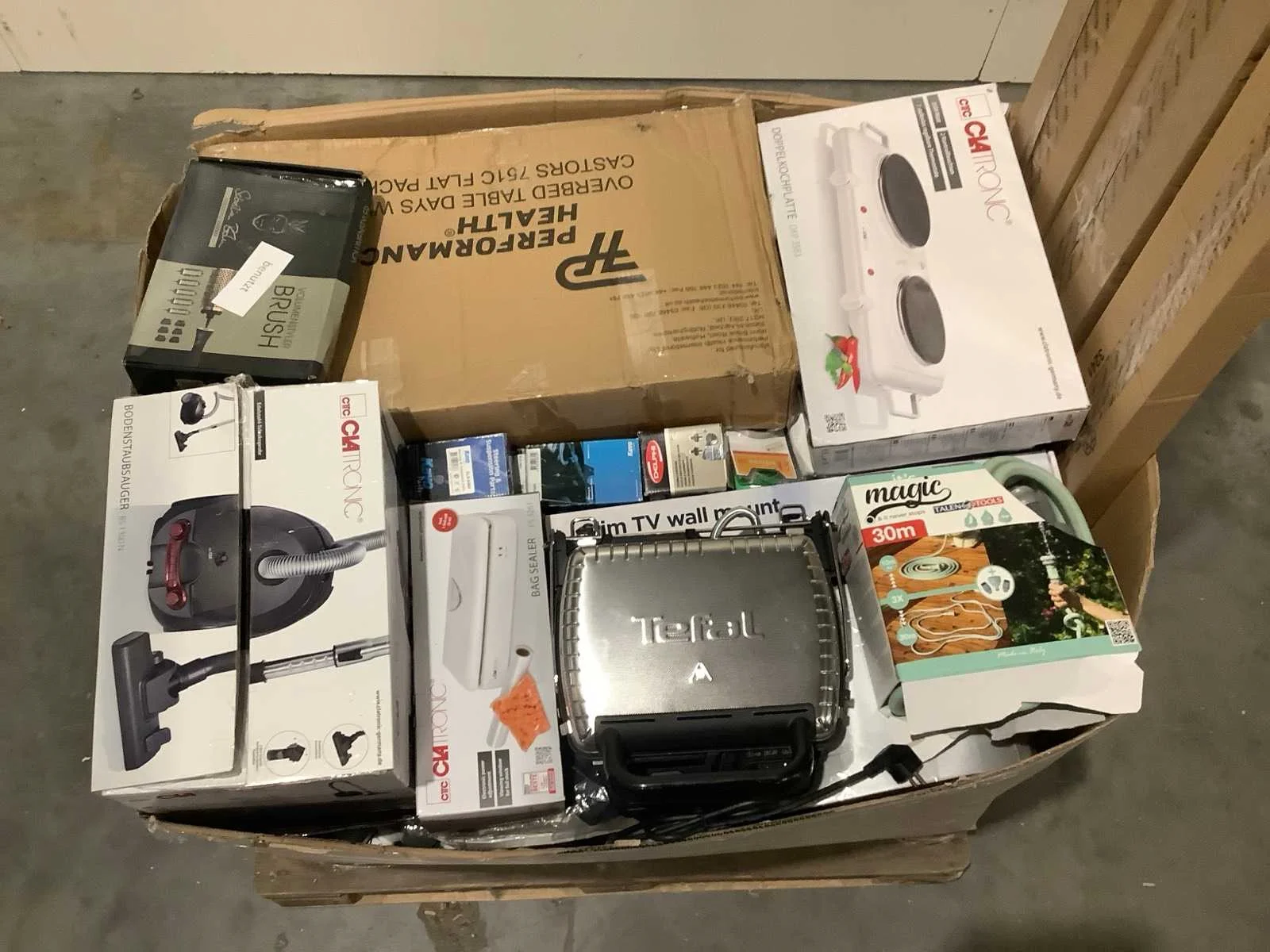 Dit betreft een partij retourgoederen van een grote online retailer. De goederen bestaan uit diverse productcategorieën. Ongecontroleerd: werking onbekend (mix van werkend, incompleet, beschadigd, te gebruiken voor onderdelen). Kom op de kijkdag om te om zo een goed beeld te krijgen van de reden van retour. Merk: Pallet