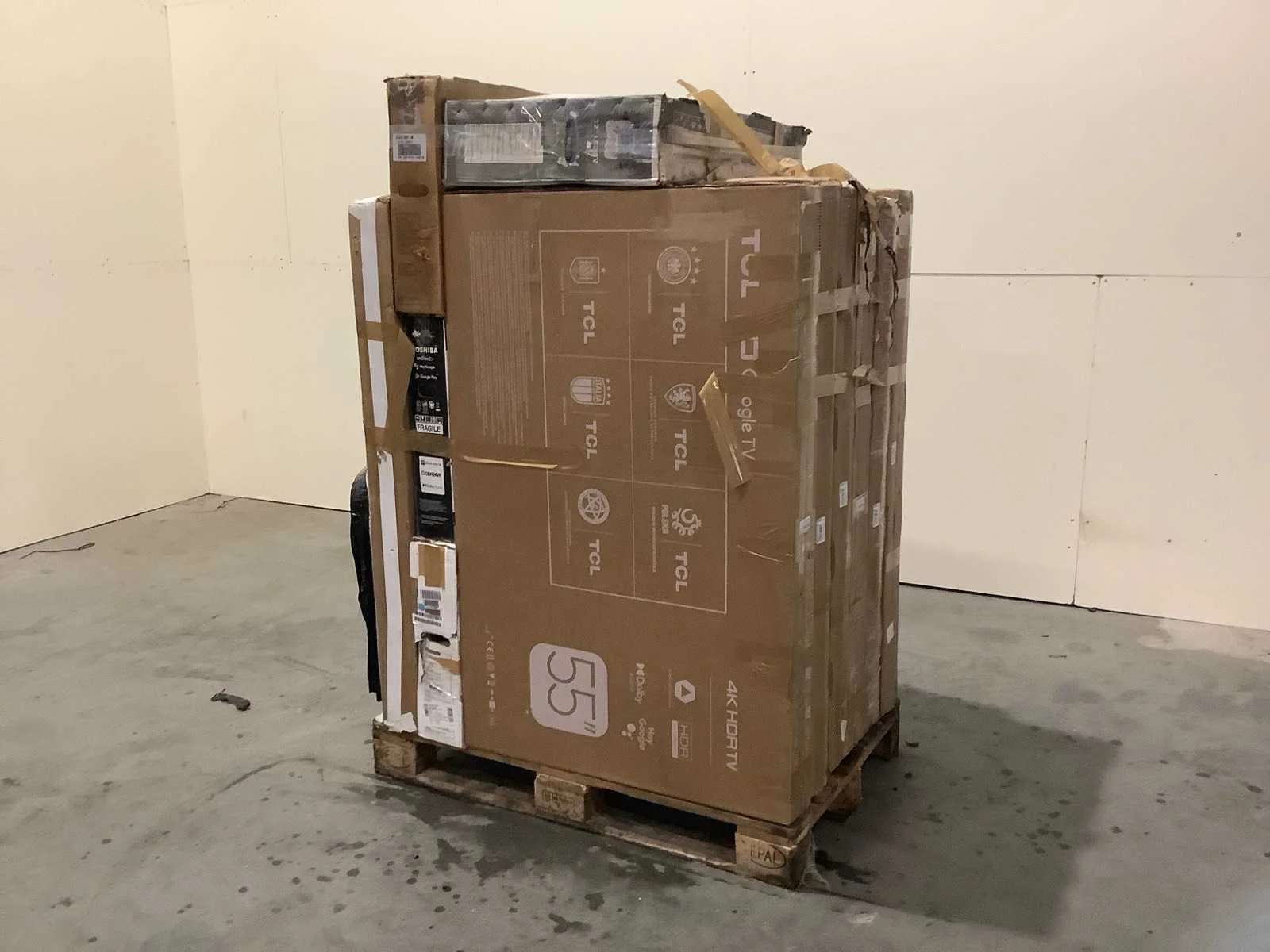 Dit betreft een partij televisies retourgoederen van een grote online retailer. De partij bestaat uit diverse diverse maten televisies. Aantal stuks: 12. Retailwaarde: €3.629,- De televisies zijn niet werkend en zijn te gebruiken voor onderdelen. Kom op de kijkdag om te om zo een goed beeld te krijgen van de reden van retour. Zie foto's voor lijst met inhoud. Merk: Pallet