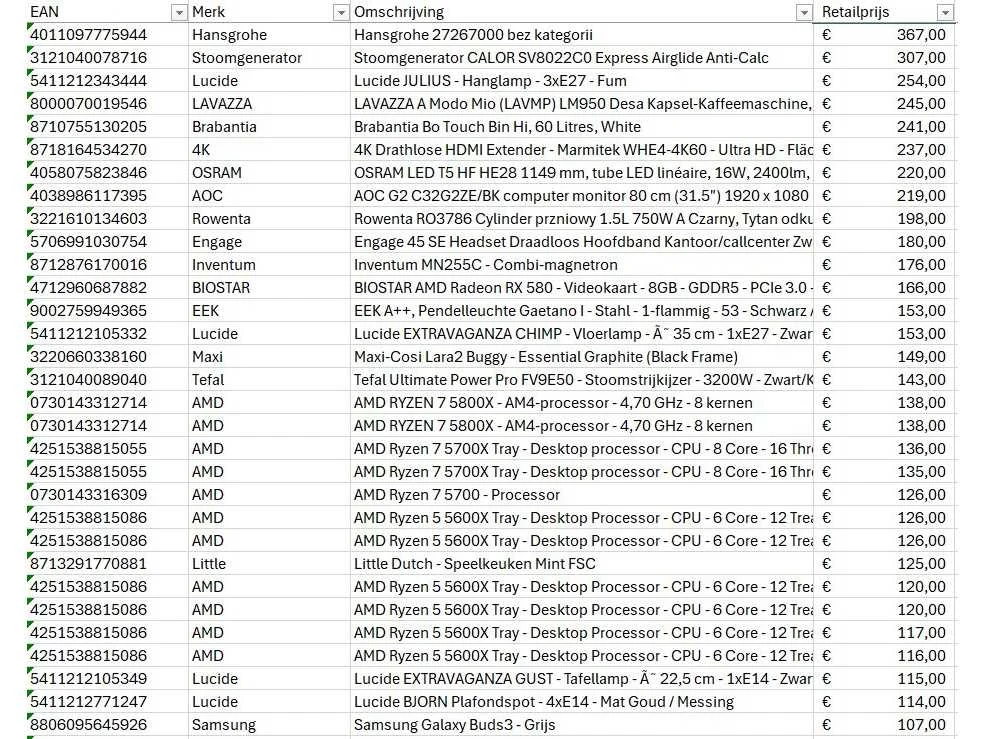 Dit betreft een partij A-merk retourgoederen van een grote online retailer. De partij bestaat uit diverse productcategorieën. Aantal stuks: 49. Retailwaarde: €6855,- Ongecontroleerd: werking onbekend (mix van werkend, incompleet, beschadigd, te gebruiken voor onderdelen). Kom op de kijkdag om te om zo een goed beeld te krijgen van de reden van retour. Zie foto's voor lijst met inhoud. Merk: Pallet Retourgoederen